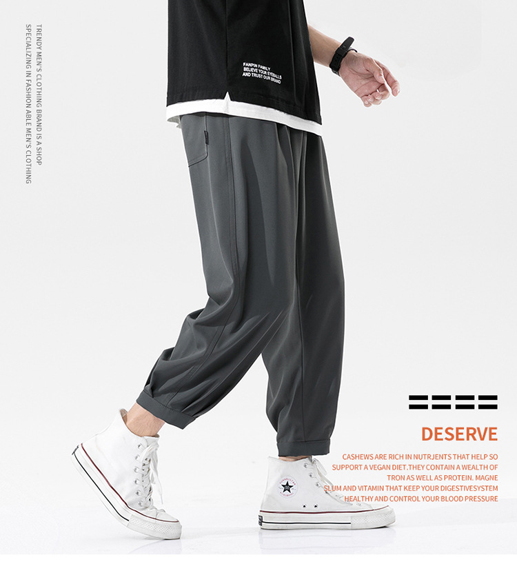 아이스 실크 팬츠 남성용 여름 얇은 통기성 데프 실키 세트 바지 남성용 느슨한 에어컨 바지 구리 암모니아 실크 남성용 바지스토어 가기