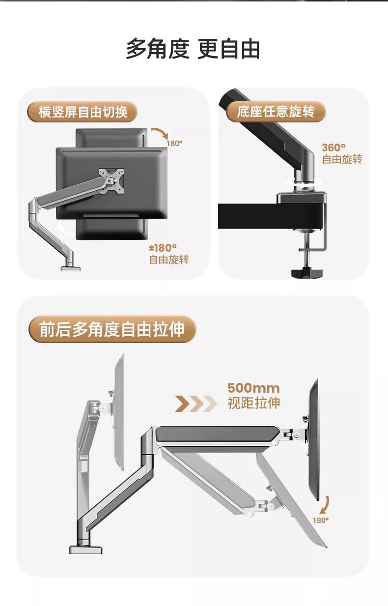 컴퓨터 모니터 브래킷 상승 랙 기계 팔 공압 데스크탑 회전 디스플레이 베이스 데스크탑 브래킷