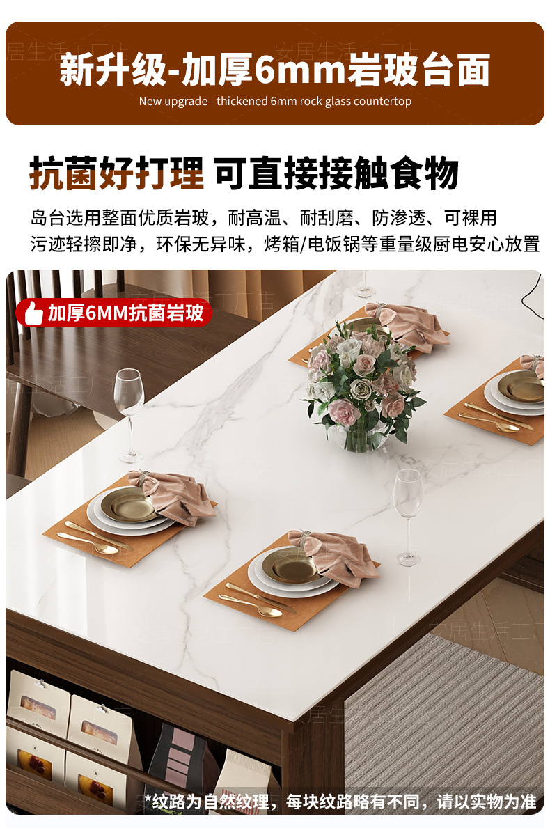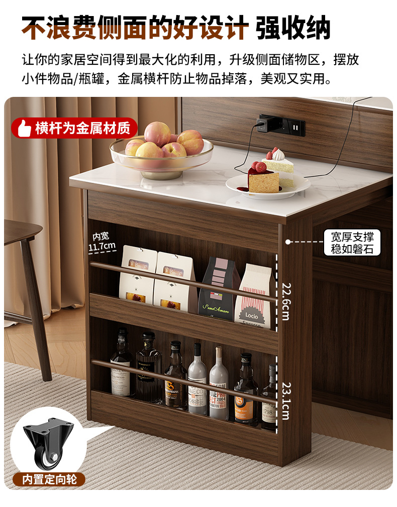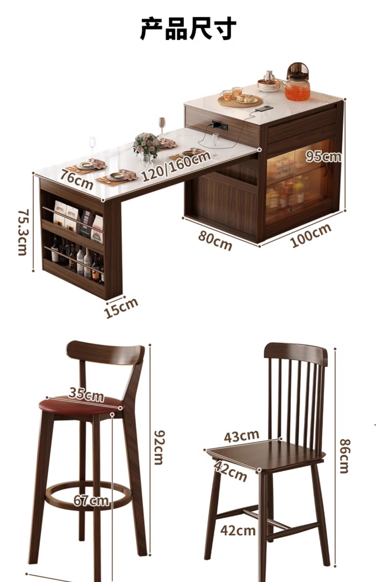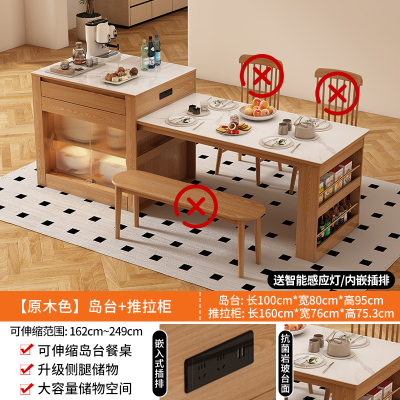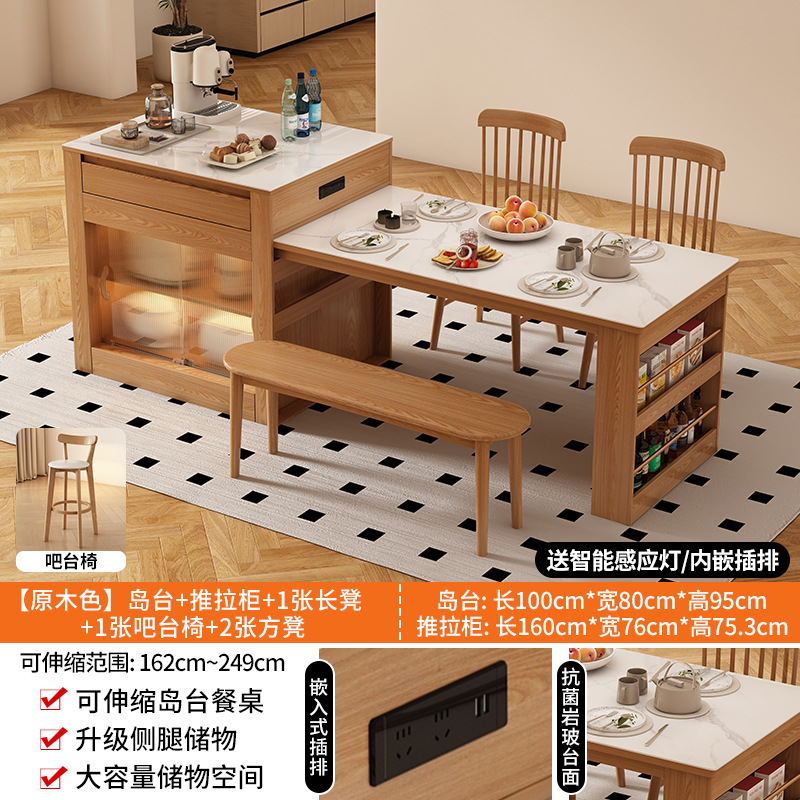 섬 테이블 통합 가정용 개폐식 바 작은 아파트 다기능 솔리드 우드 컬러 주방 섬 테이블 사이드 보드