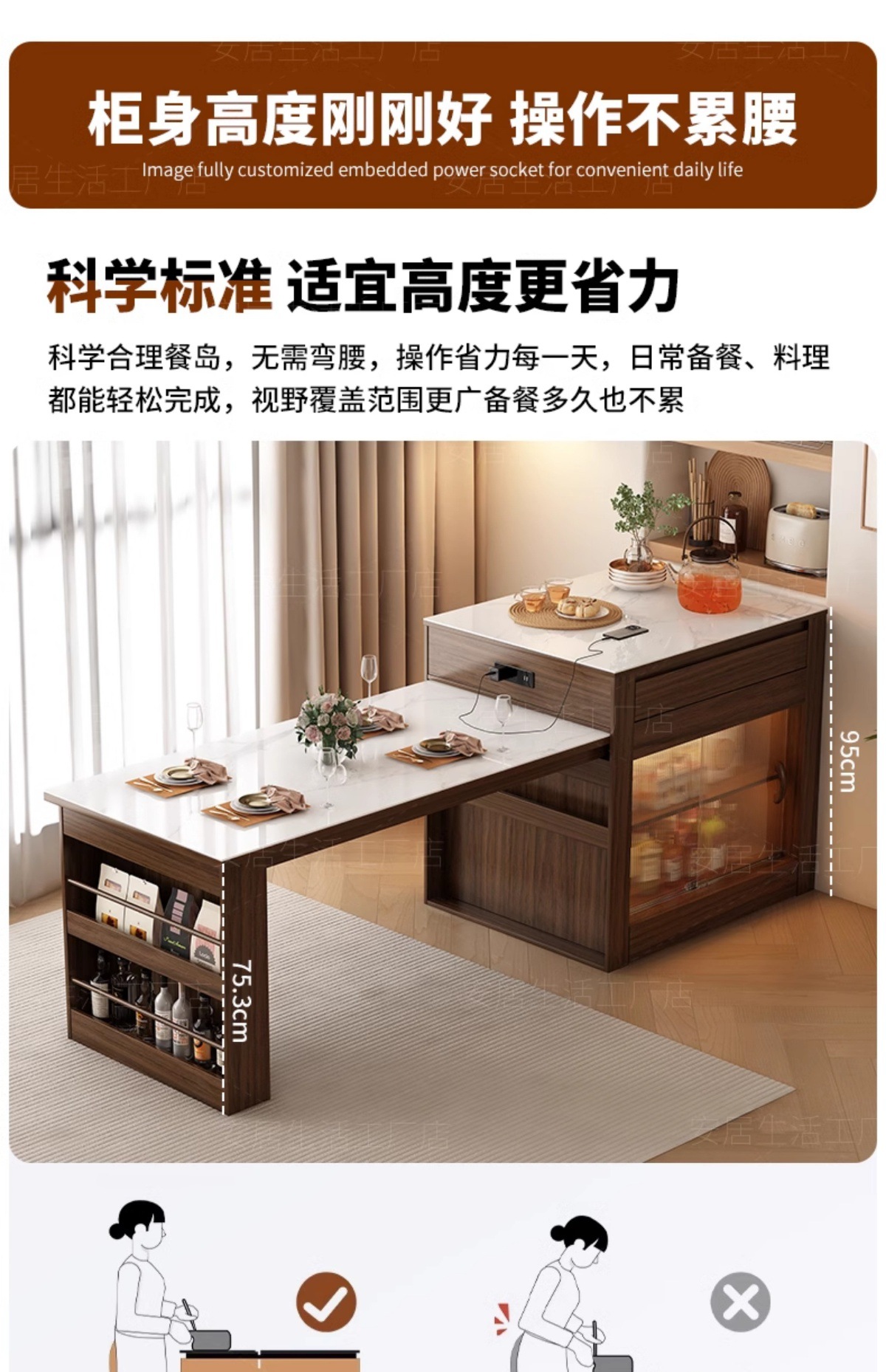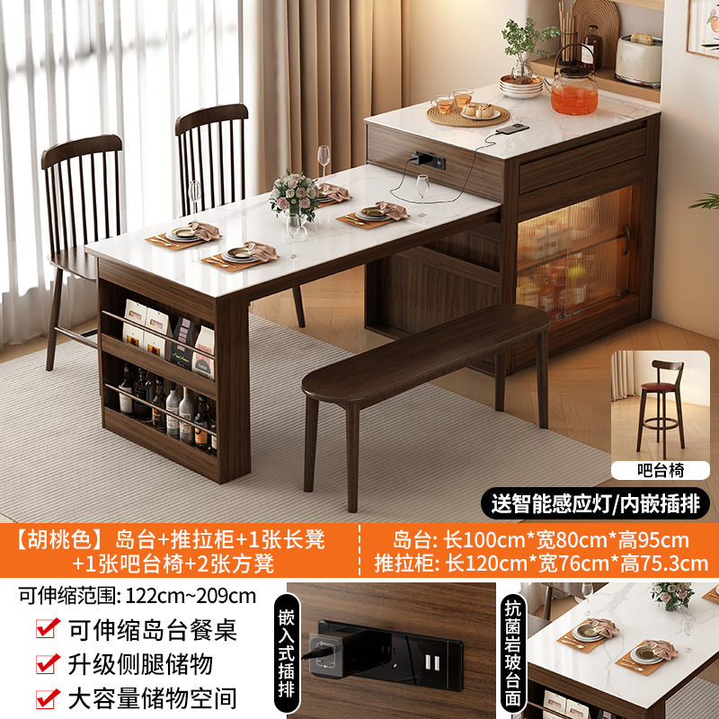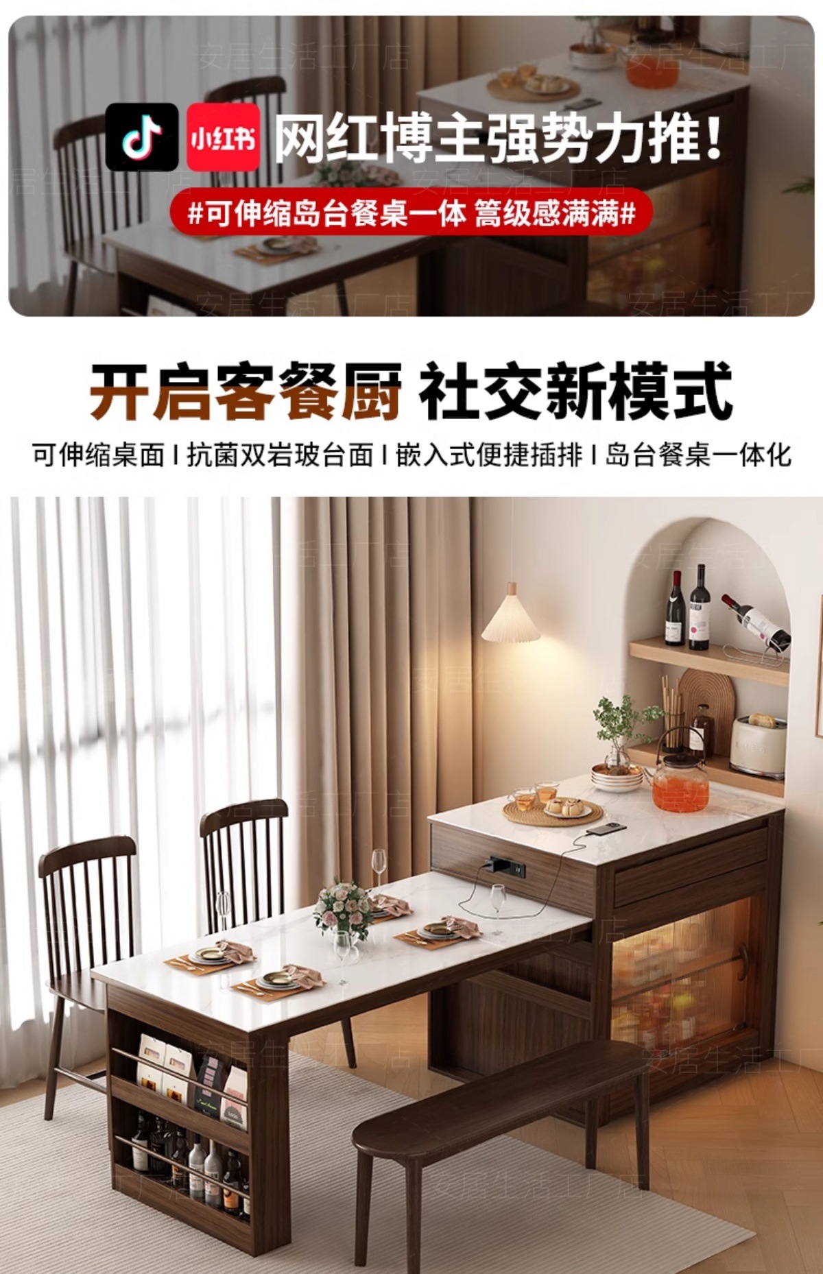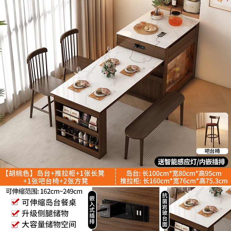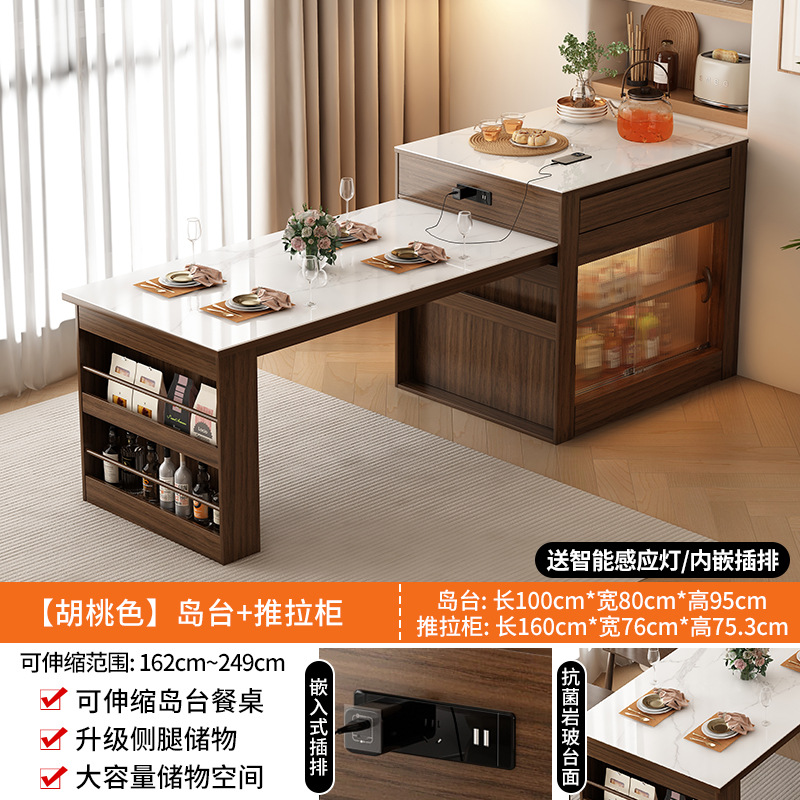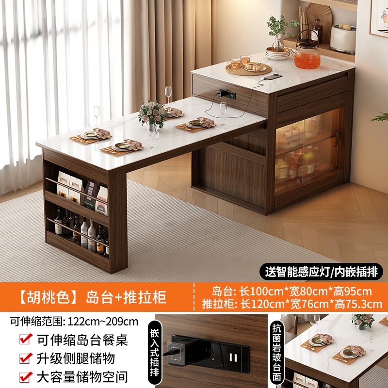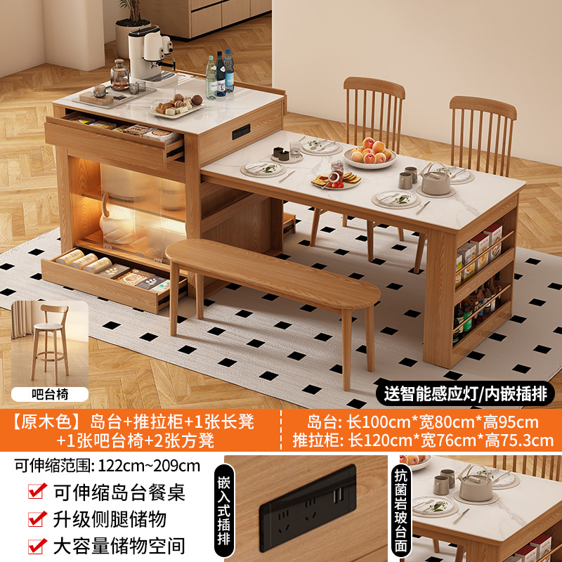섬 테이블 통합 가정용 개폐식 바 작은 아파트 다기능 솔리드 우드 컬러 주방 섬 테이블 사이드 보드스토어 가기