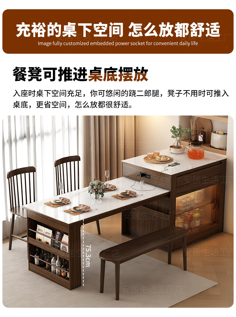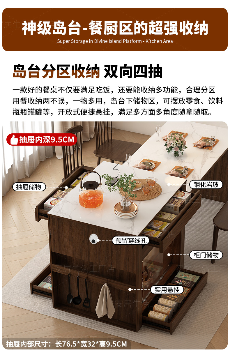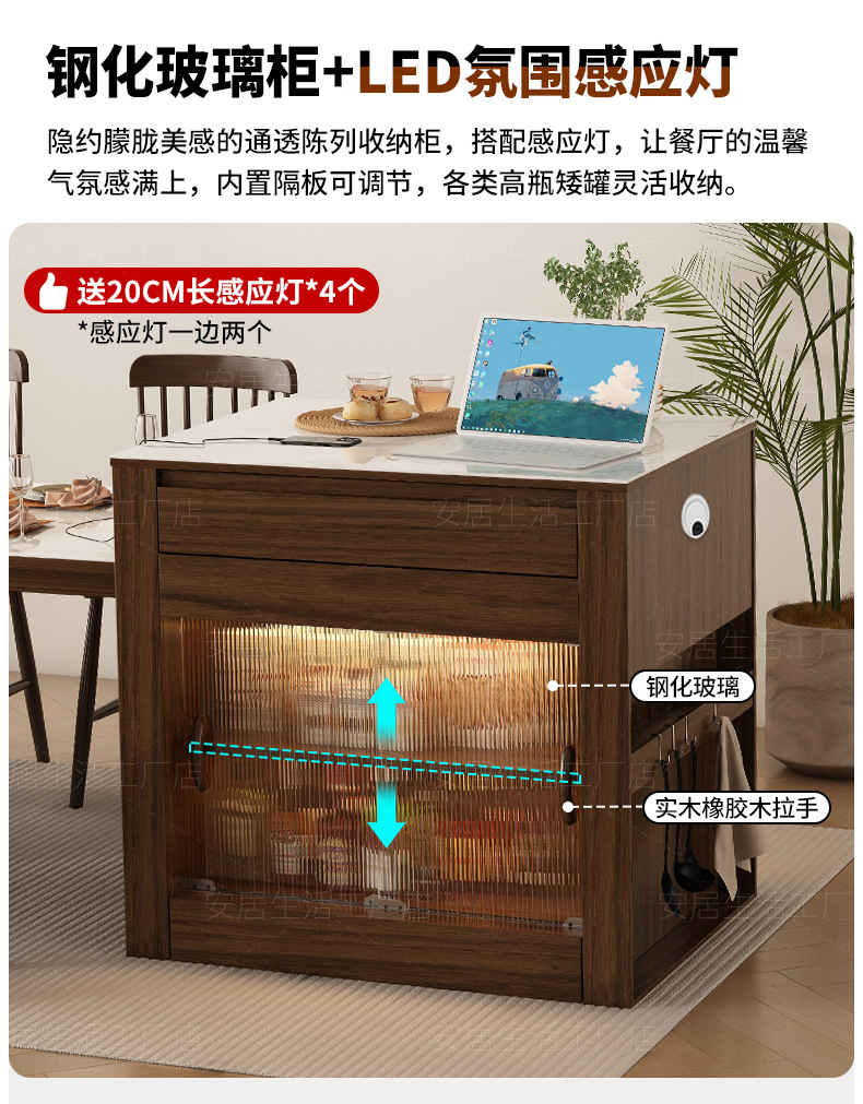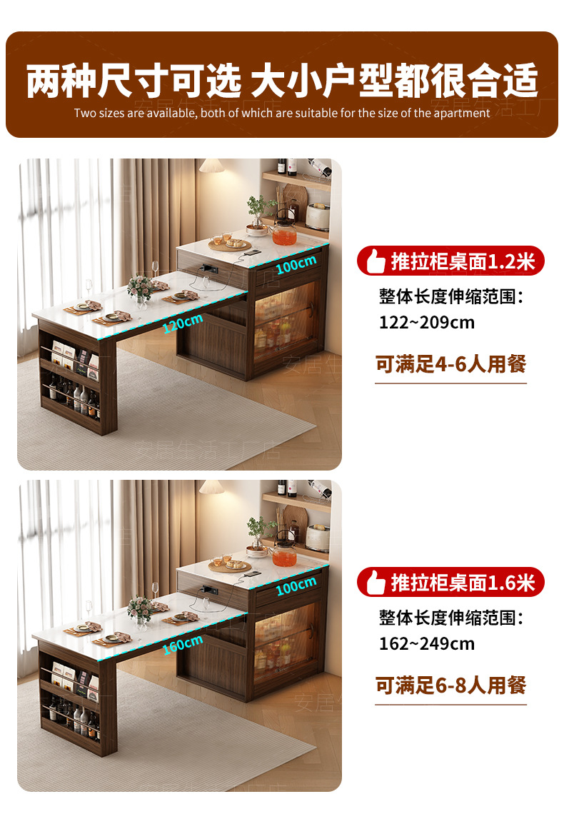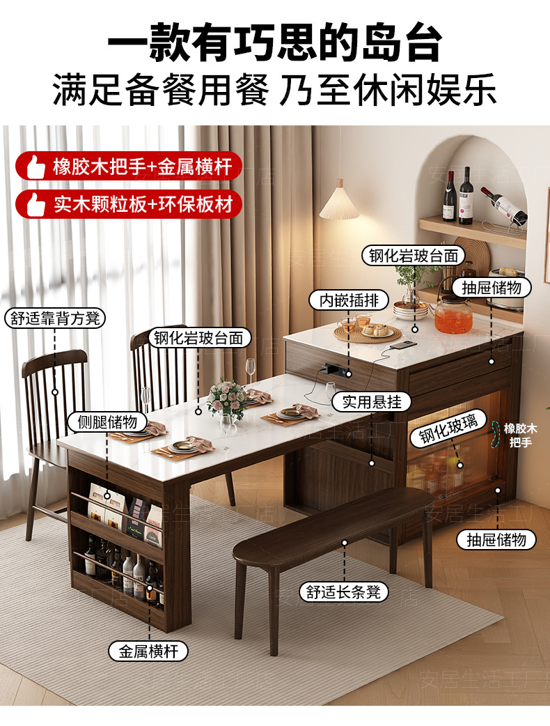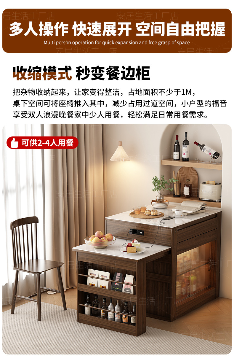 섬 테이블 통합 가정용 개폐식 바 작은 아파트 다기능 솔리드 우드 컬러 주방 섬 테이블 사이드 보드스토어 가기