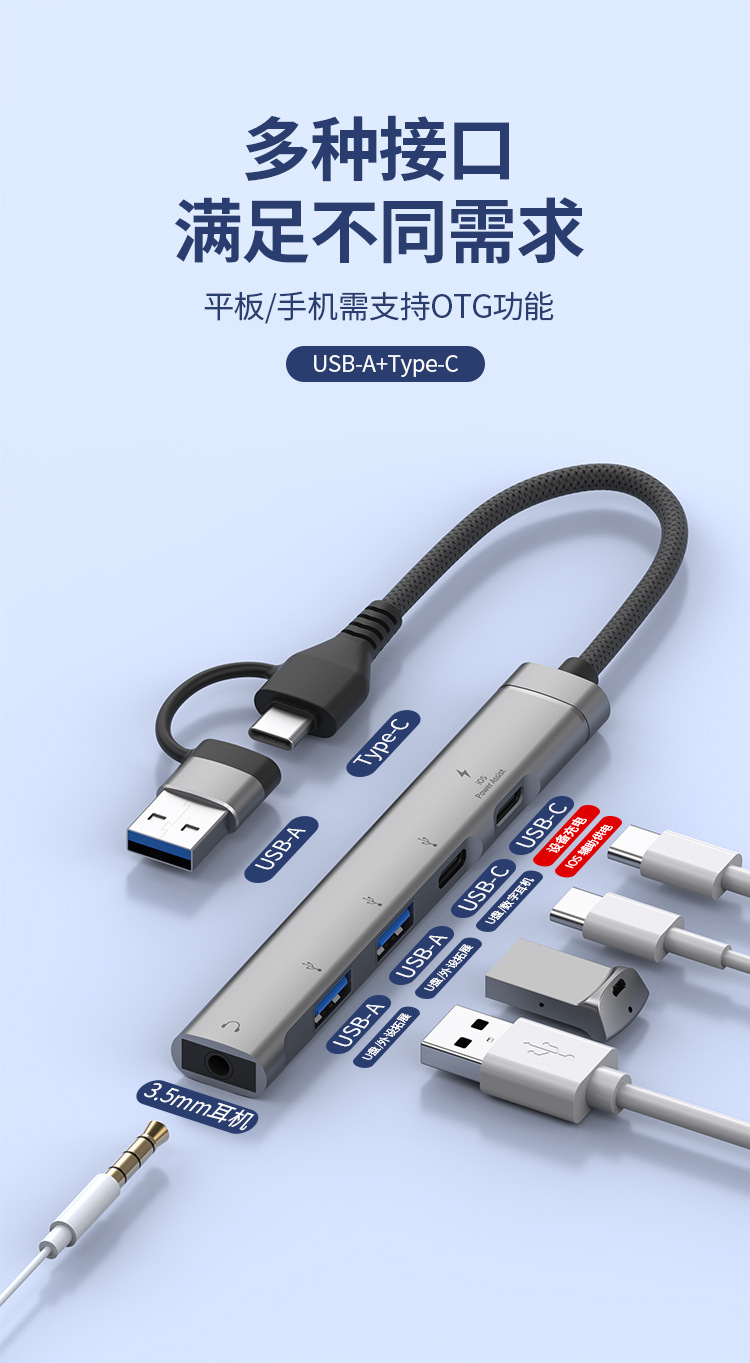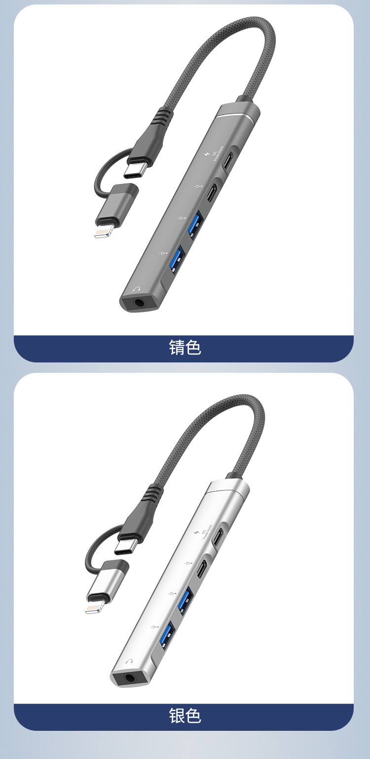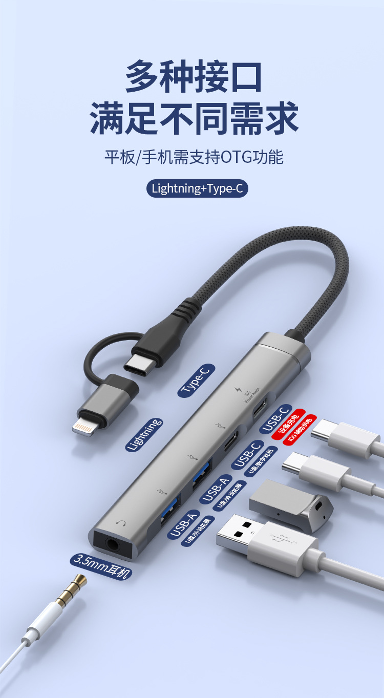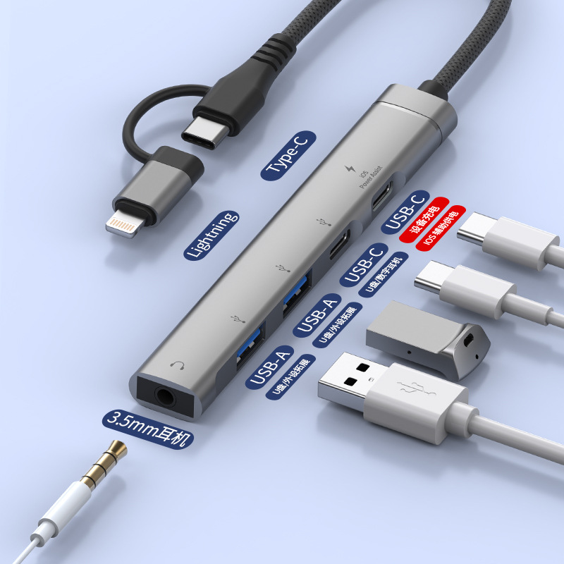 애플 USB 5-in -1 3.5mm 헤드셋 다기능 허브 확장 도크 U 디스크 마우스 TYPEC 허브에 적용 가능스토어 가기