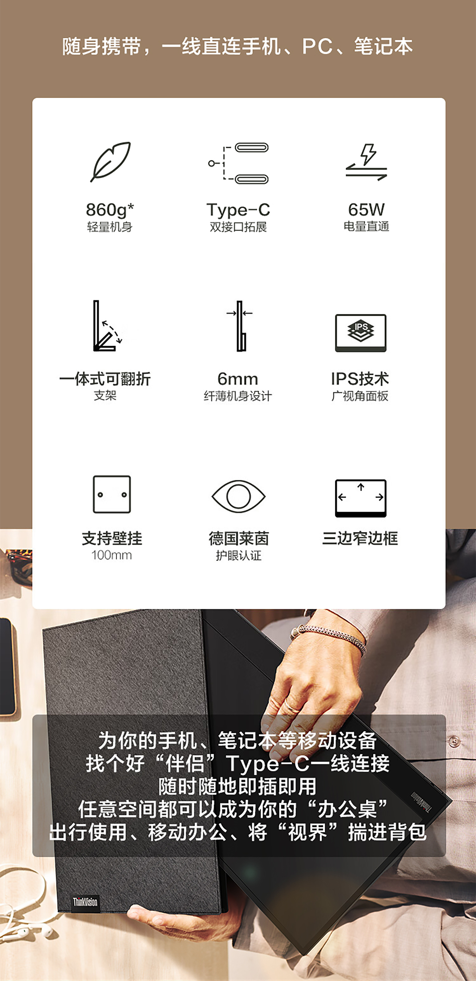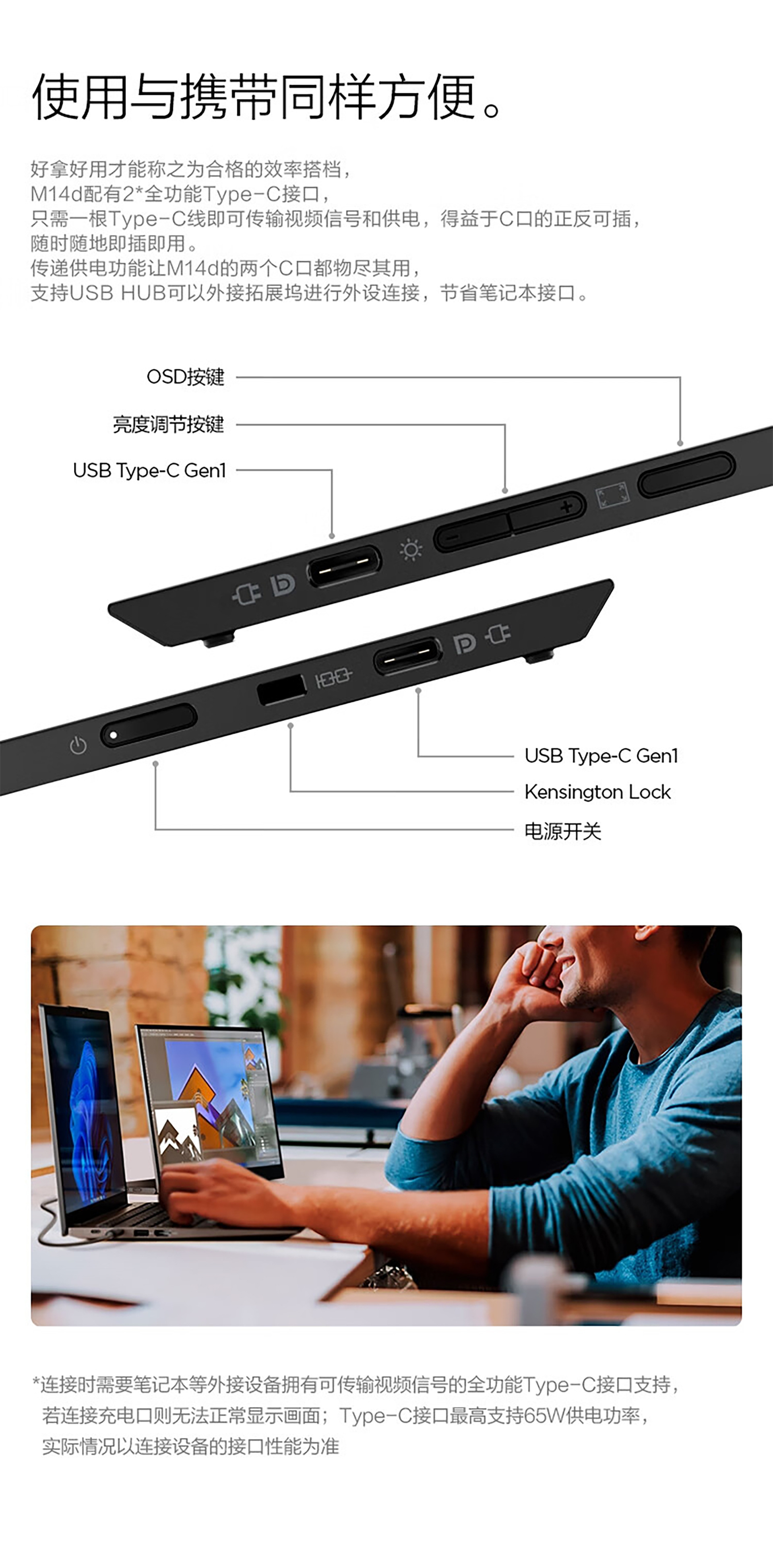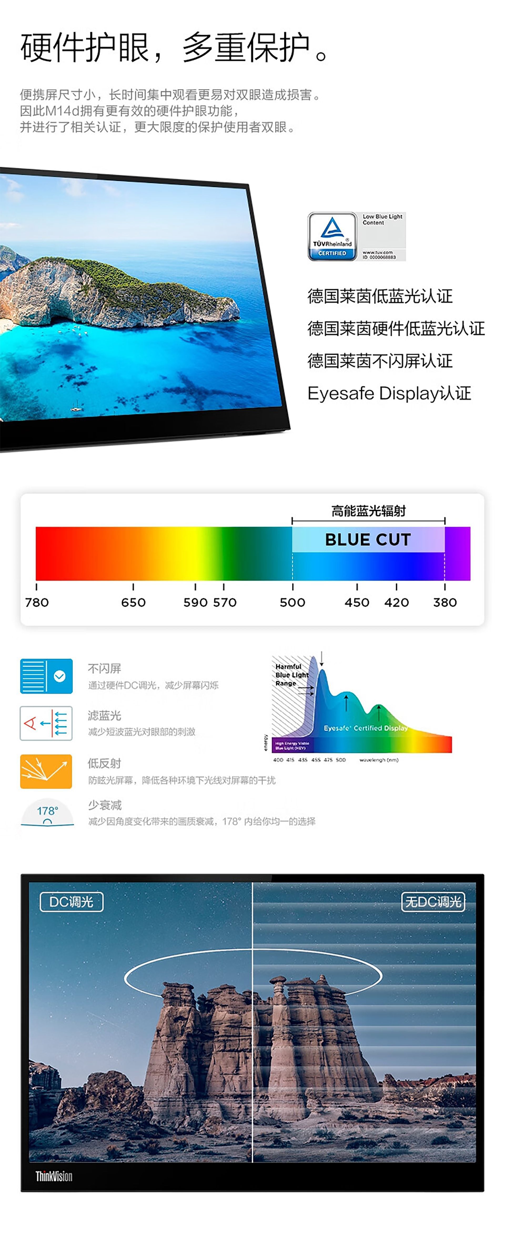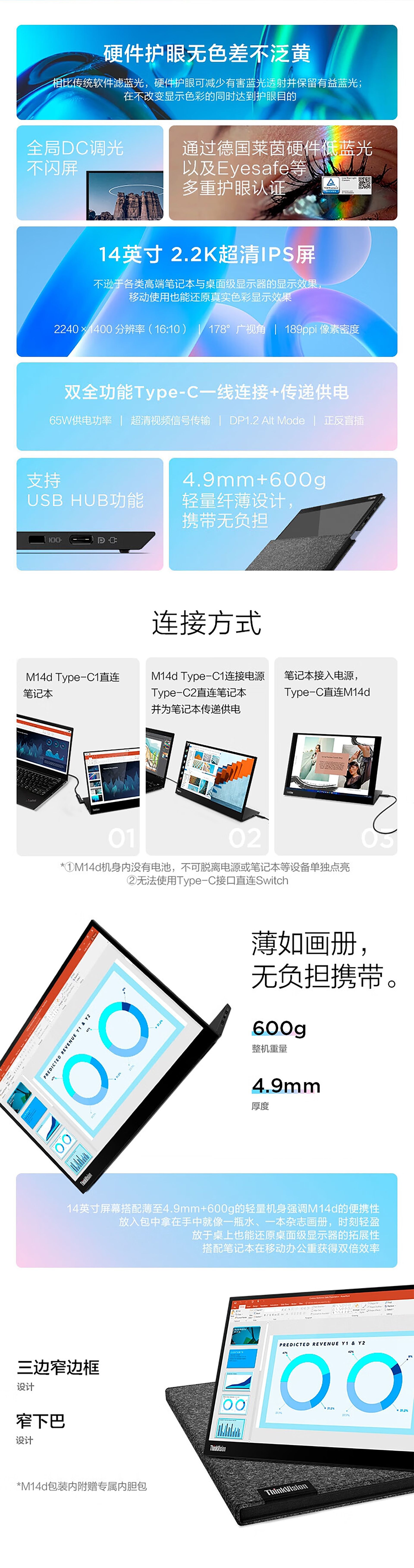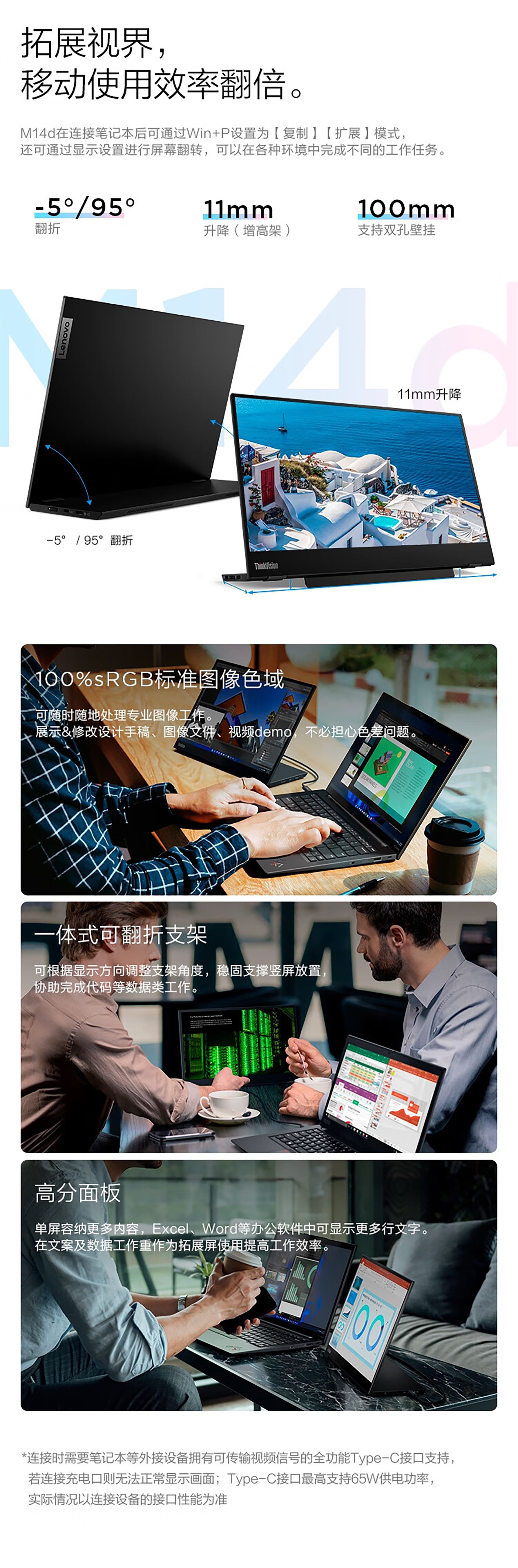 레노버 (레노버) 휴대용 스크린 디스플레이 눈 보호 화면 컴퓨터 휴대 전화 확장 외부 화면 유형-C 연결스토어 가기
