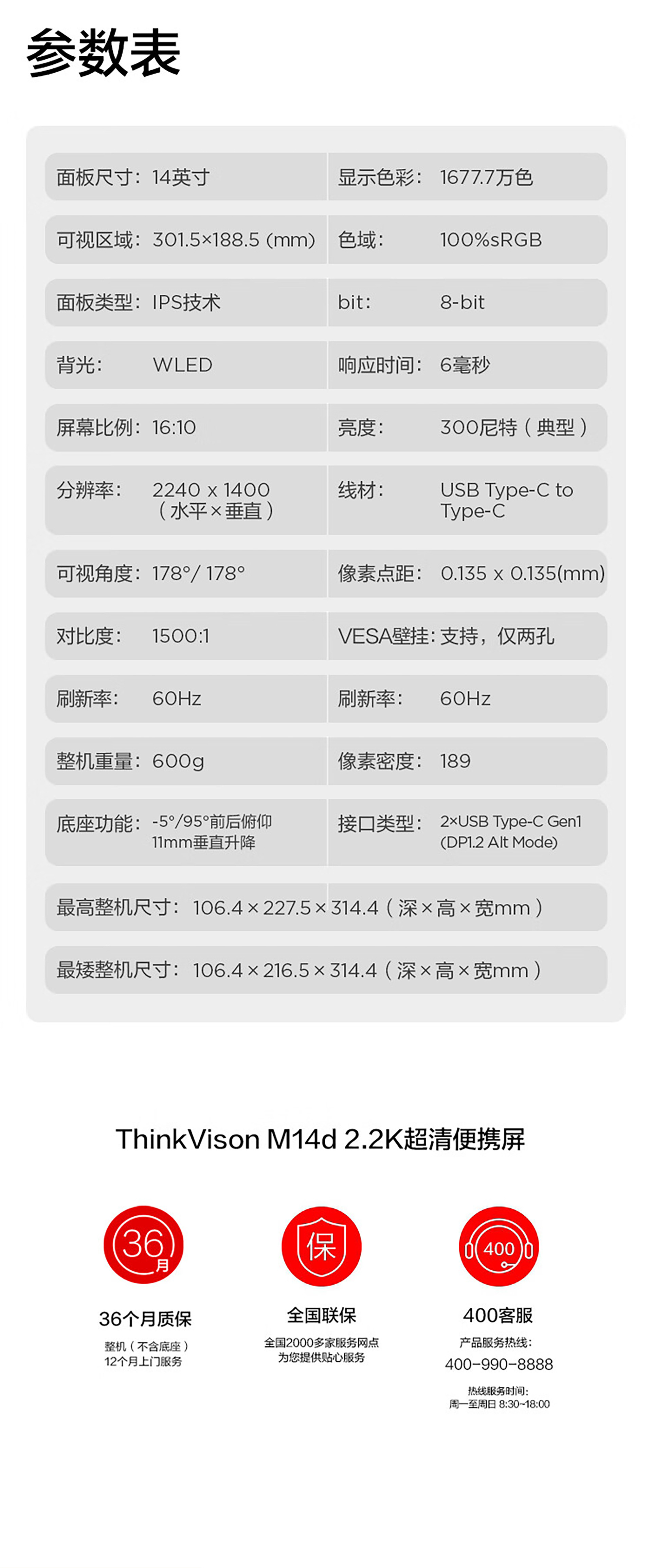 • 14inch /2.2k 울트라 클리어 휴대용 스크린 M14d