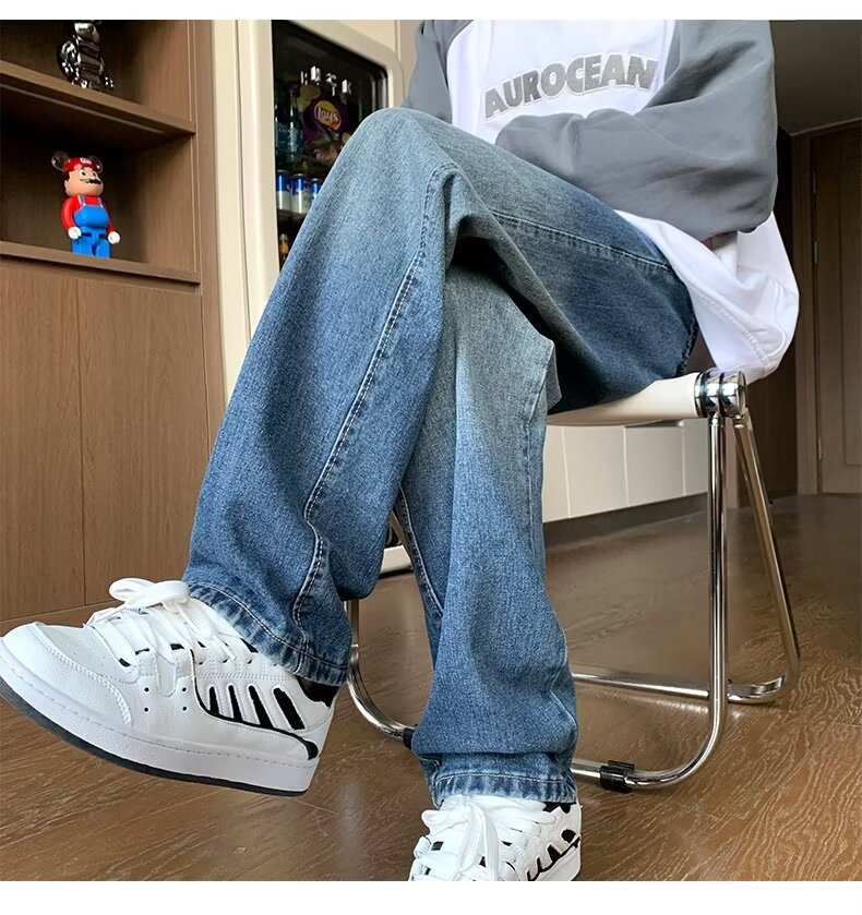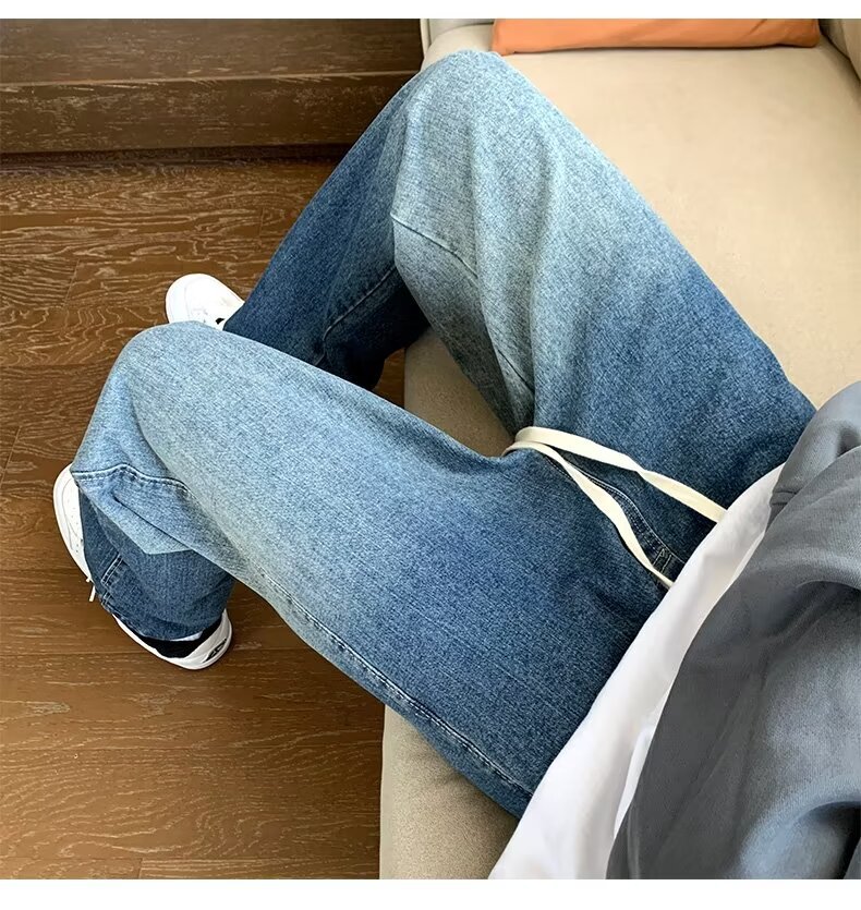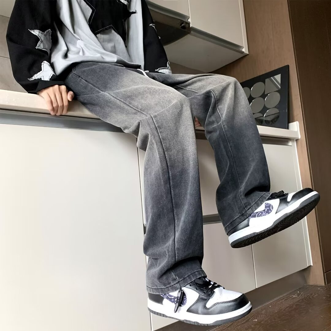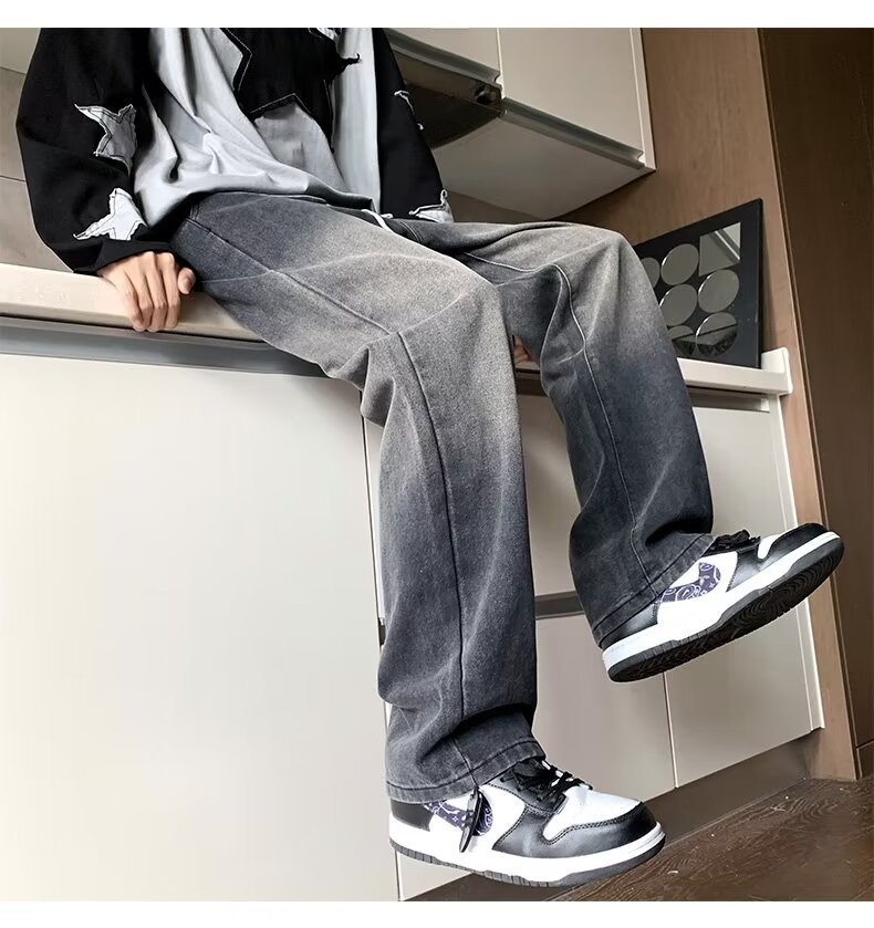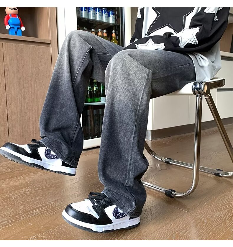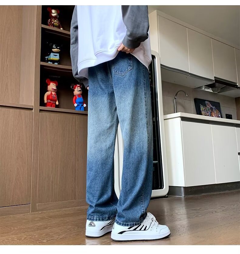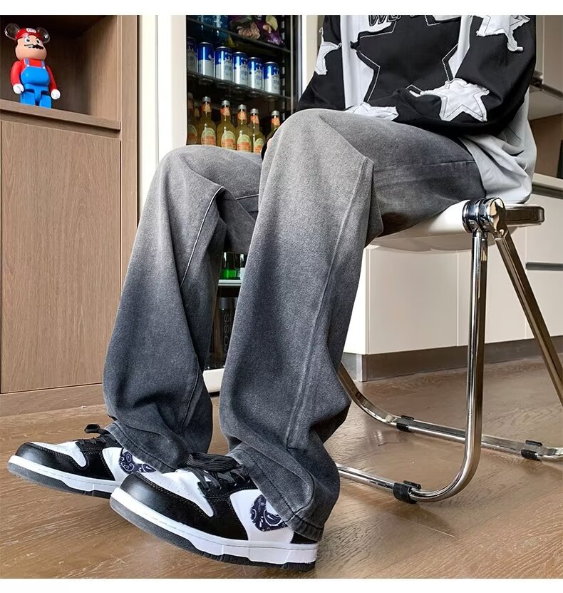 그라디언트 청바지 남성용 스트레이트 레그 루즈 와이드 레그 팬츠, 올드 아메리칸 스타일 레트로 하이 스트리트 슬림 룩 올 매치 바지스토어 가기