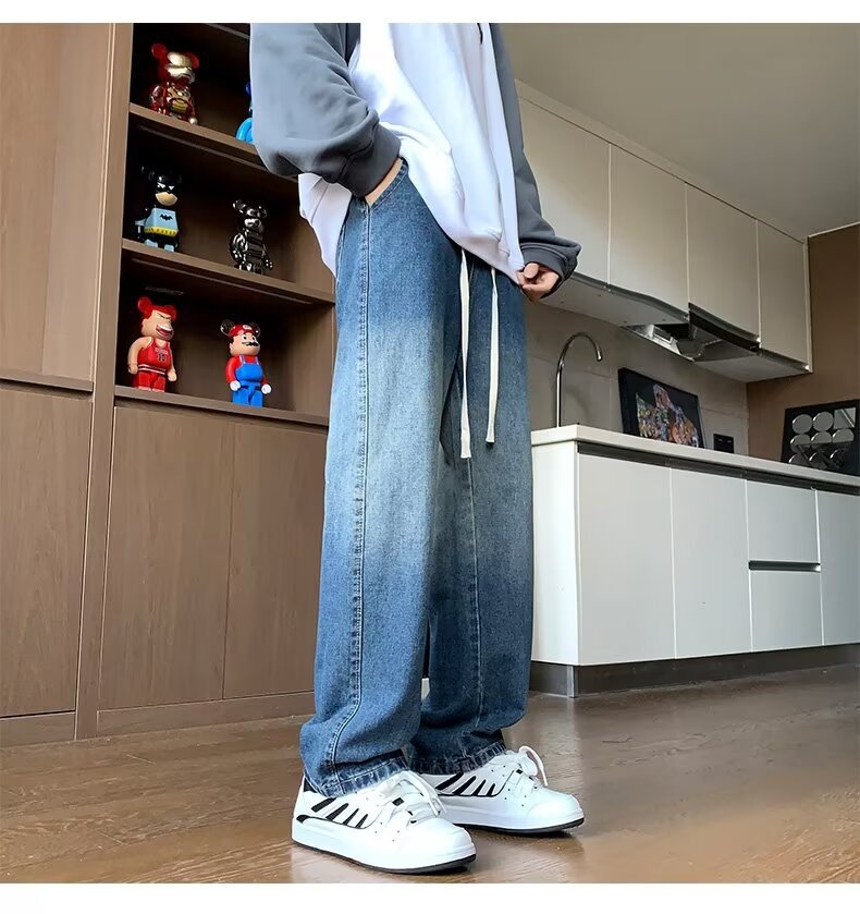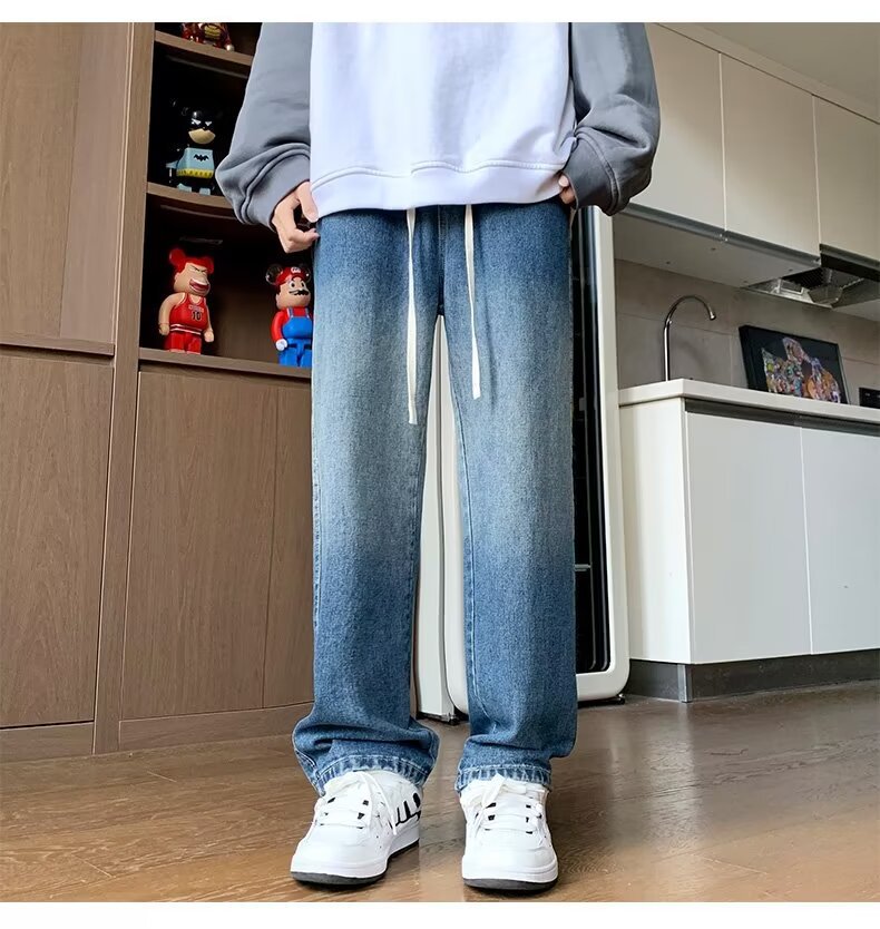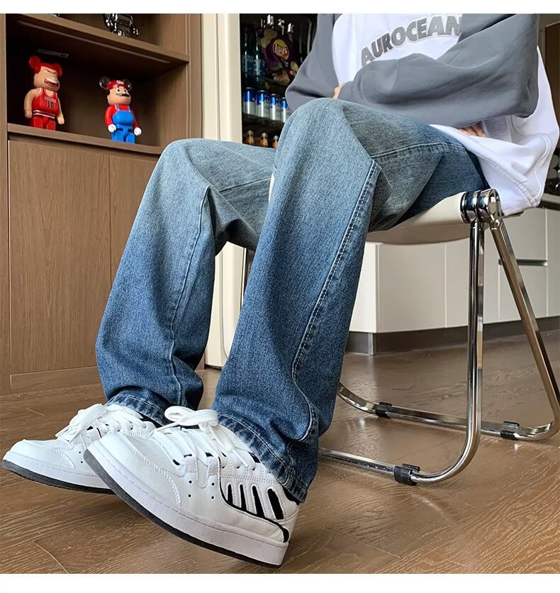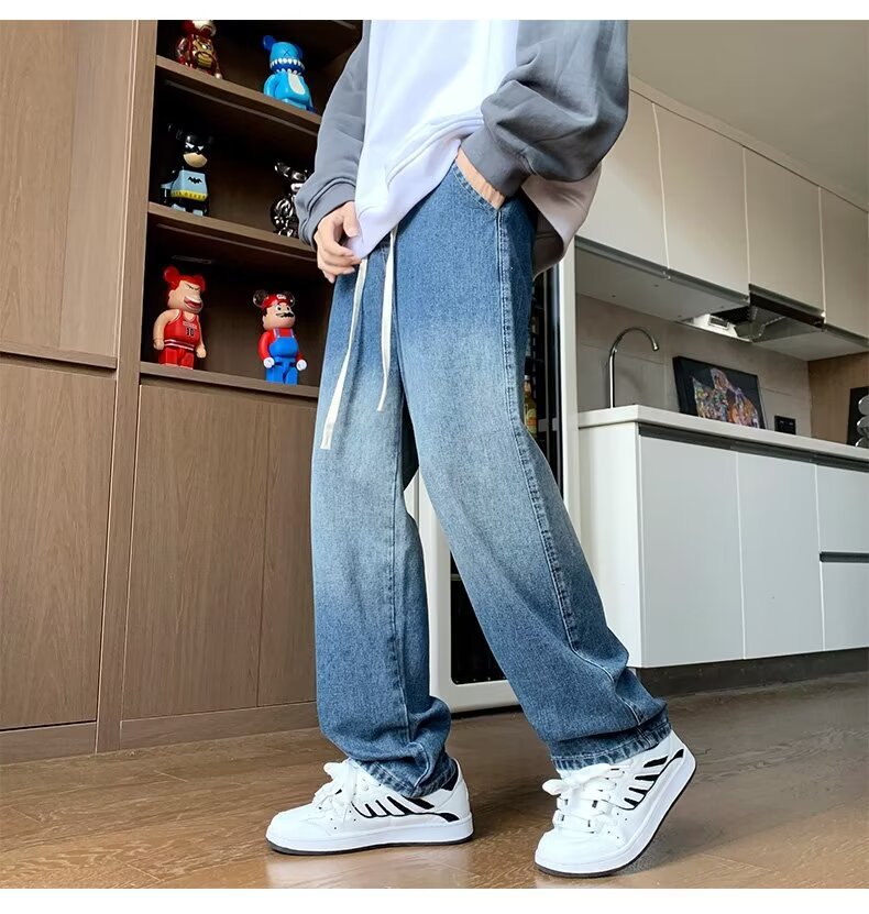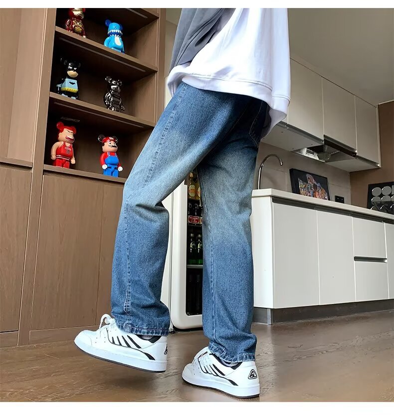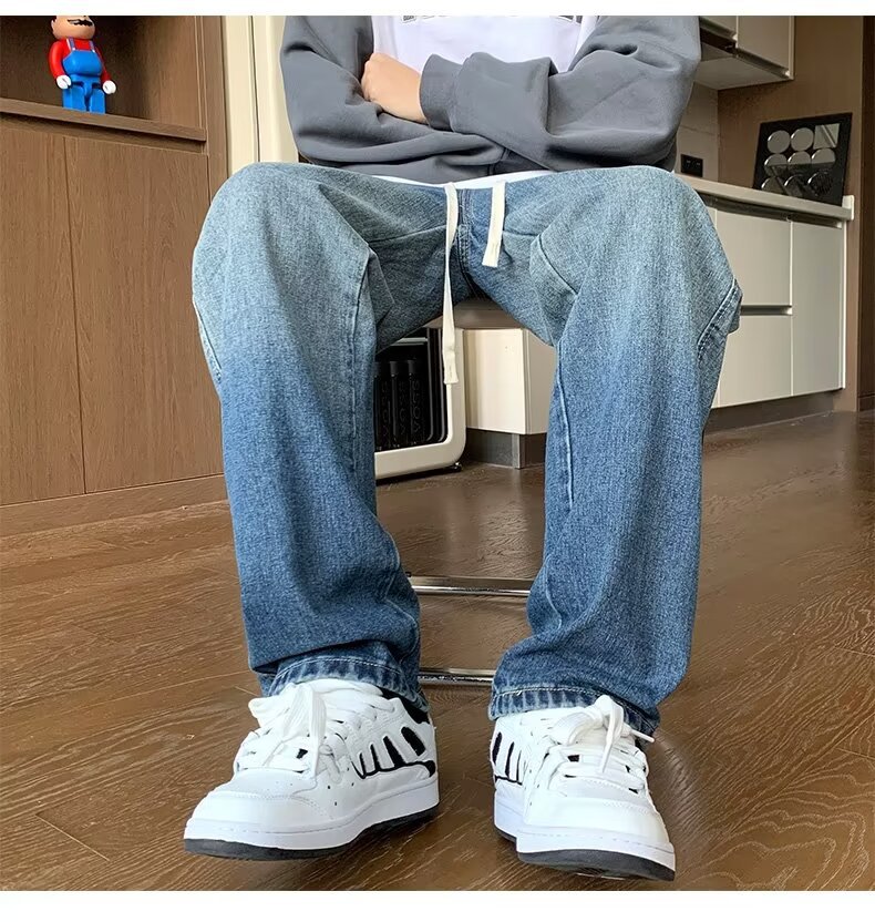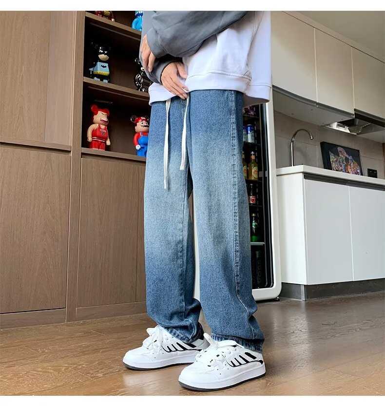 그라디언트 청바지 남성용 스트레이트 레그 루즈 와이드 레그 팬츠, 올드 아메리칸 스타일 레트로 하이 스트리트 슬림 룩 올 매치 바지스토어 가기