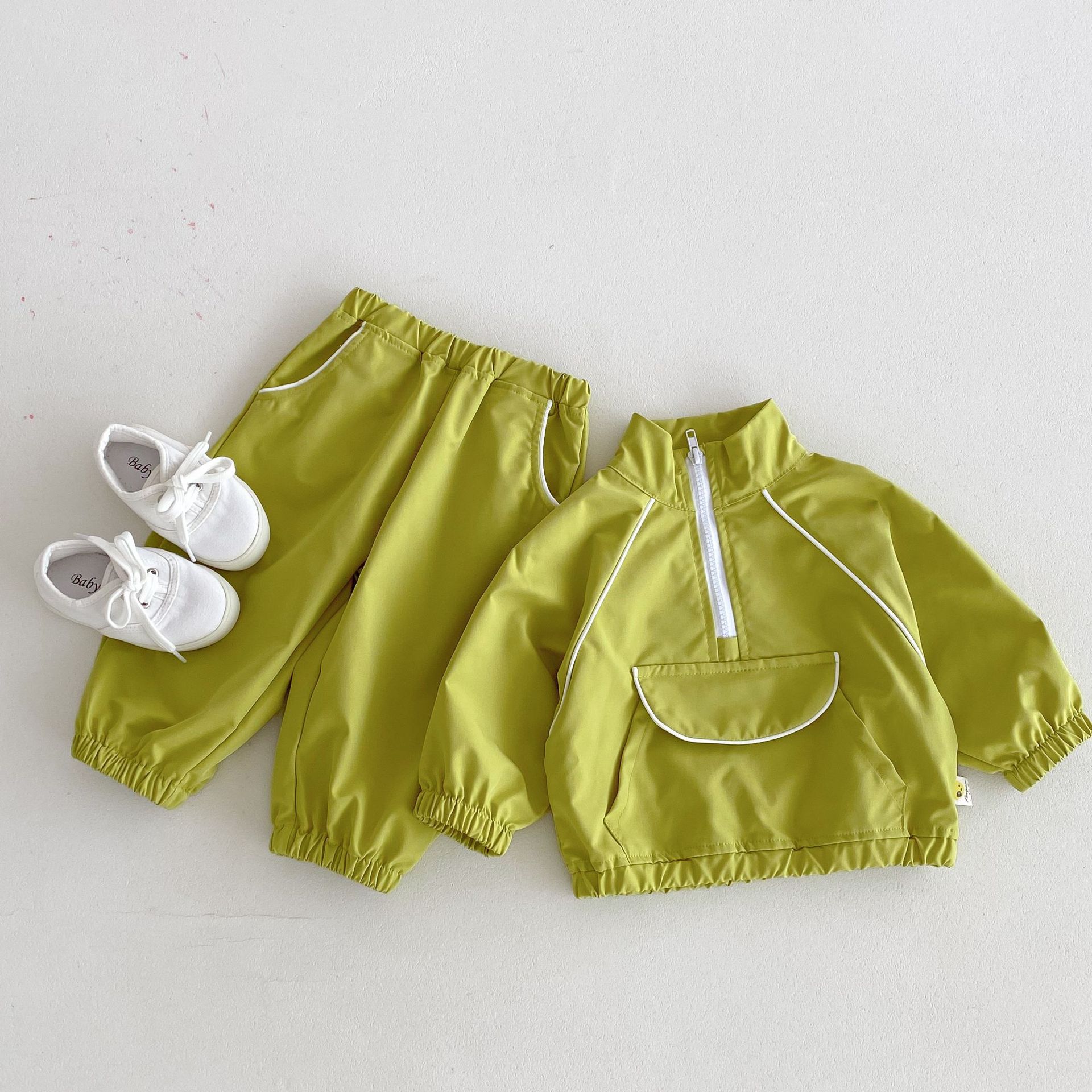 가을 2024 년 한국 아동복 어린이 스포츠 세트 소년 가을 의류 세트 캐주얼 소녀 바지 투피스 세트 조수