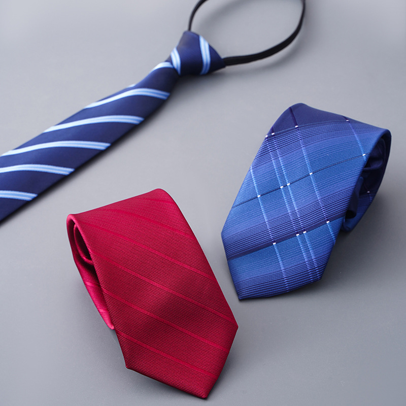 지퍼로 묶는 타이프 남성 비즈니스 정장 8cm 블루 스트라이프 레이지 이지타이 남성용