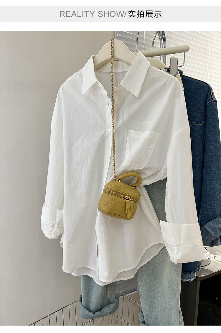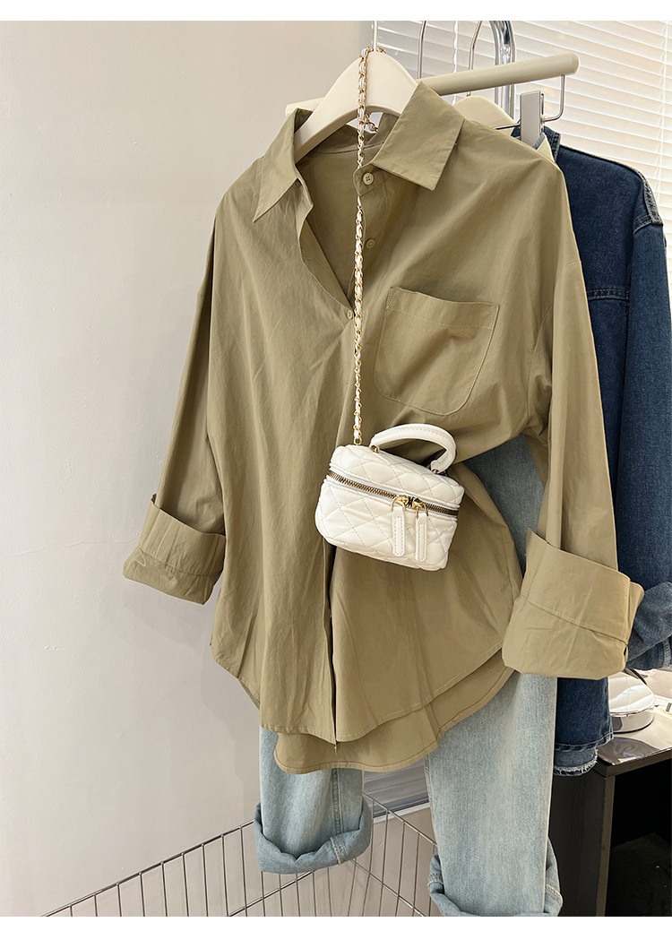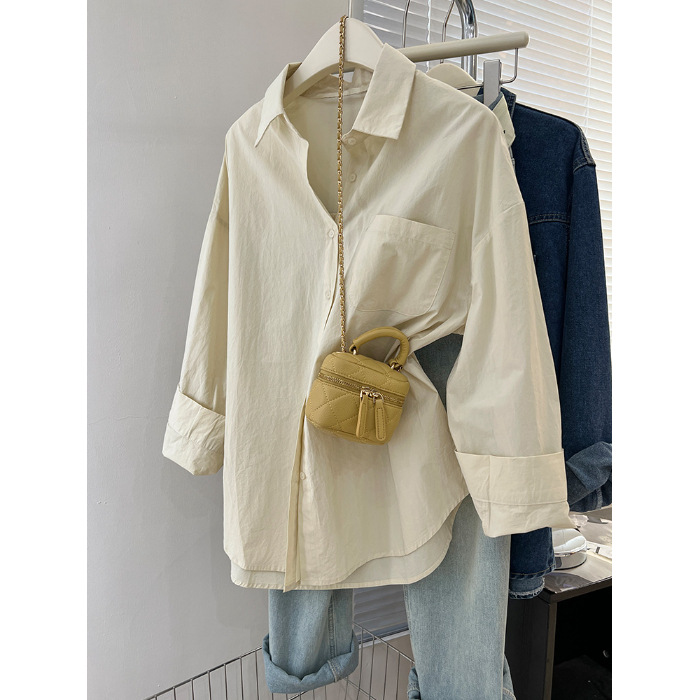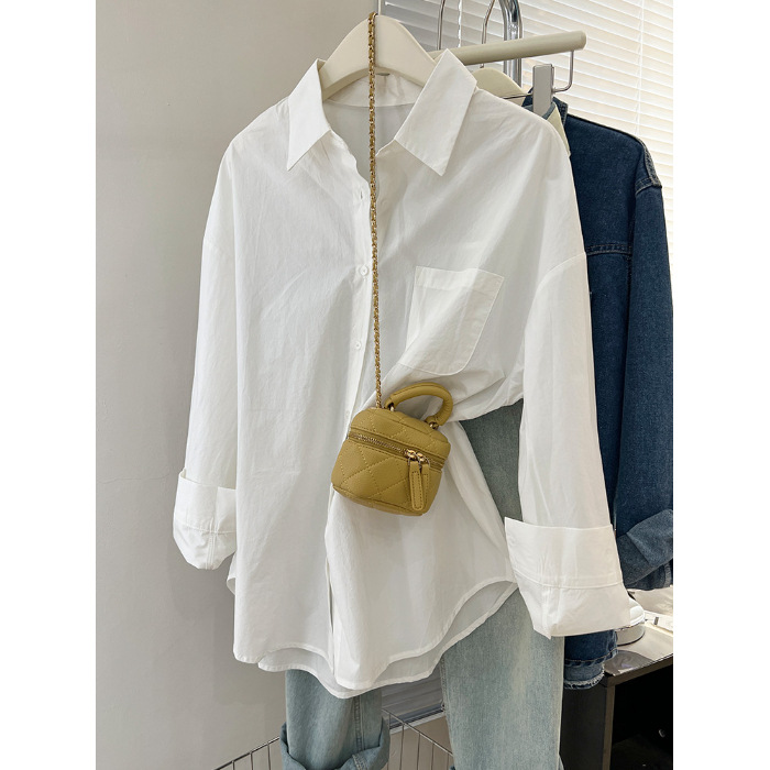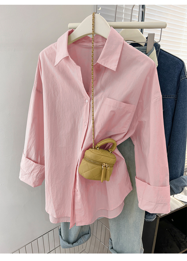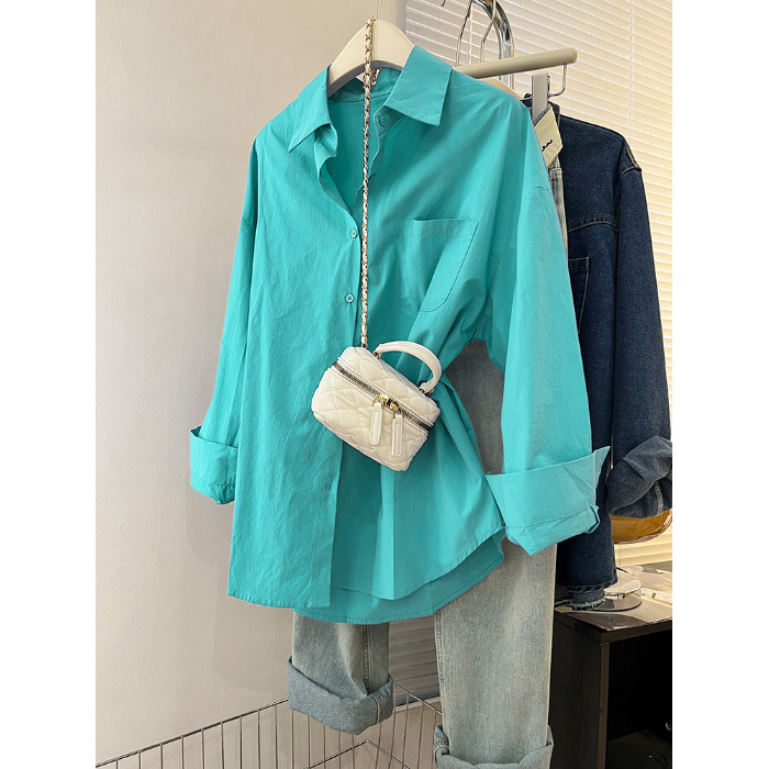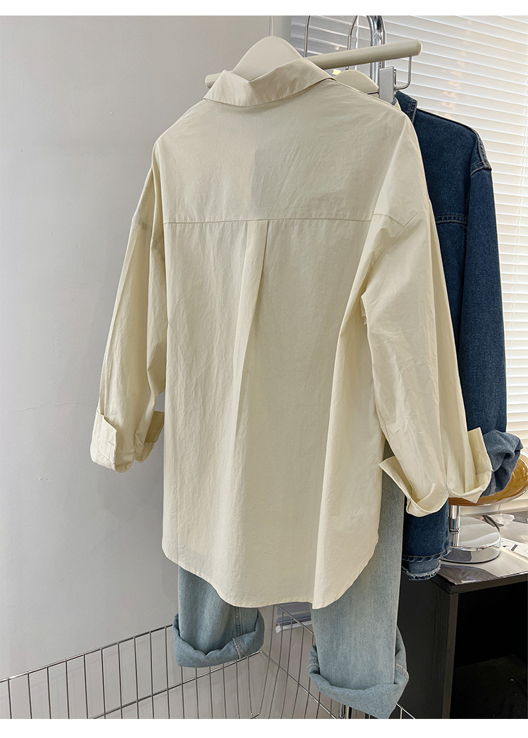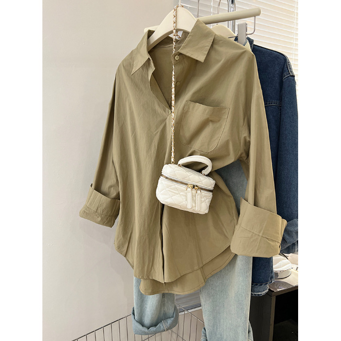 순수한 면 POLO 칼라 긴 소매 셔츠 여성의 2024 봄과 가을 새로운 단색 작은 여성을위한 중간 길이의 느슨한 탑
