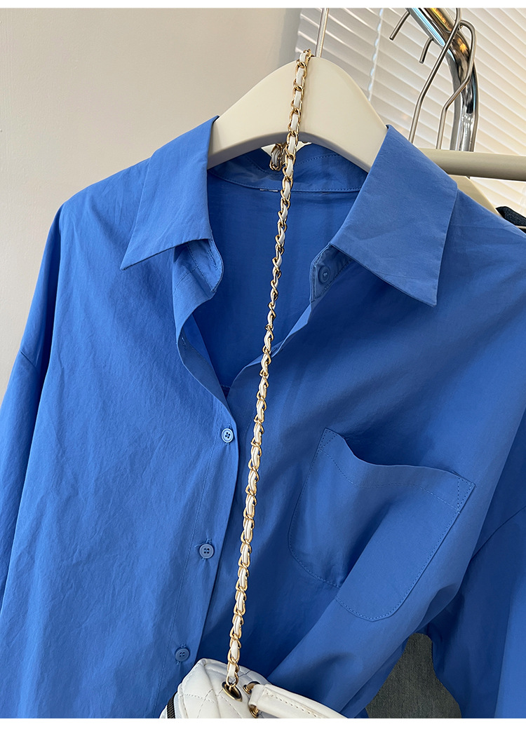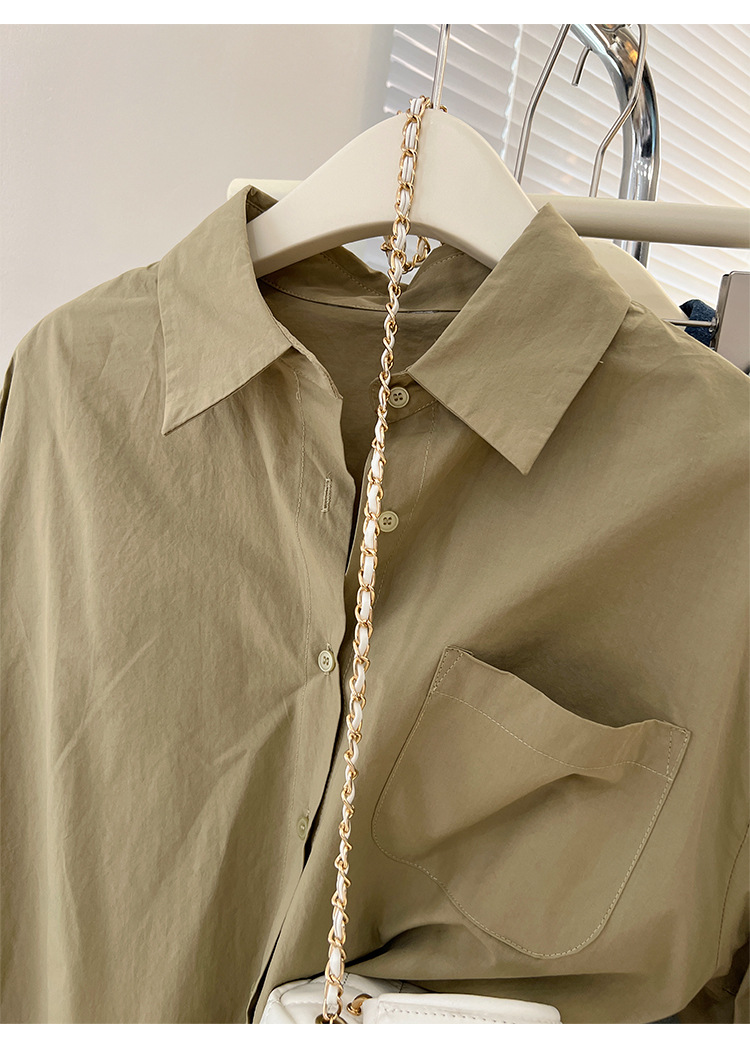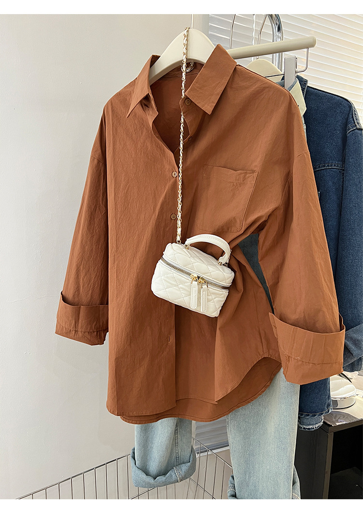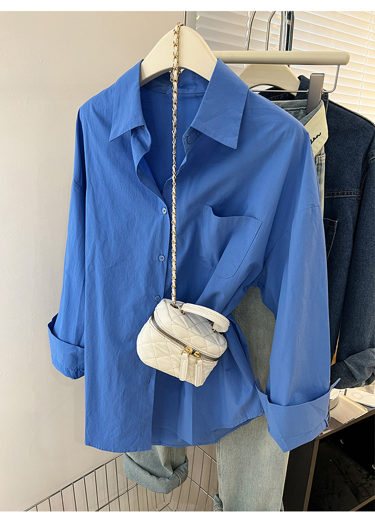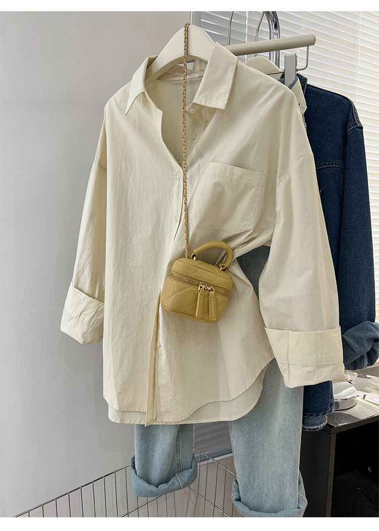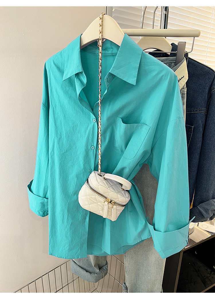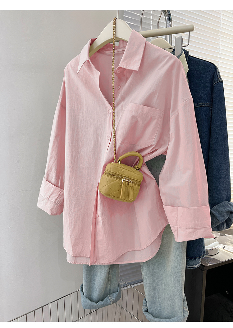 순수한 면 POLO 칼라 긴 소매 셔츠 여성의 2024 봄과 가을 새로운 단색 작은 여성을위한 중간 길이의 느슨한 탑