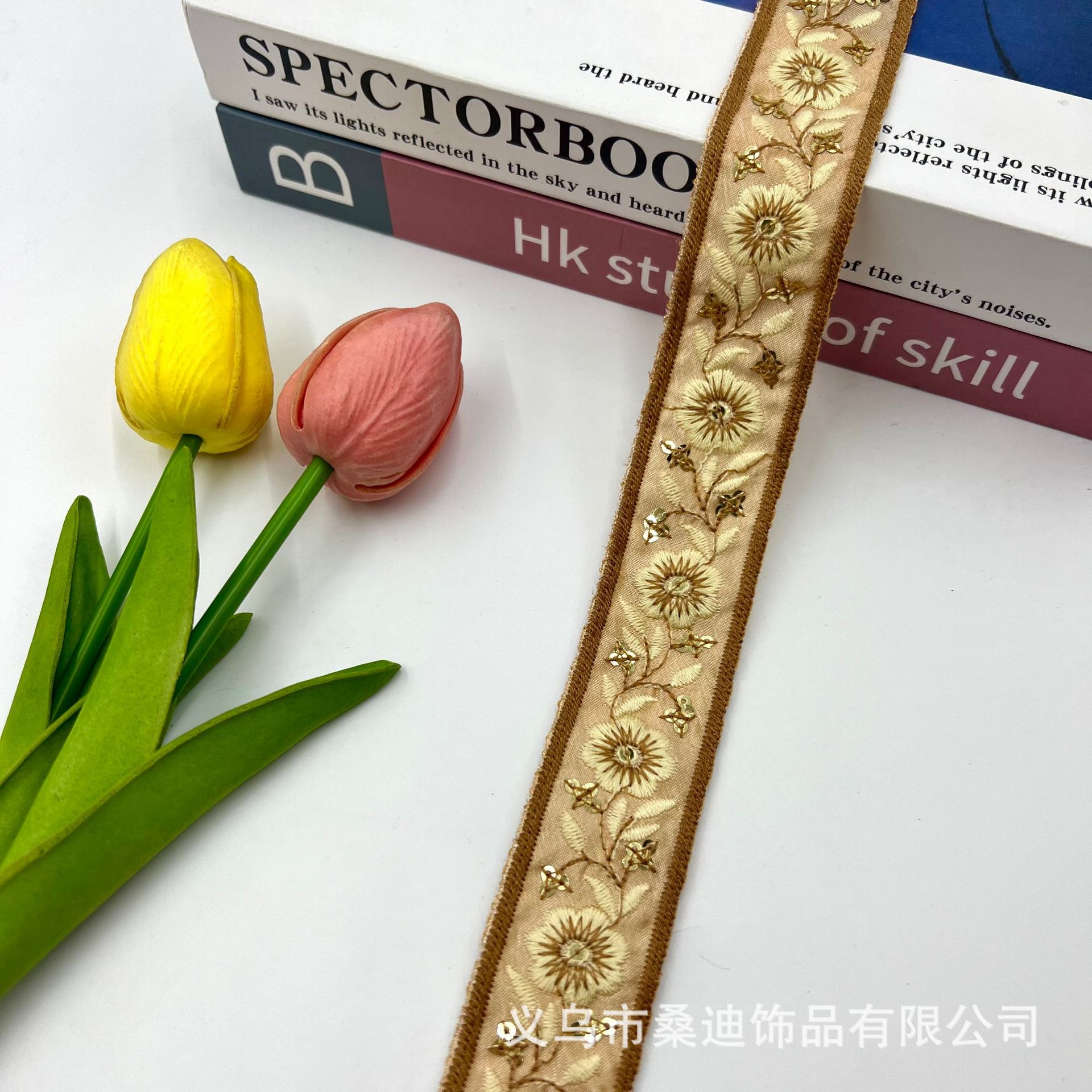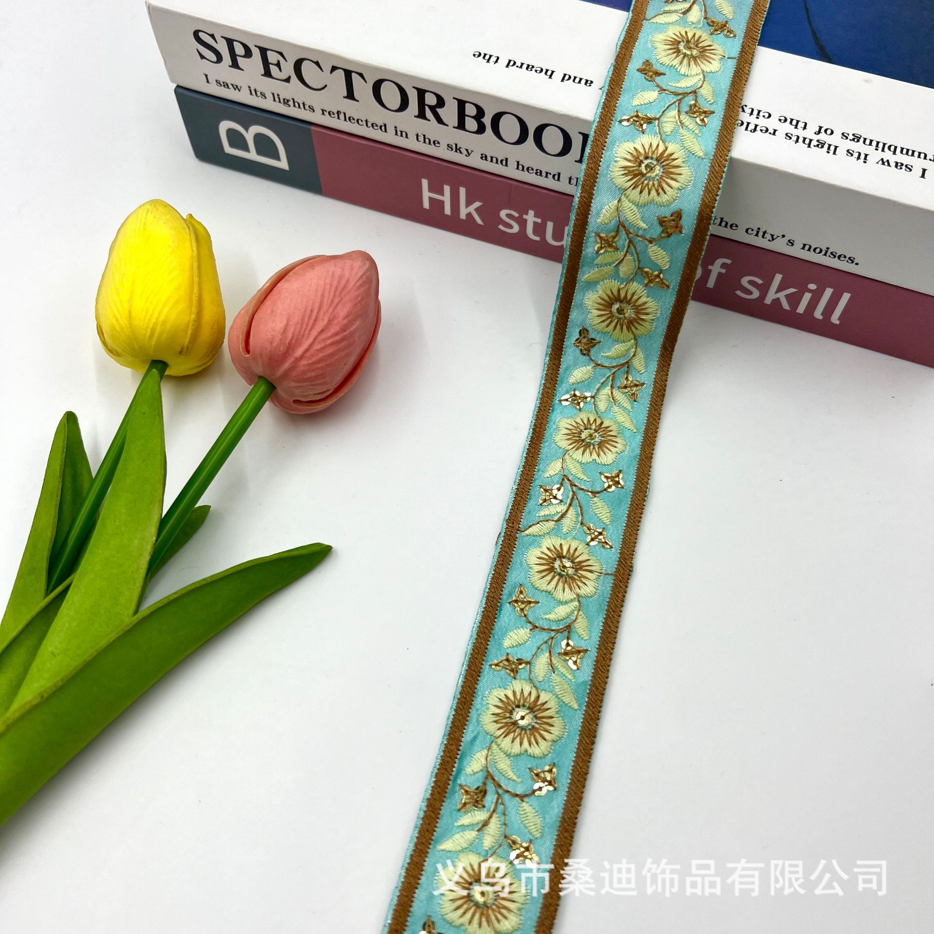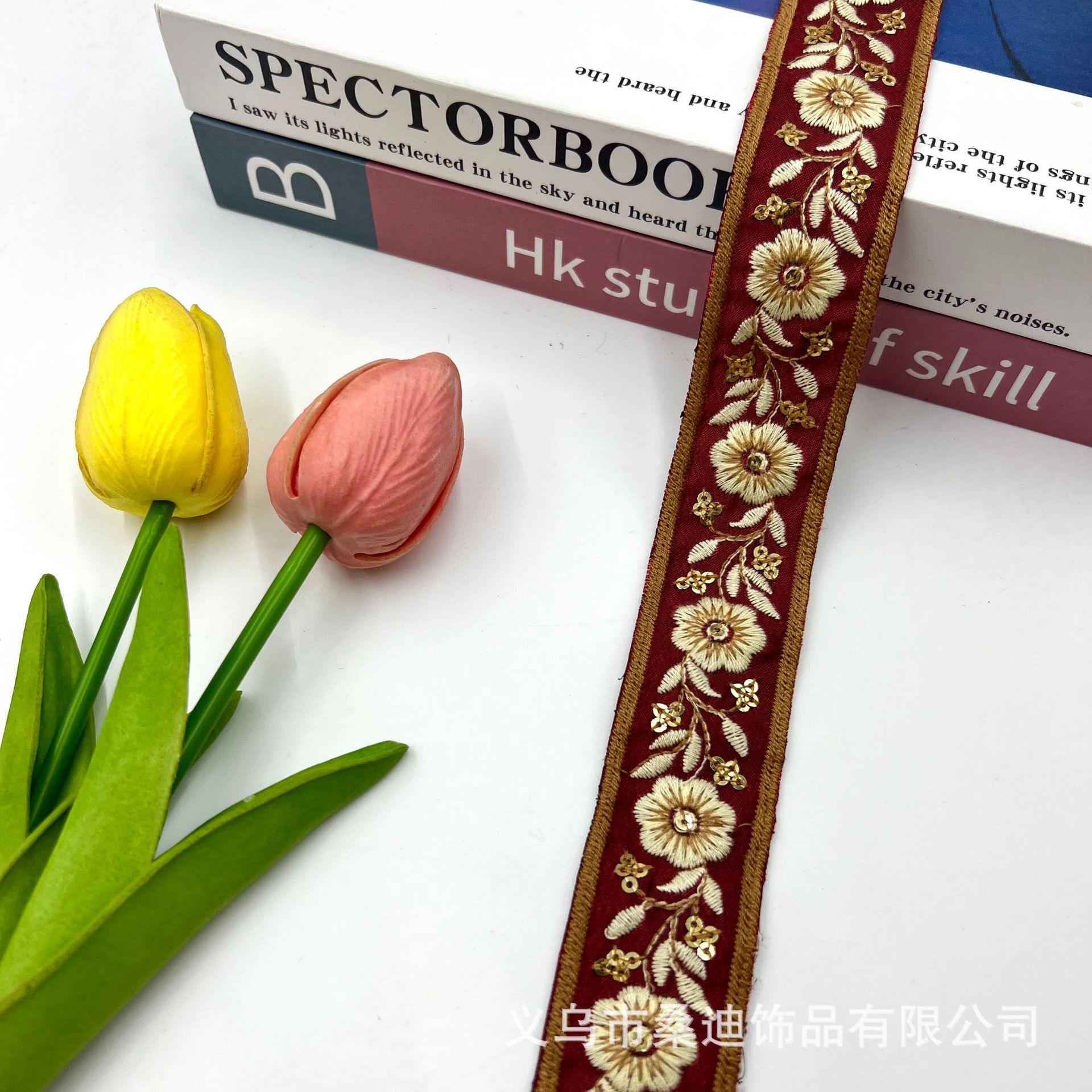 새로운 민족 자수 자카드 레이스 커튼 의류 머리 장식 보석 자수 레이스 액세서리 3.5CM 와이드