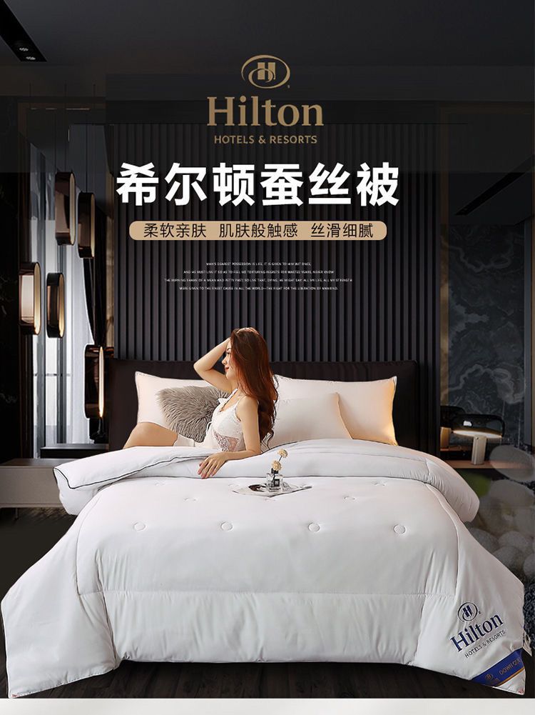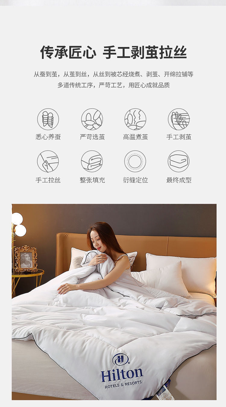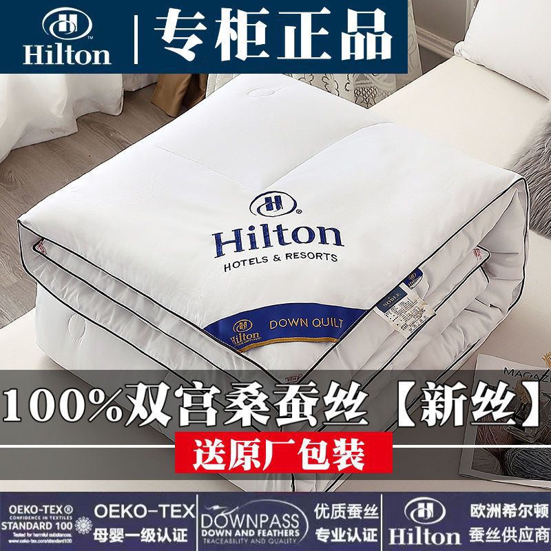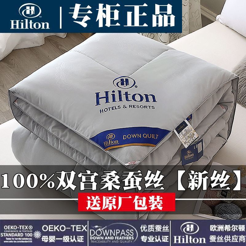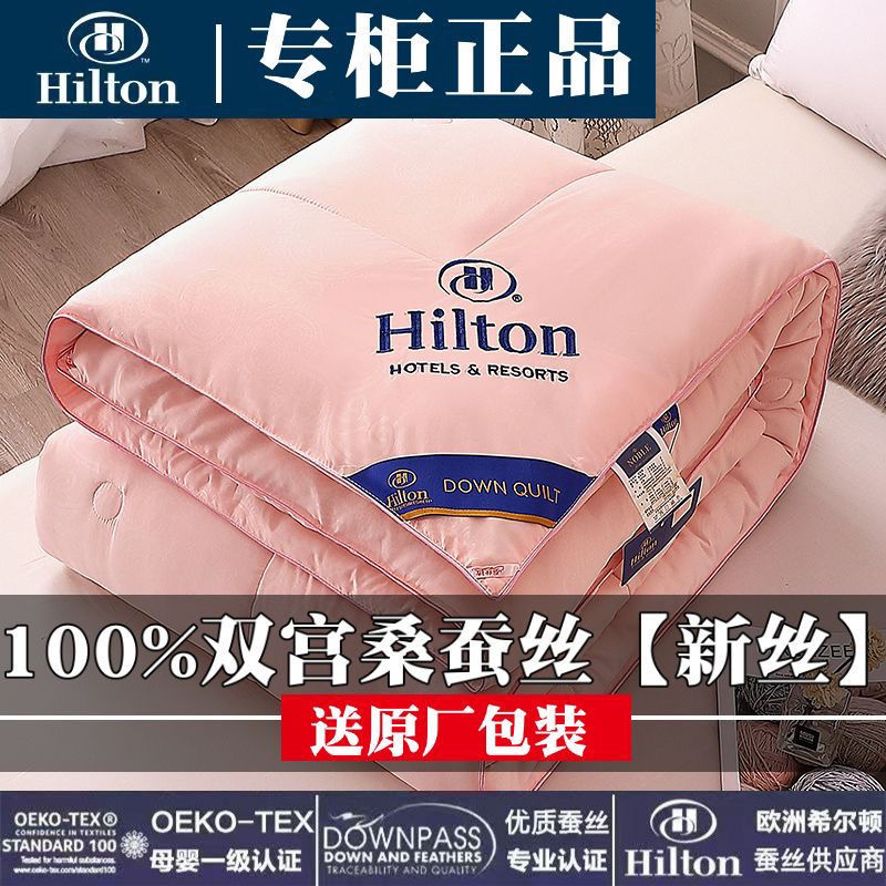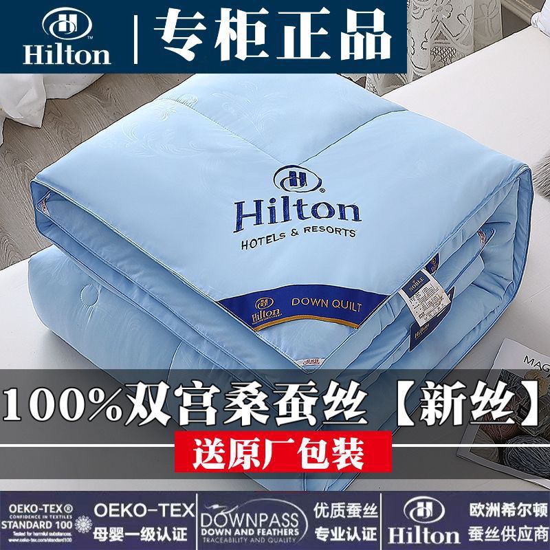 정품 힐튼 실크 퀼트 100% 뽕나무 실크 퀼트 봄과 가을 이불 더블 에어컨 겨울 두꺼운 따뜻한 겨울 퀼트 코어스토어 가기