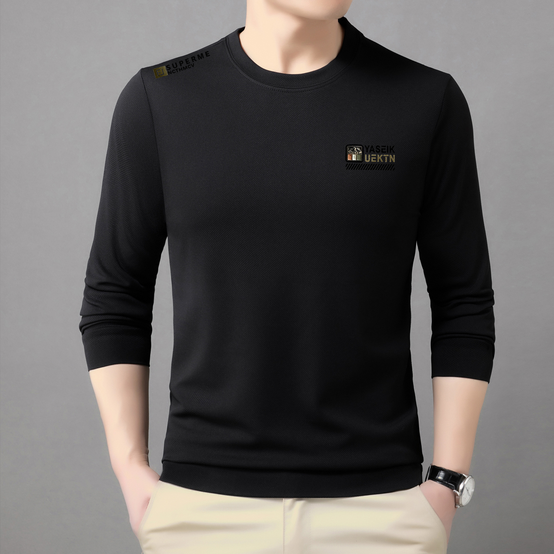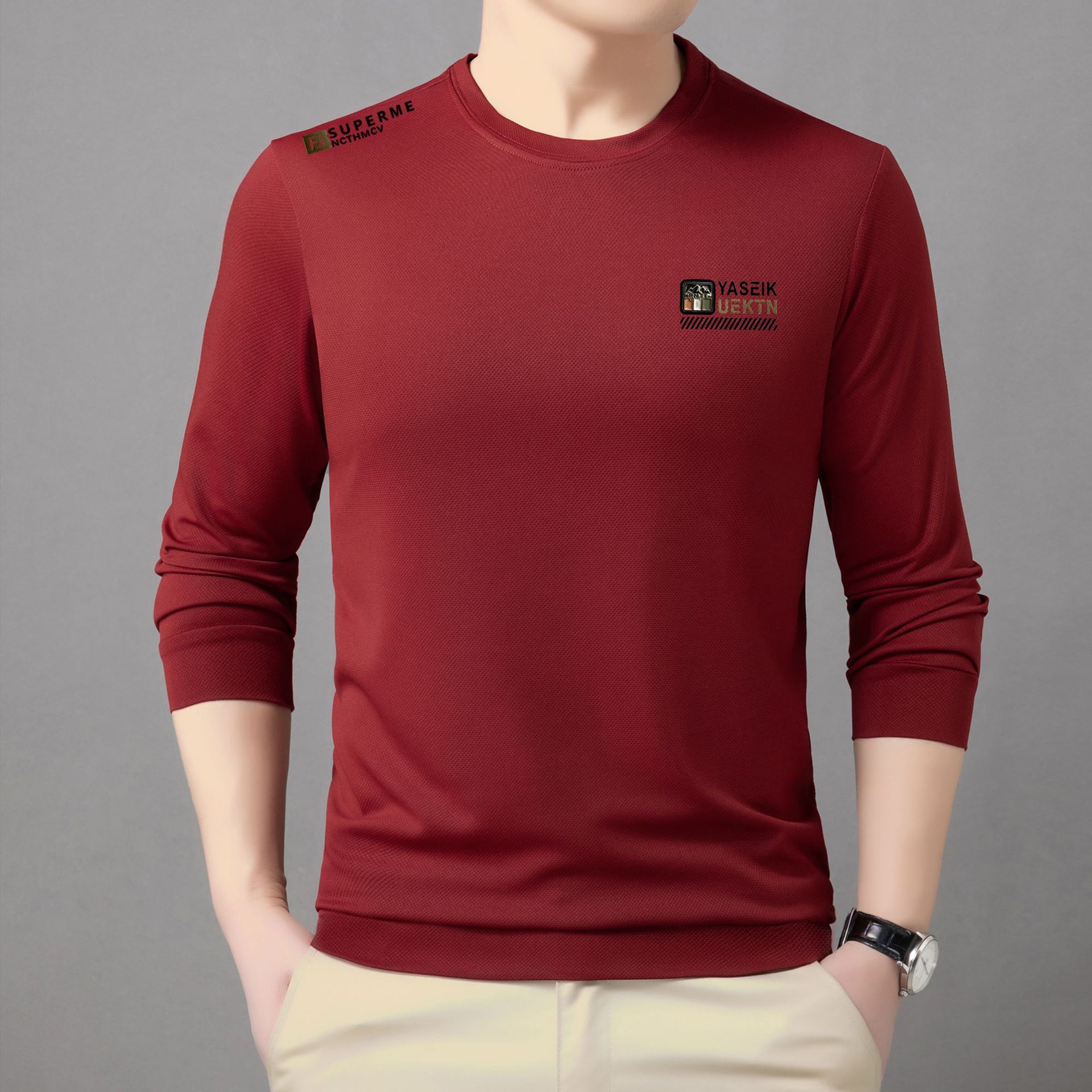 중년 와플 크루 넥 새로운 남성 긴 소매 봄과 가을 비 다림질 비즈니스 패션 남성 스웨터 버스트스토어 가기