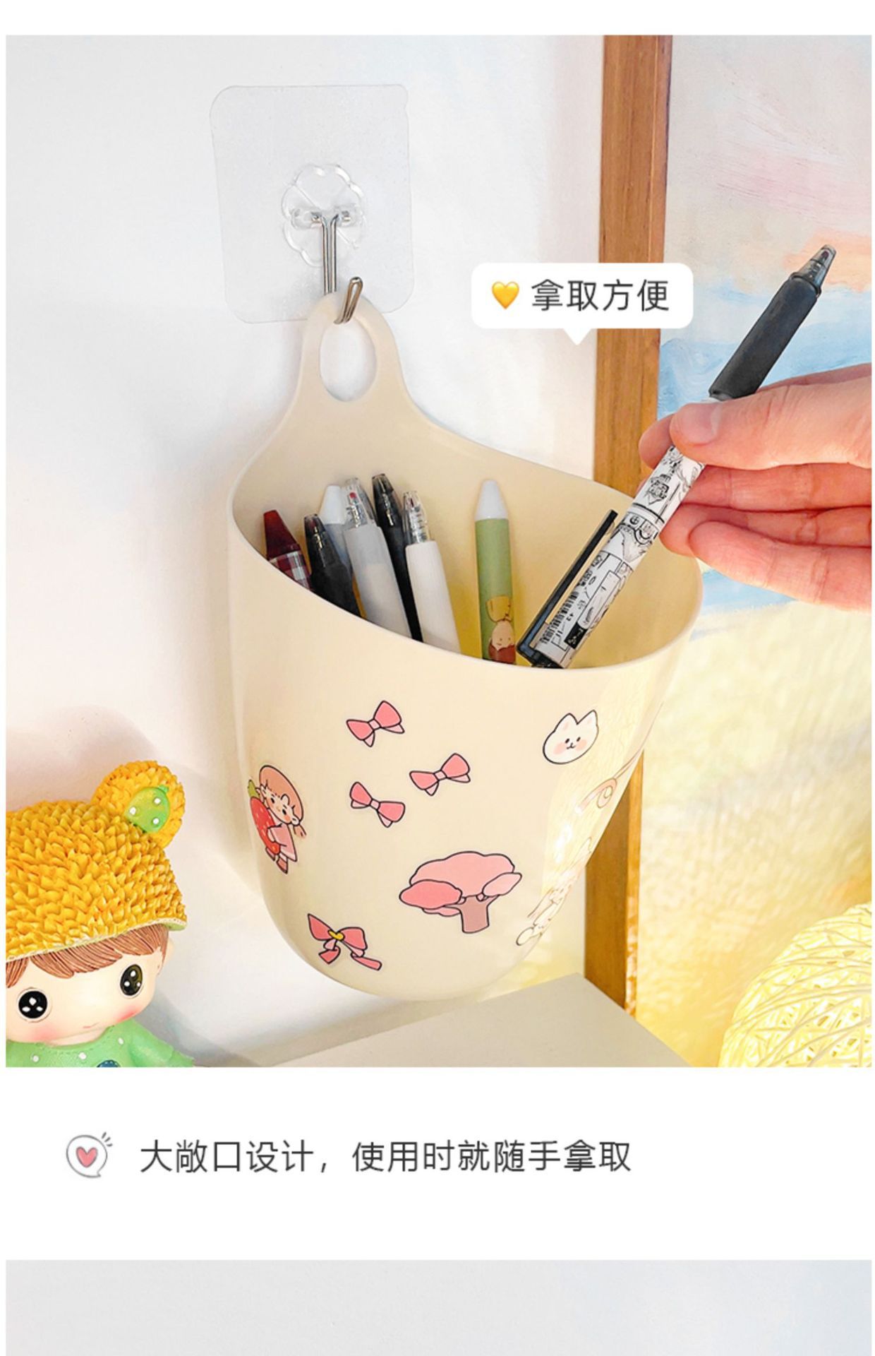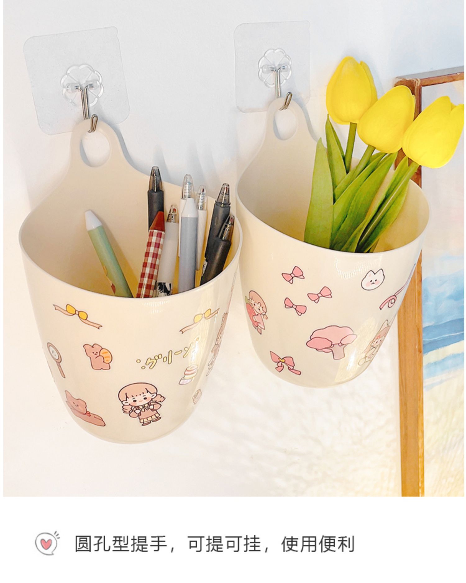 • 베이지색 수납통 ★ [1팩] 후크 + 스티커 포함
