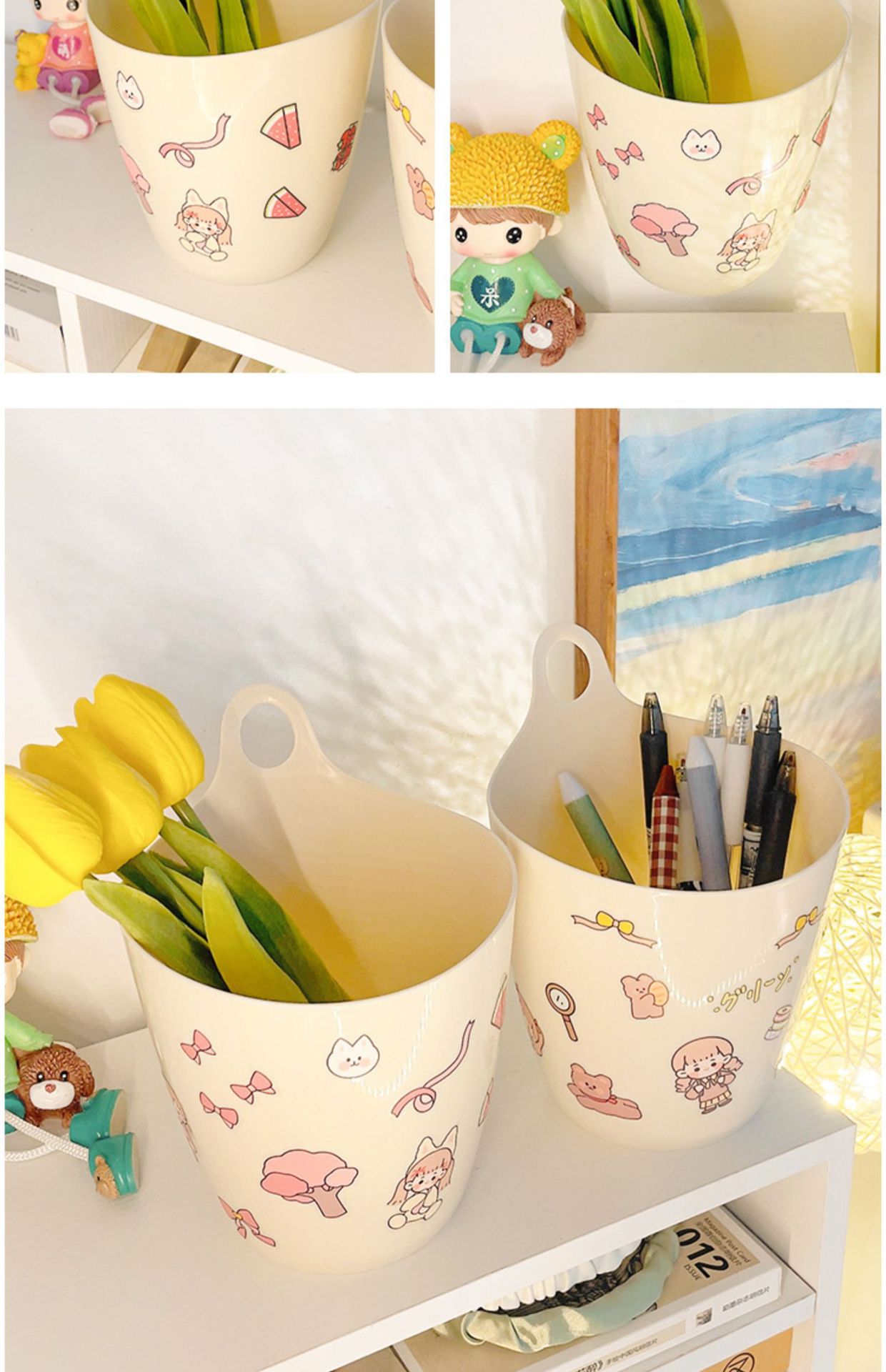 교수형 쓰레기통 미니 스몰 사이즈 저장 배럴 벽걸이 저장 상자 학생 데스크톱 펜 코너