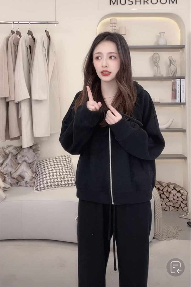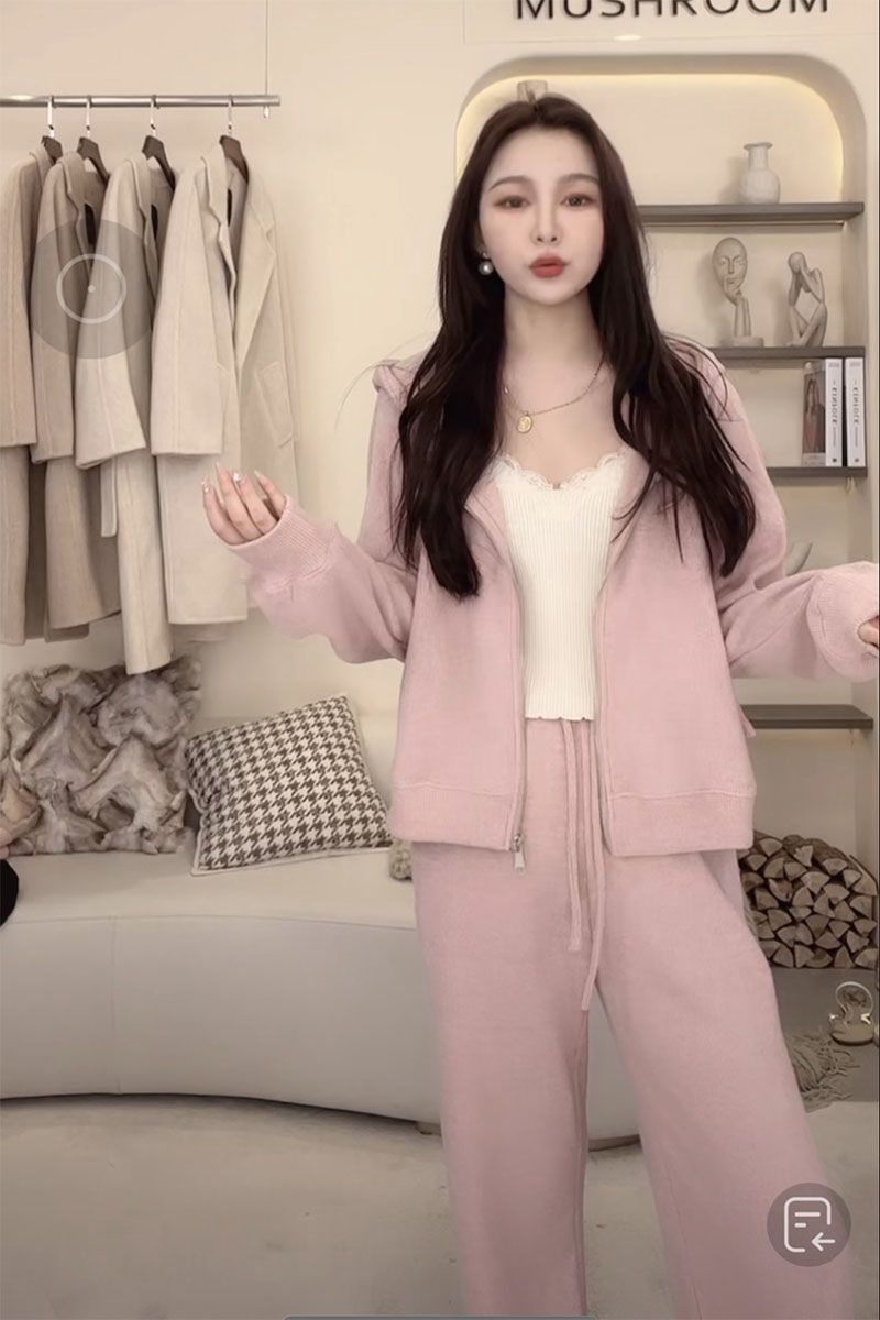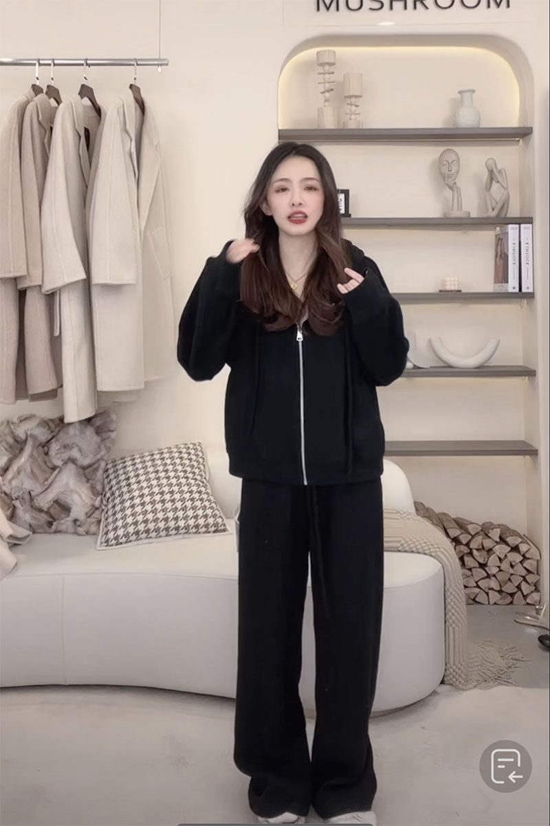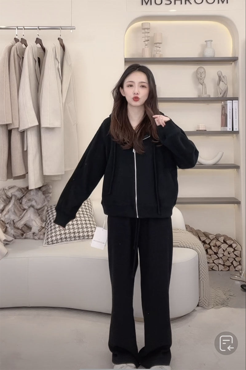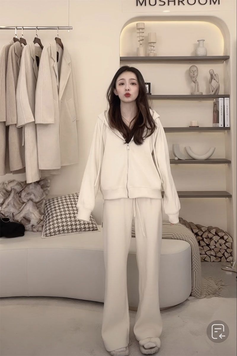 국경 패션 캐주얼 스포츠 세트 여성의 가을 새로운 후드 짧은 긴 소매 스웨트 재킷 와이드 레그 바지 트렌디스토어 가기