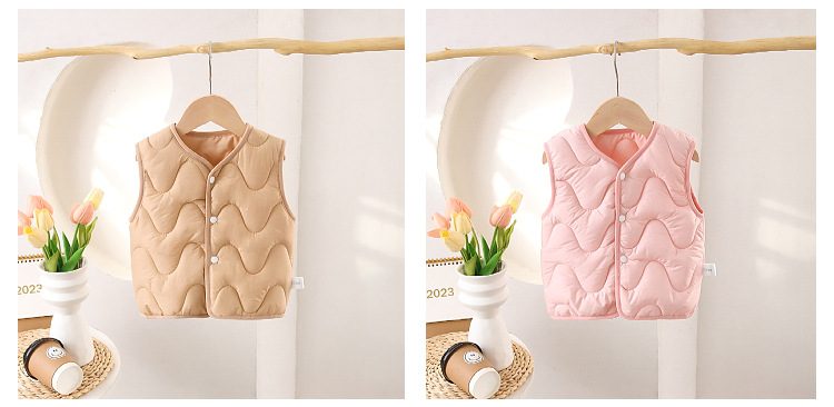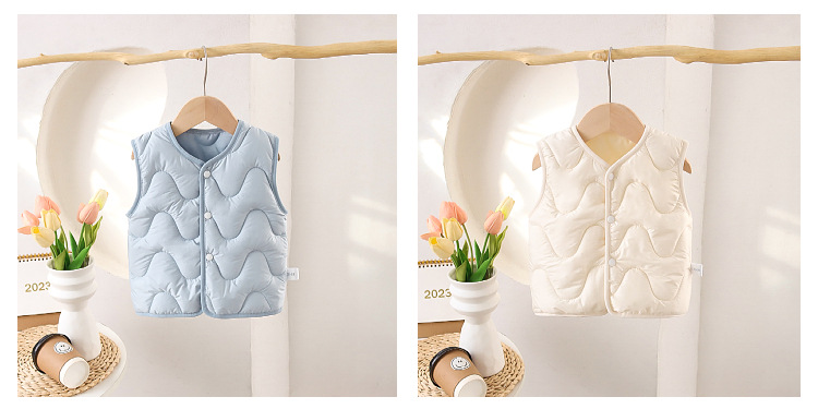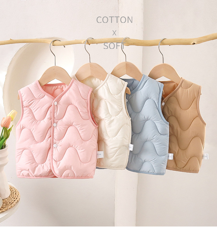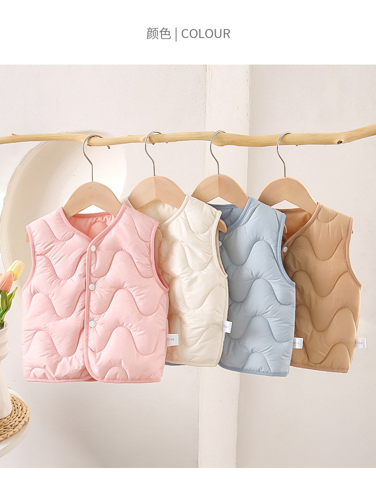 2024년 신상 물결무늬 누빔 조끼 남녀 아기 가을 겨울용 외출 조끼 남녀 아기 외출 조끼스토어 가기