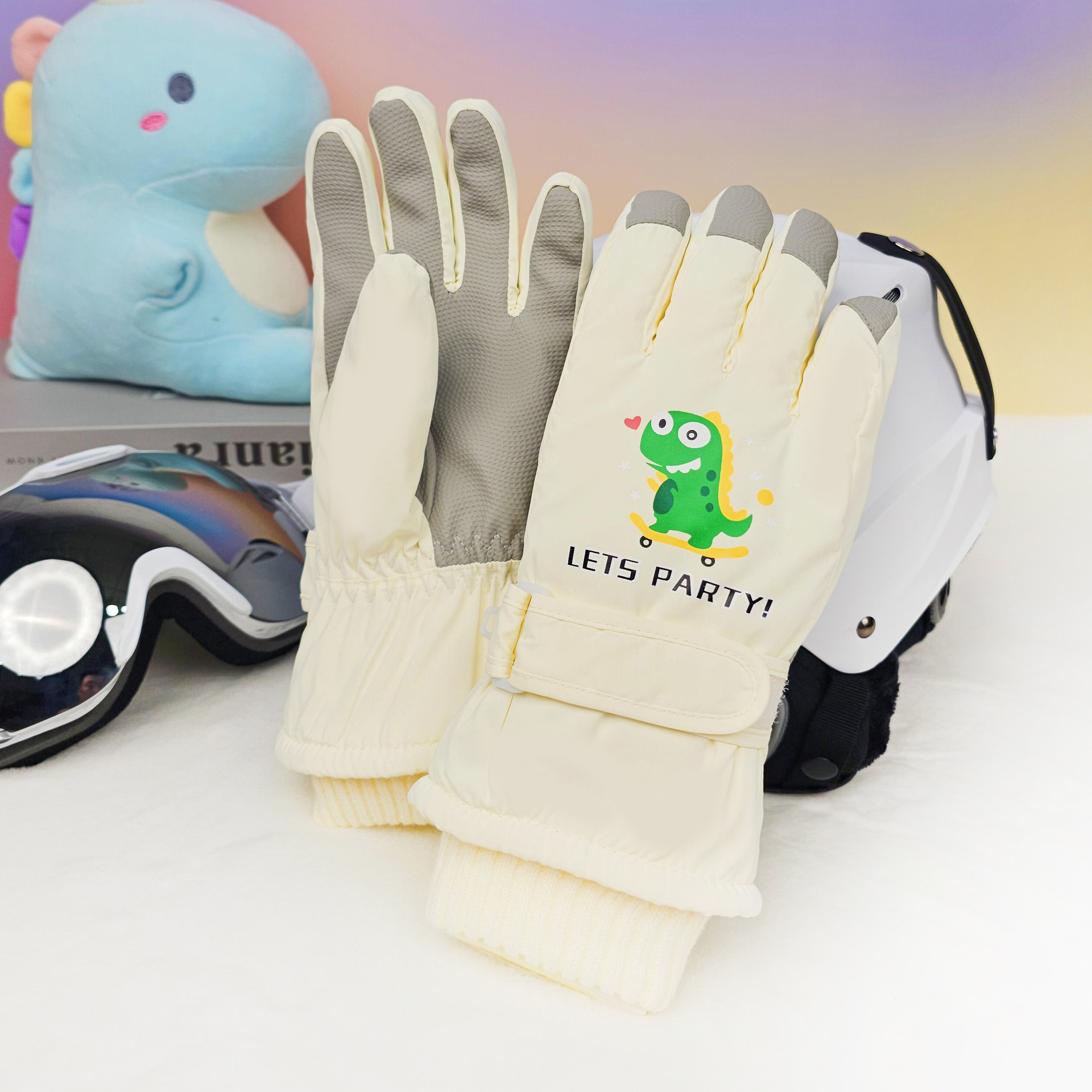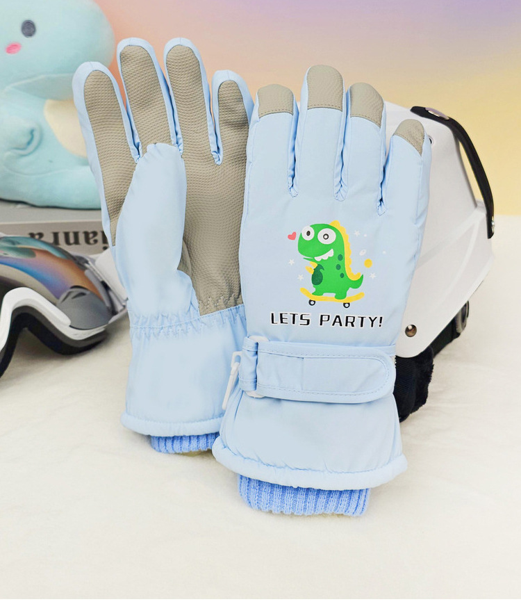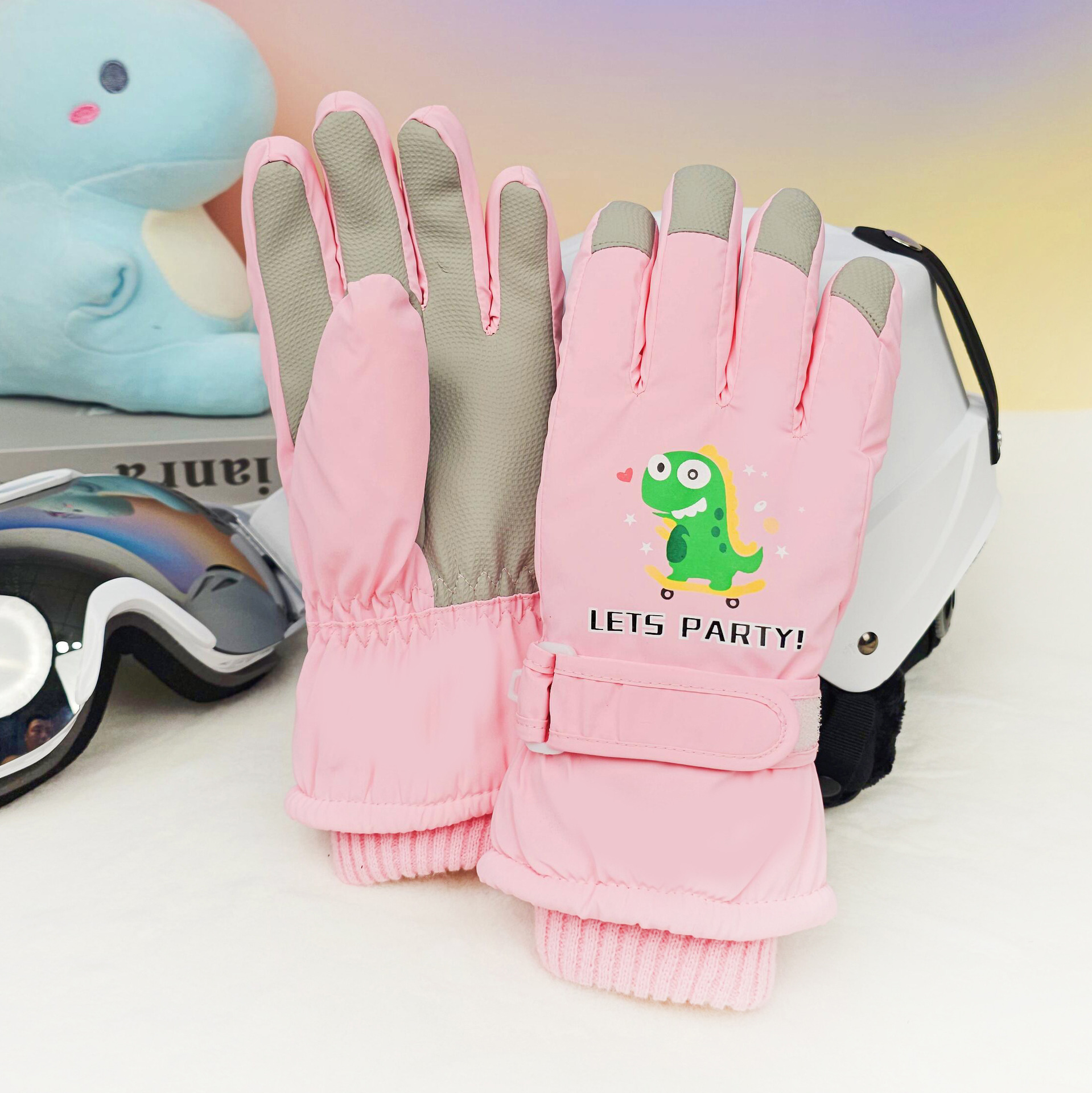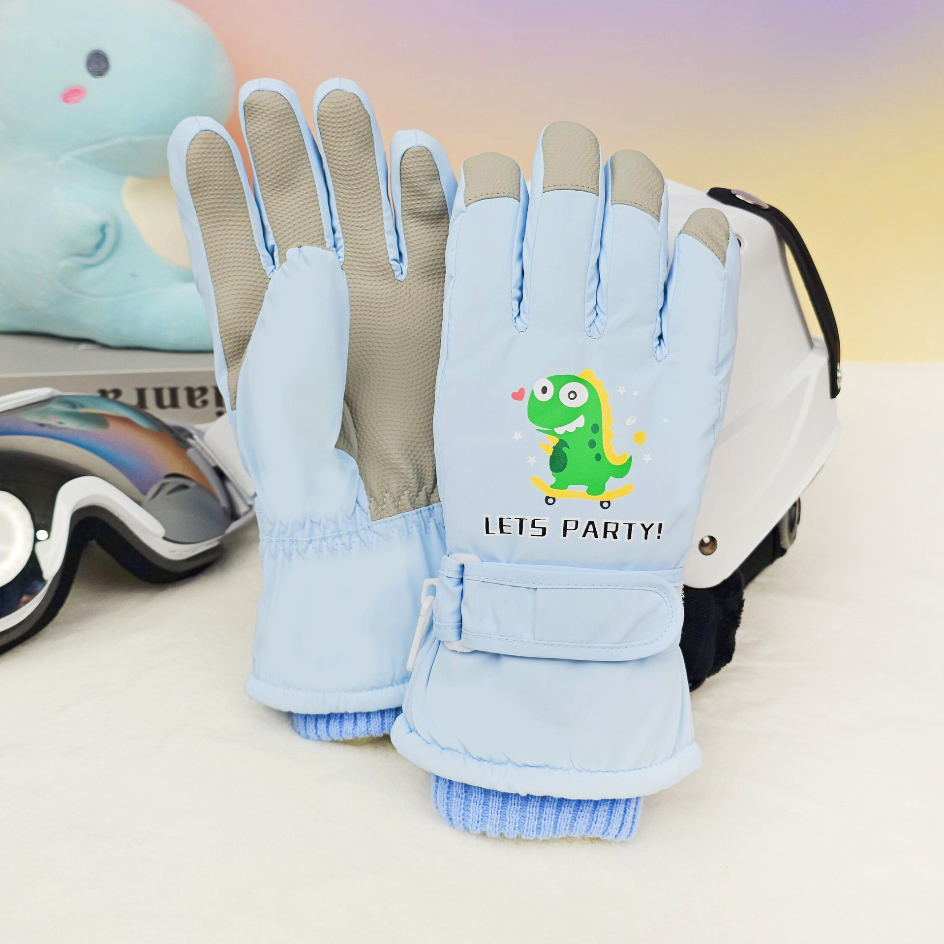 스키 장갑 어린이 겨울 방수 따뜻한 승마 자전거 5 손가락 비 슬립 만화 겨울 눈 초등 학생들을위한 놀이