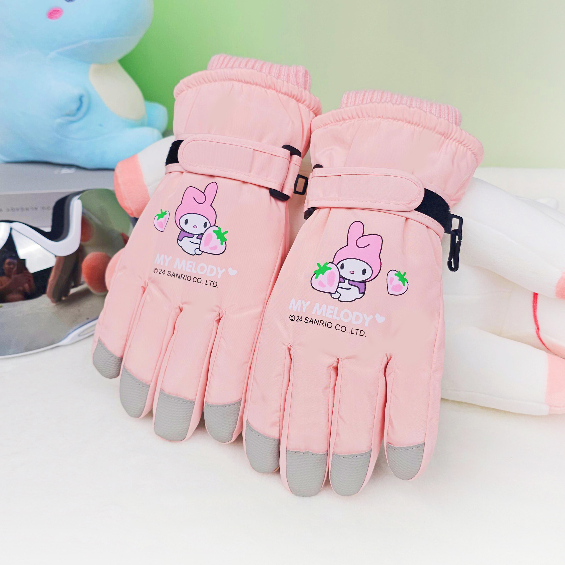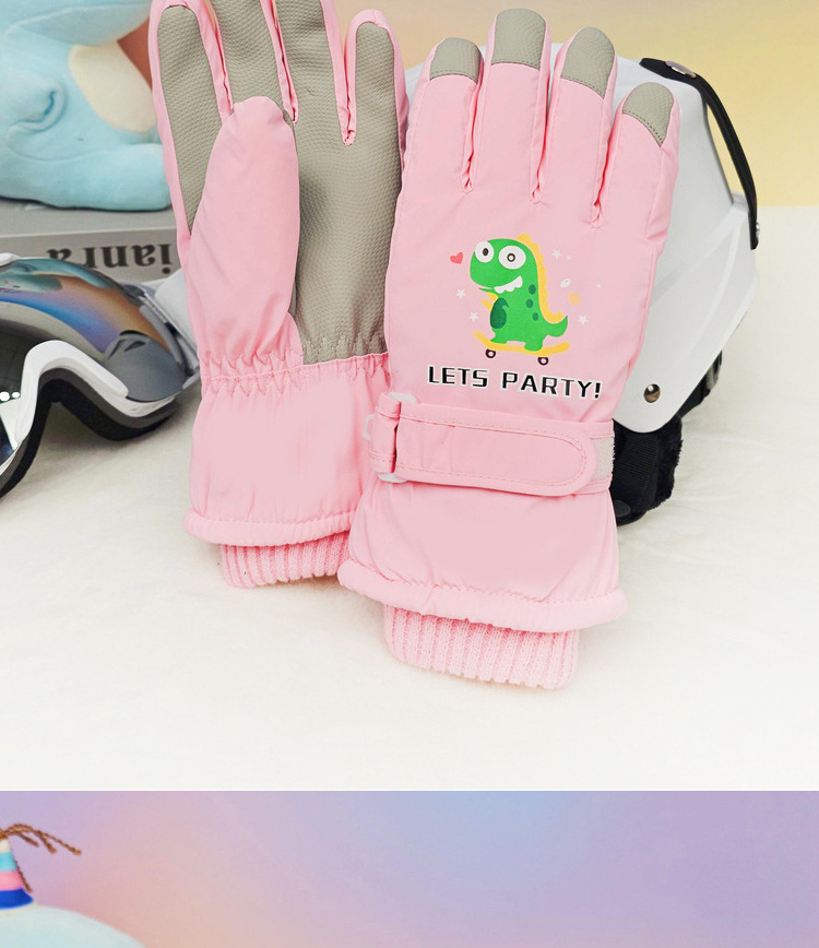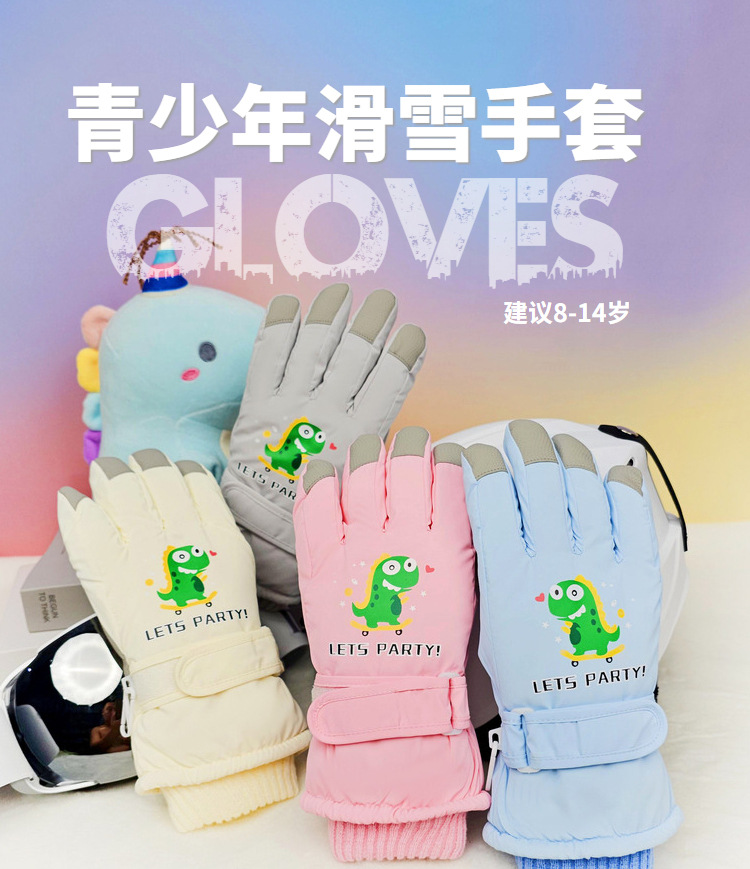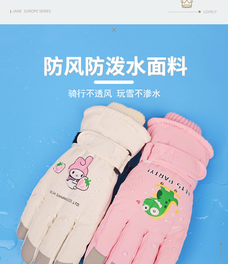 스키 장갑 어린이 겨울 방수 따뜻한 승마 자전거 5 손가락 비 슬립 만화 겨울 눈 초등 학생들을위한 놀이