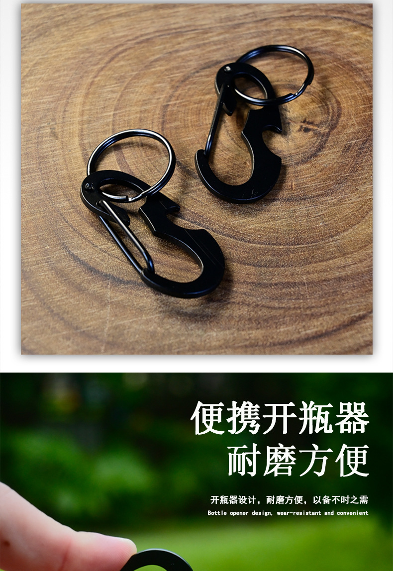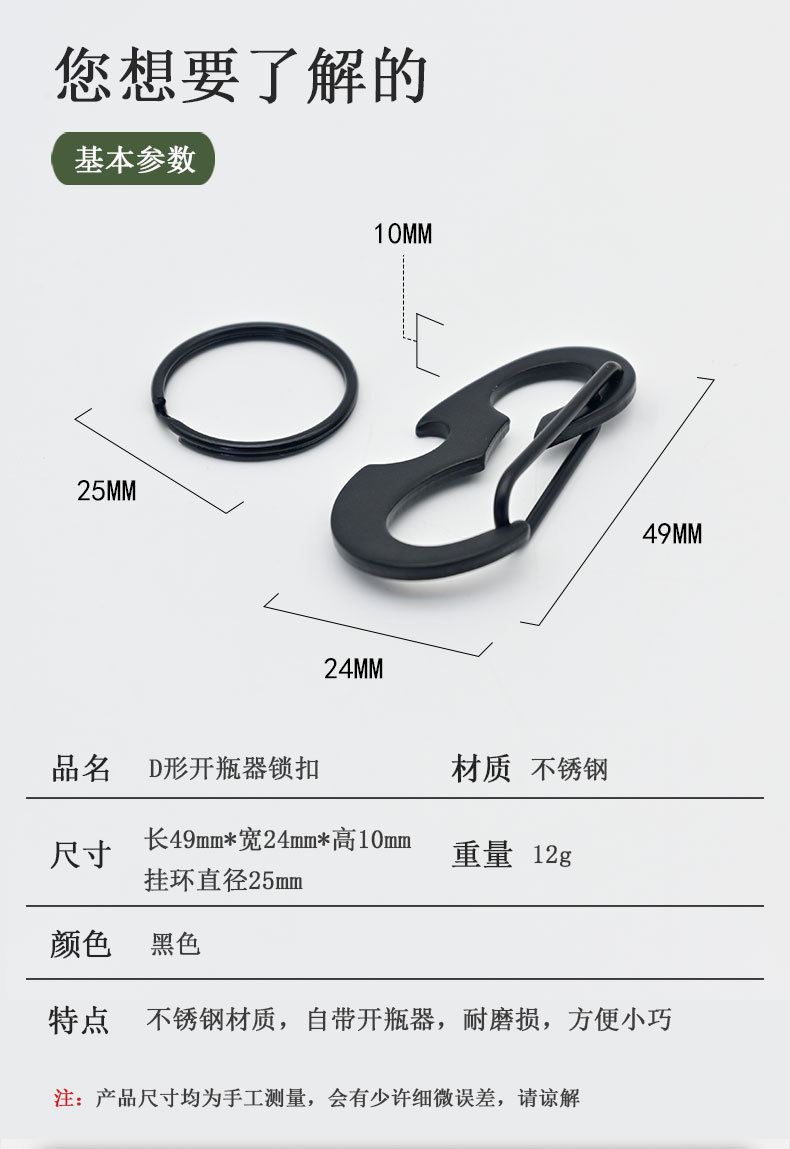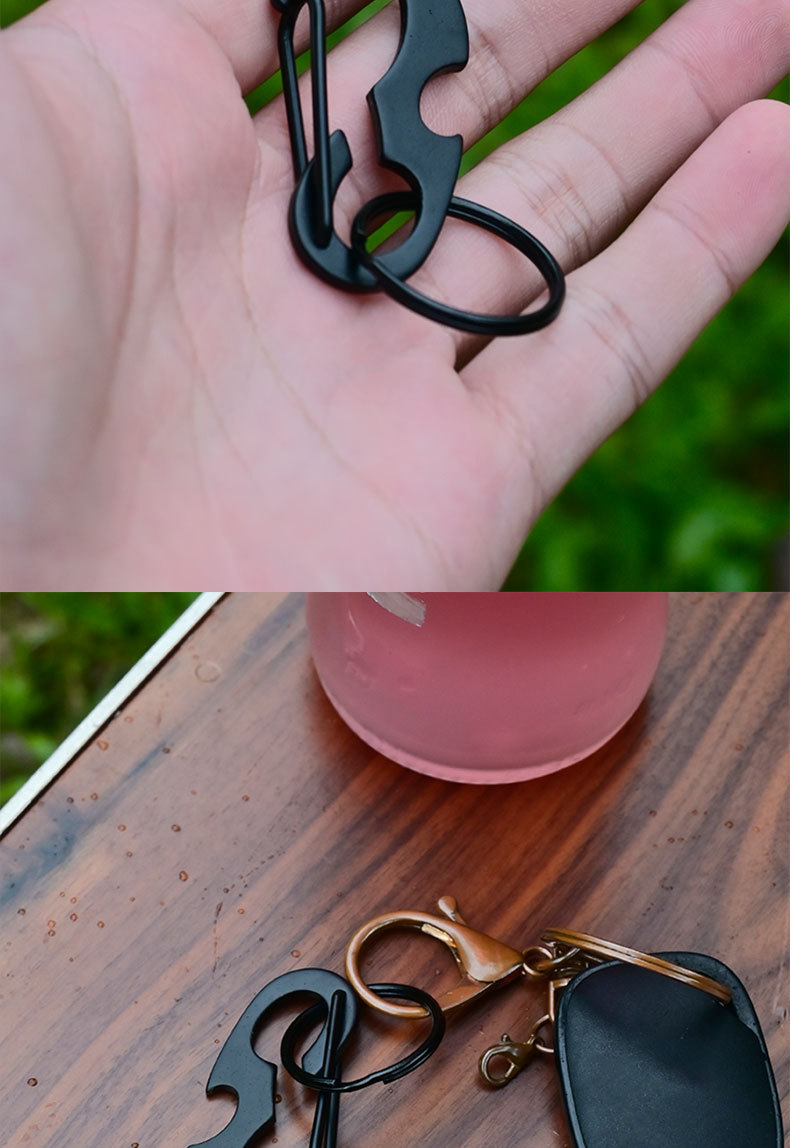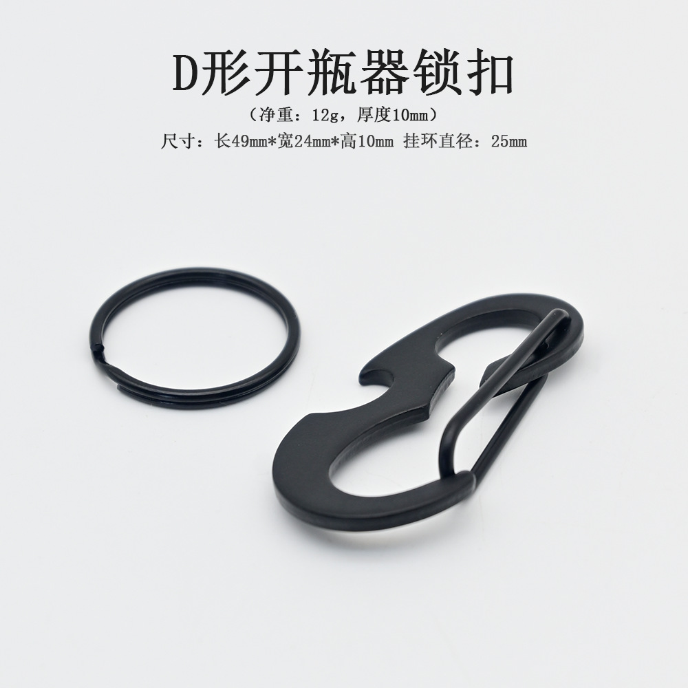 야외 등산 버클 D 자형 버클 스테인레스 스틸 금속 매달린 버클 다기능 병따개 봄 후크 블랙 딱정벌레 키 체인