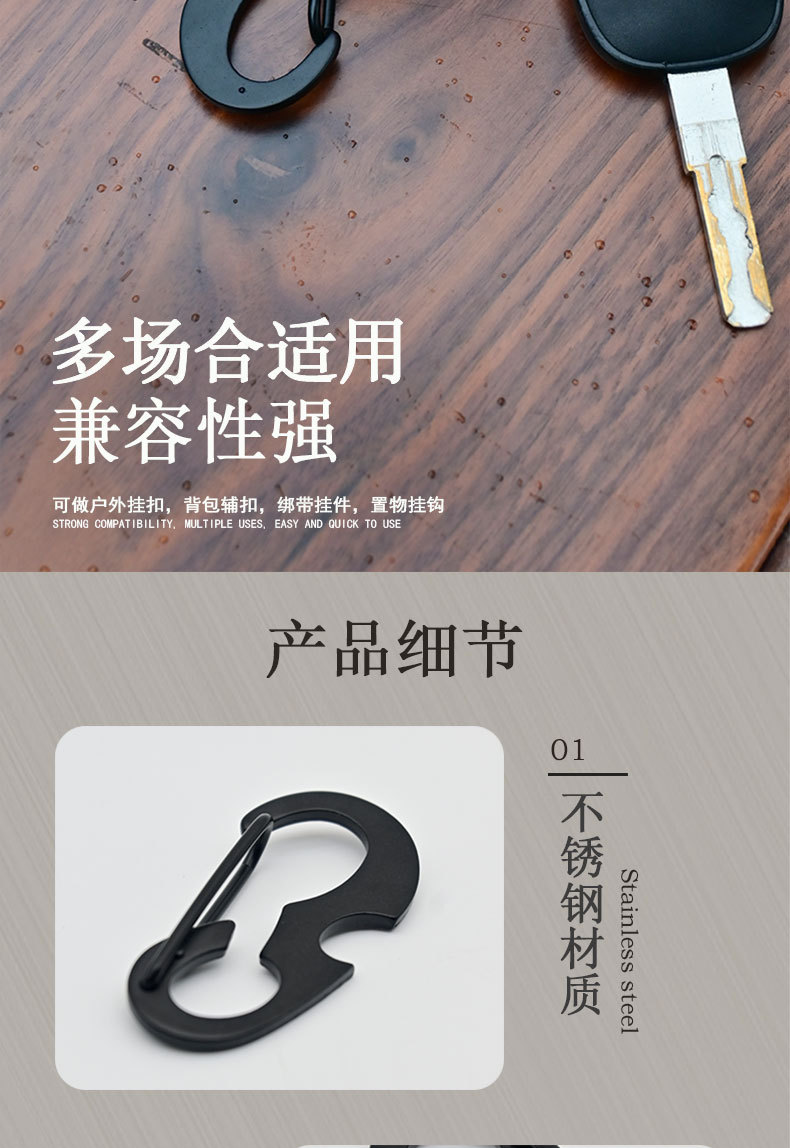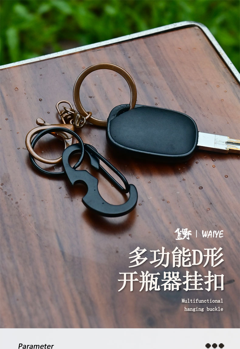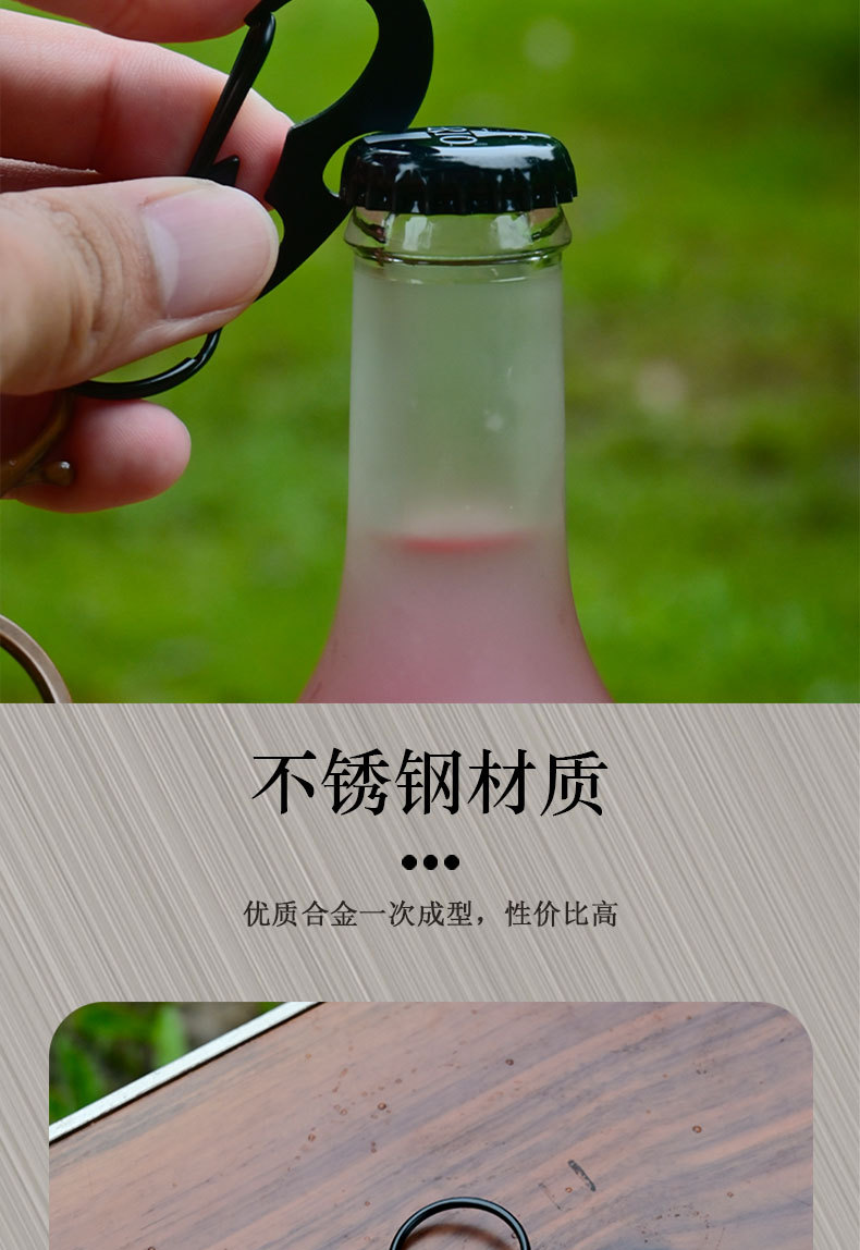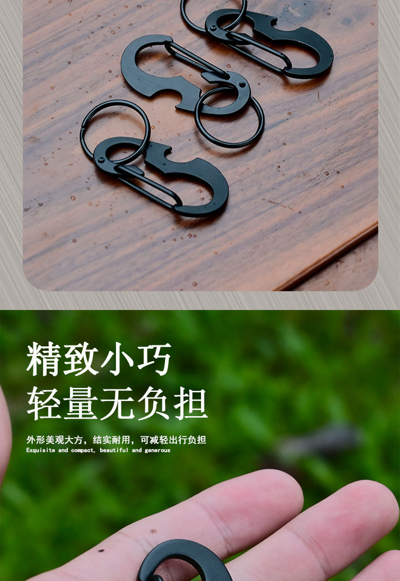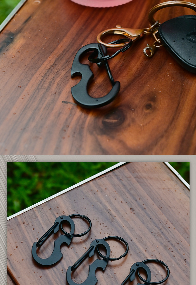 야외 등산 버클 D 자형 버클 스테인레스 스틸 금속 매달린 버클 다기능 병따개 봄 후크 블랙 딱정벌레 키 체인