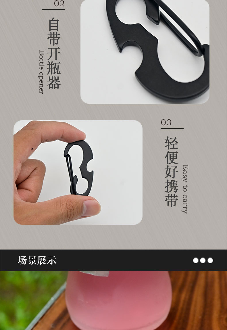 야외 등산 버클 D 자형 버클 스테인레스 스틸 금속 매달린 버클 다기능 병따개 봄 후크 블랙 딱정벌레 키 체인스토어 가기