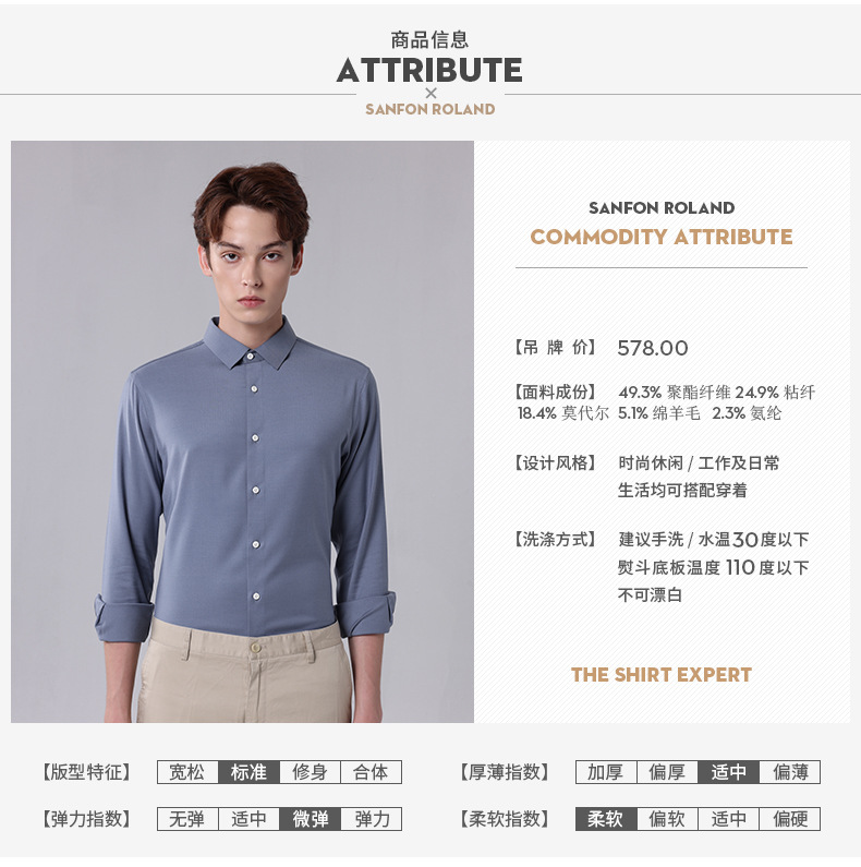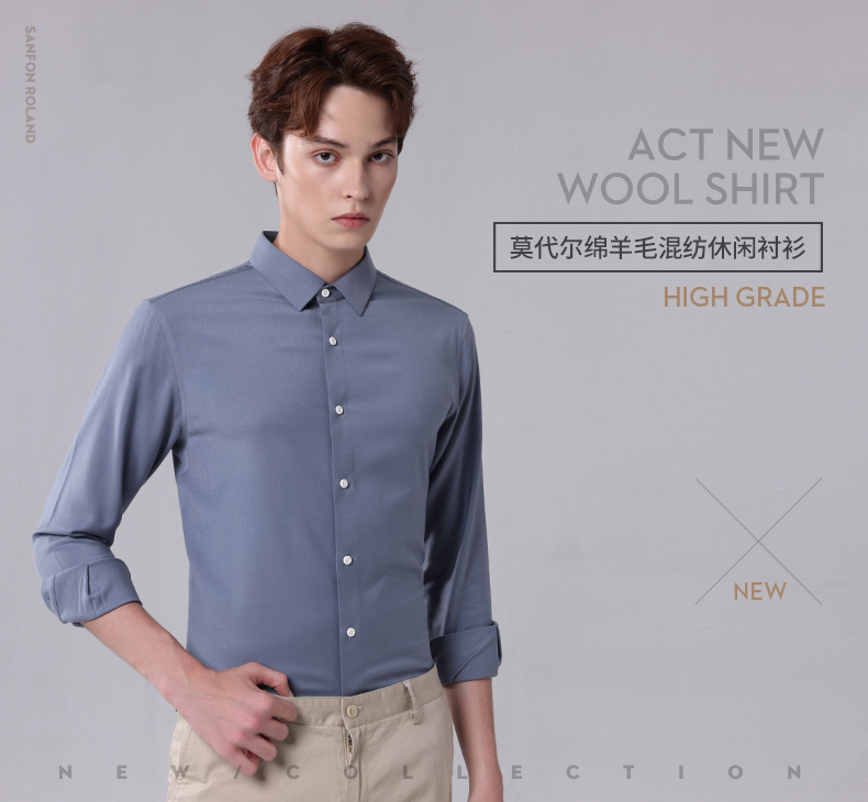 [모달울] 가을 겨울 신작 남성 모달 양털 혼방 셔츠 비즈니스 캐주얼 솔리드 컬러 안감