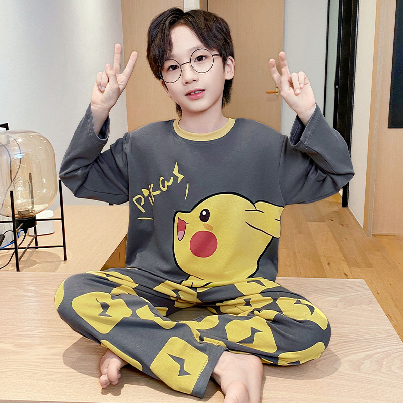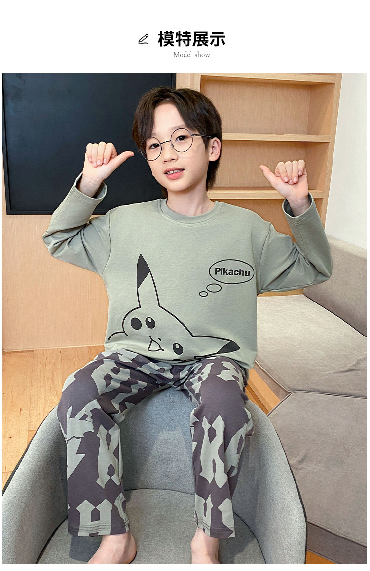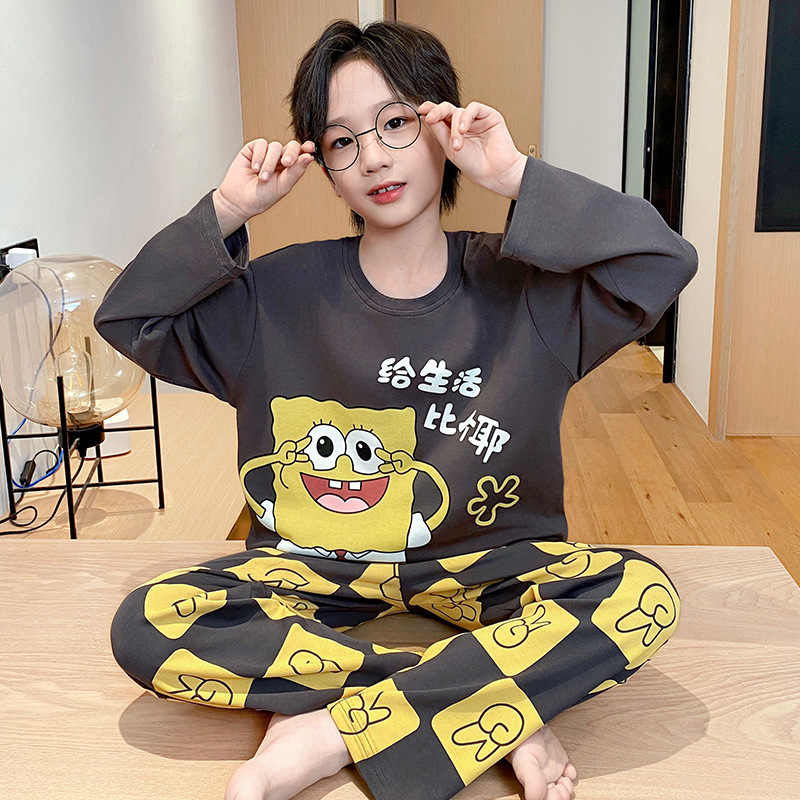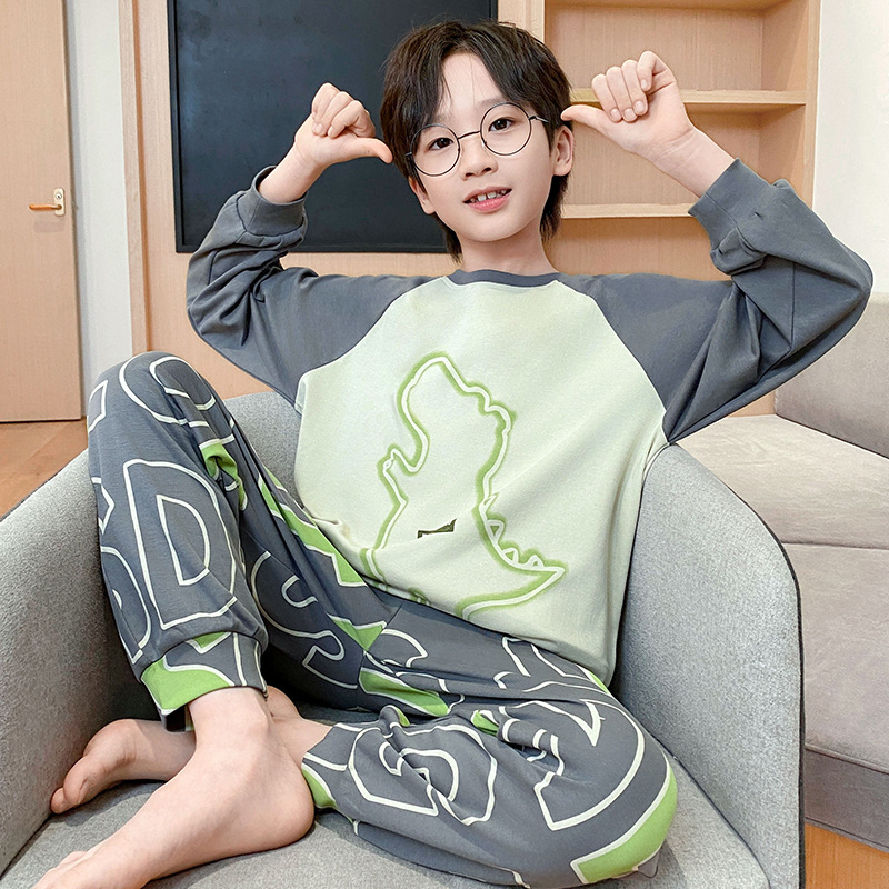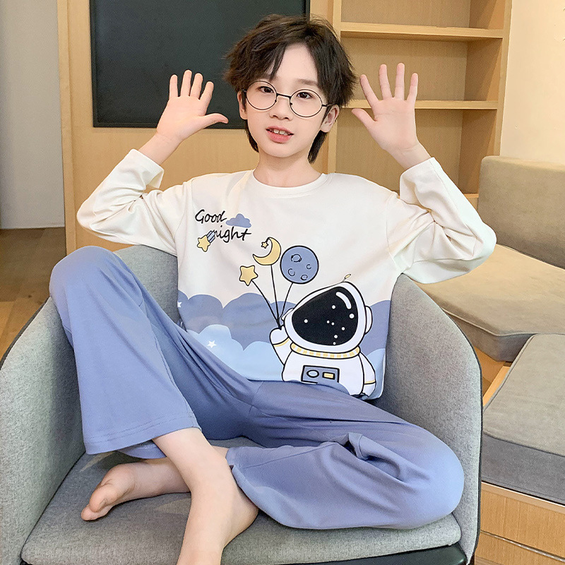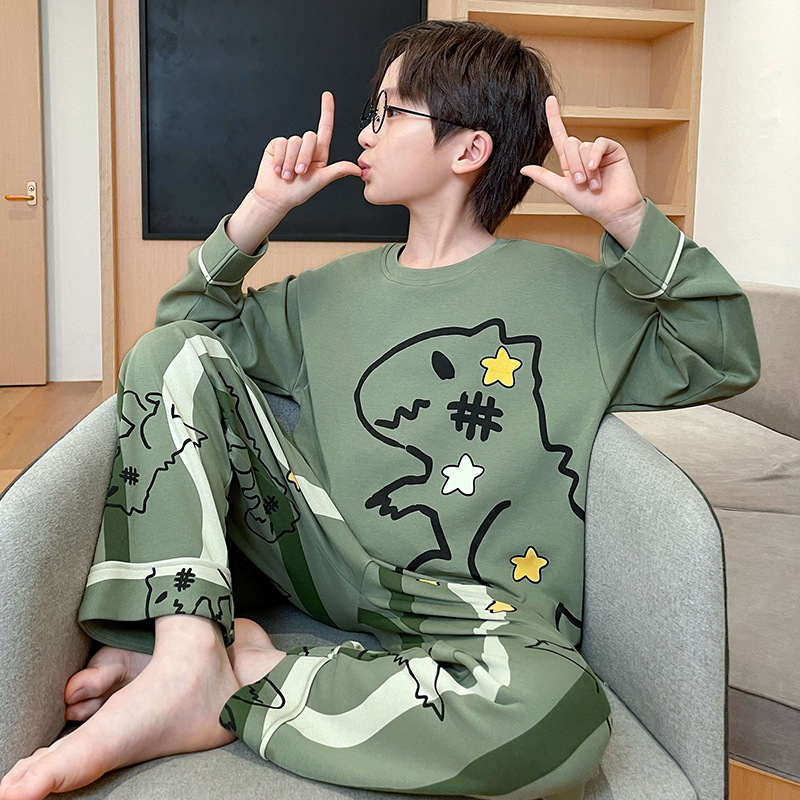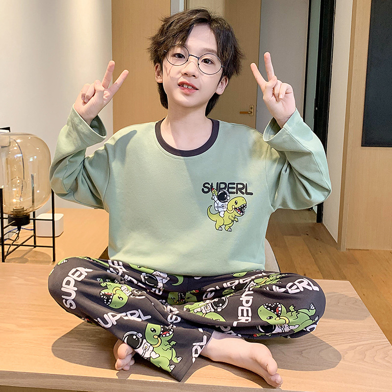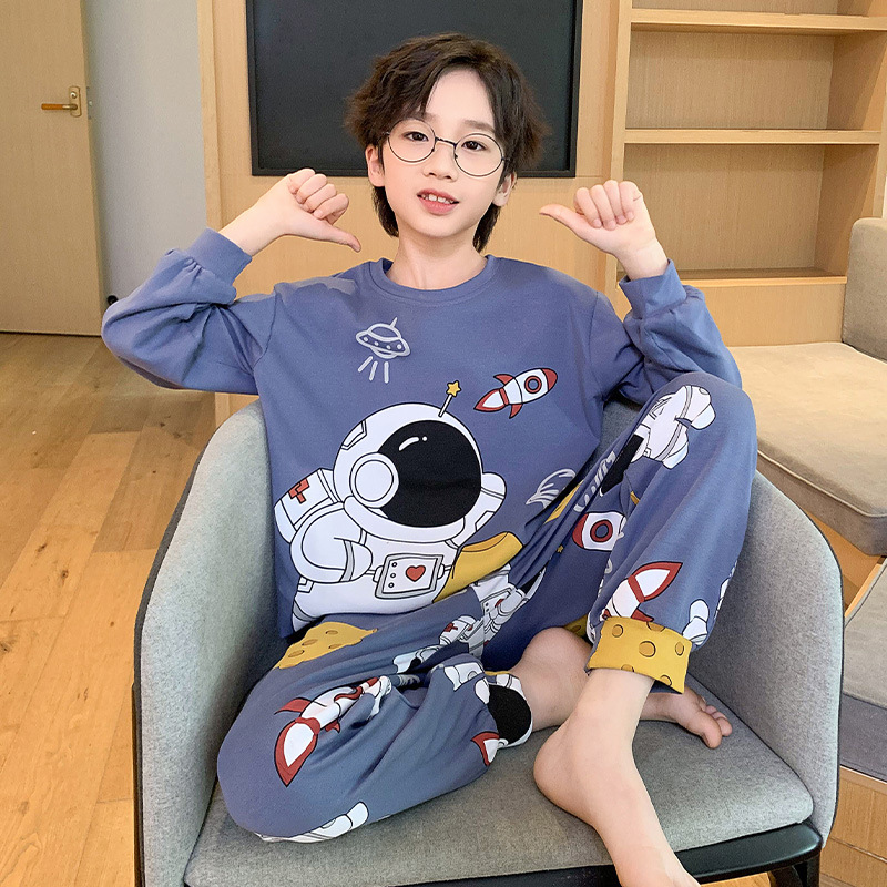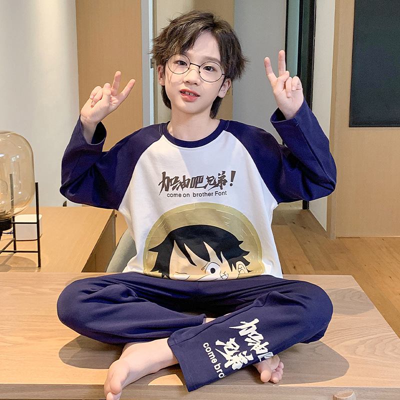 2024 년 새 소년 잠옷 봄과 가을면 긴 소매 어린이 소년 큰 어린이 십대 봄과 여름 가정 옷스토어 가기