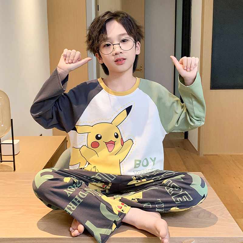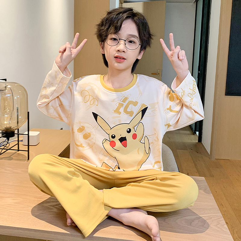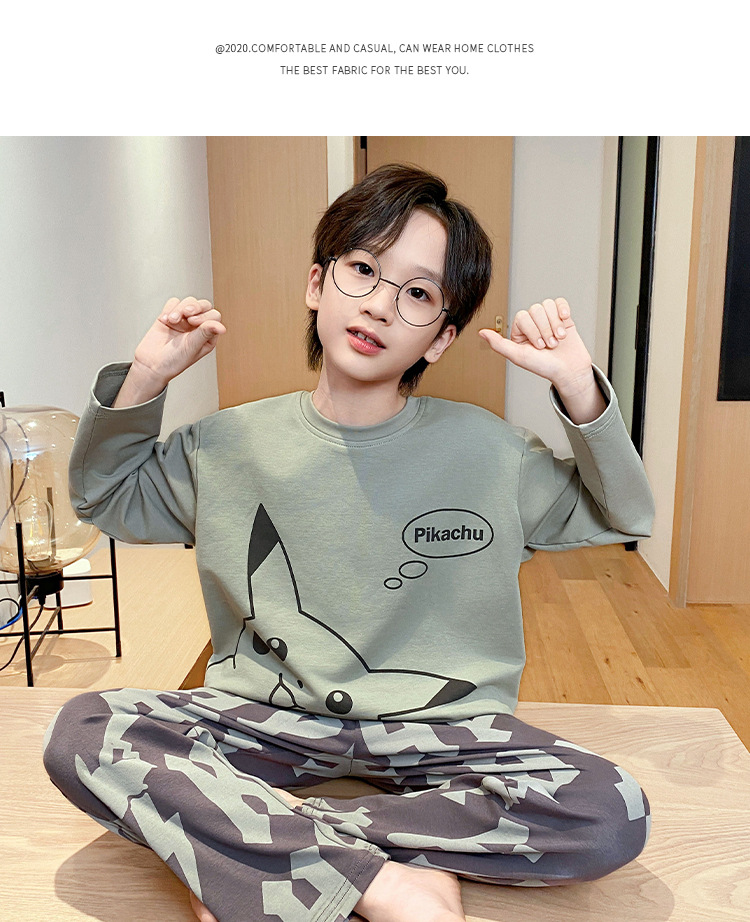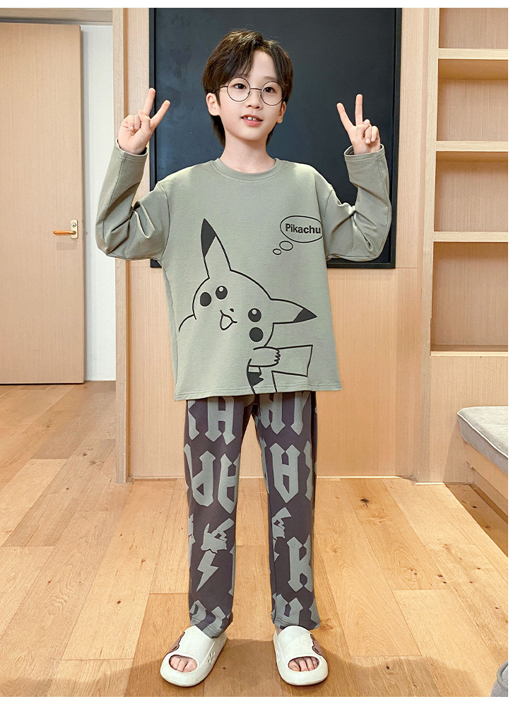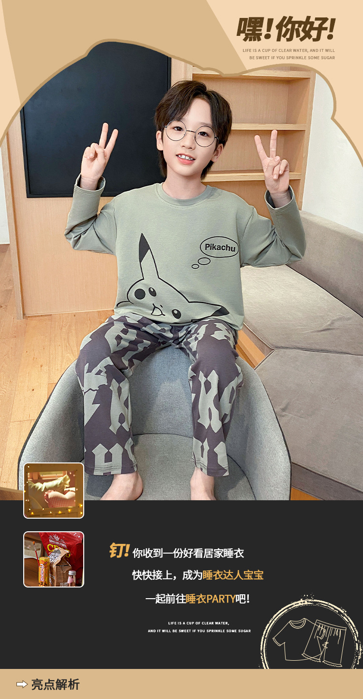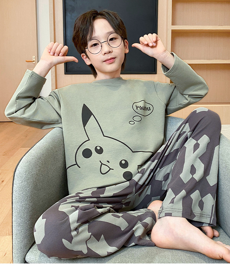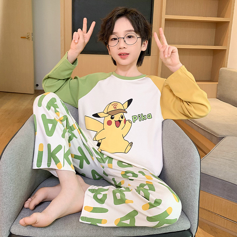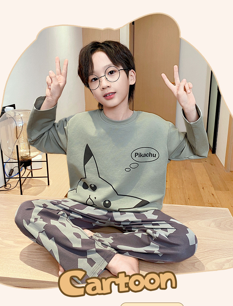 2024 년 새 소년 잠옷 봄과 가을면 긴 소매 어린이 소년 큰 어린이 십대 봄과 여름 가정 옷스토어 가기