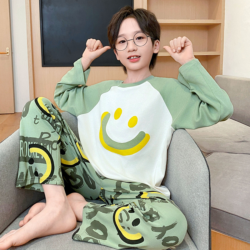 2024 년 새 소년 잠옷 봄과 가을면 긴 소매 어린이 소년 큰 어린이 십대 봄과 여름 가정 옷