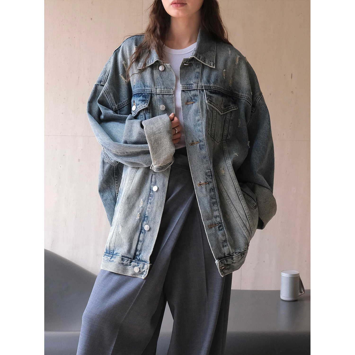 루브르 가을 새로운 파리 빈티지 오래 된 데님 재킷 느슨한 엄밀한 캐주얼 자켓 여성