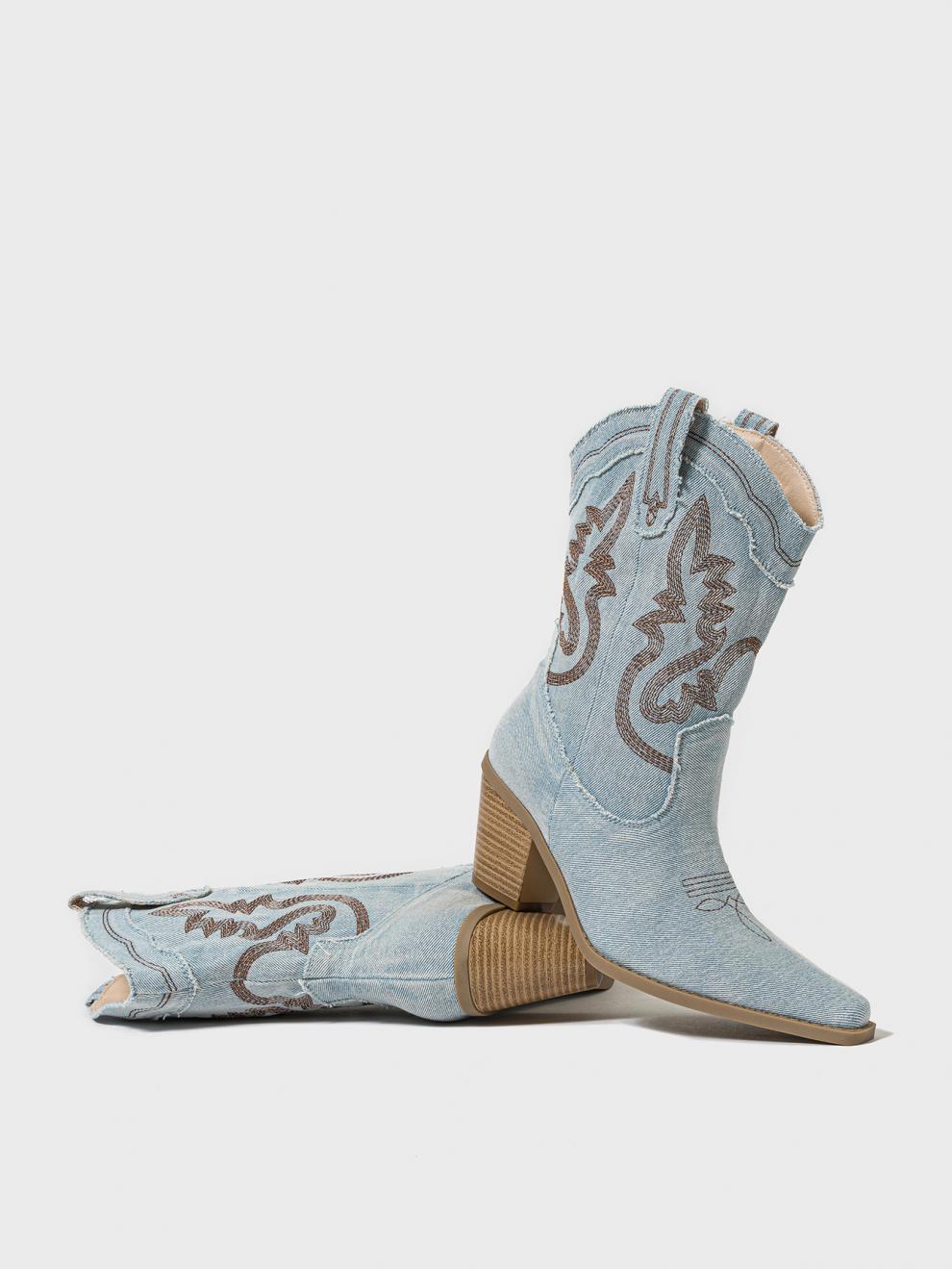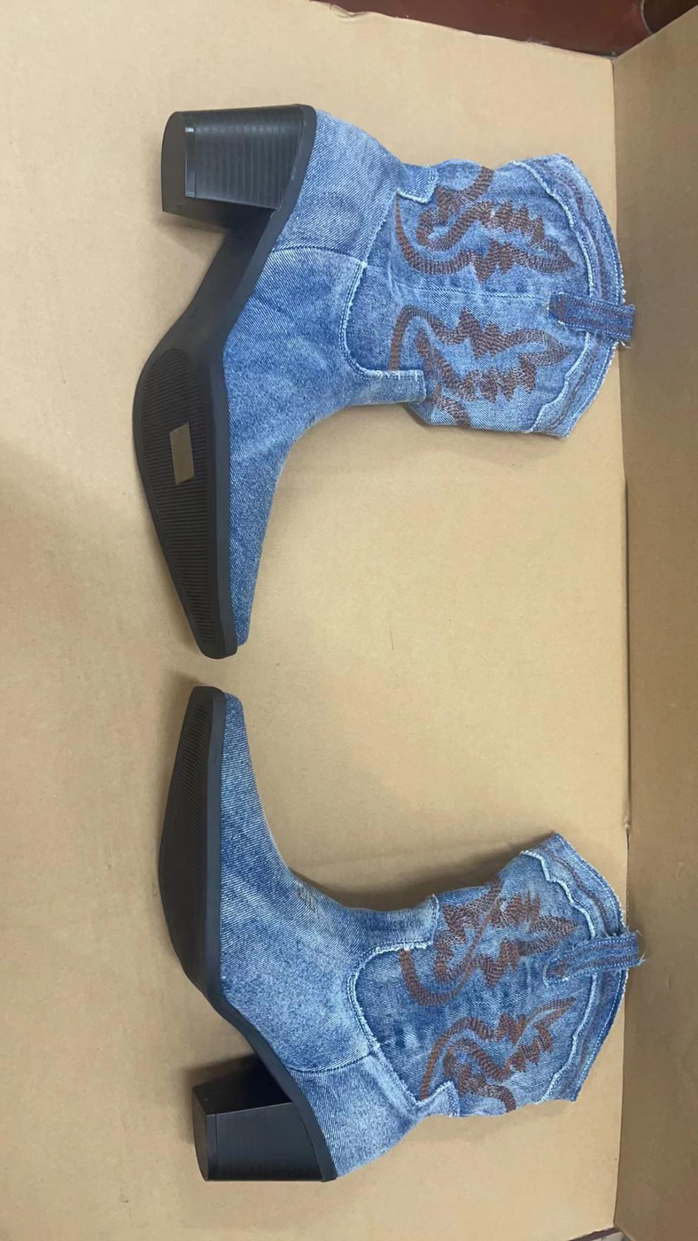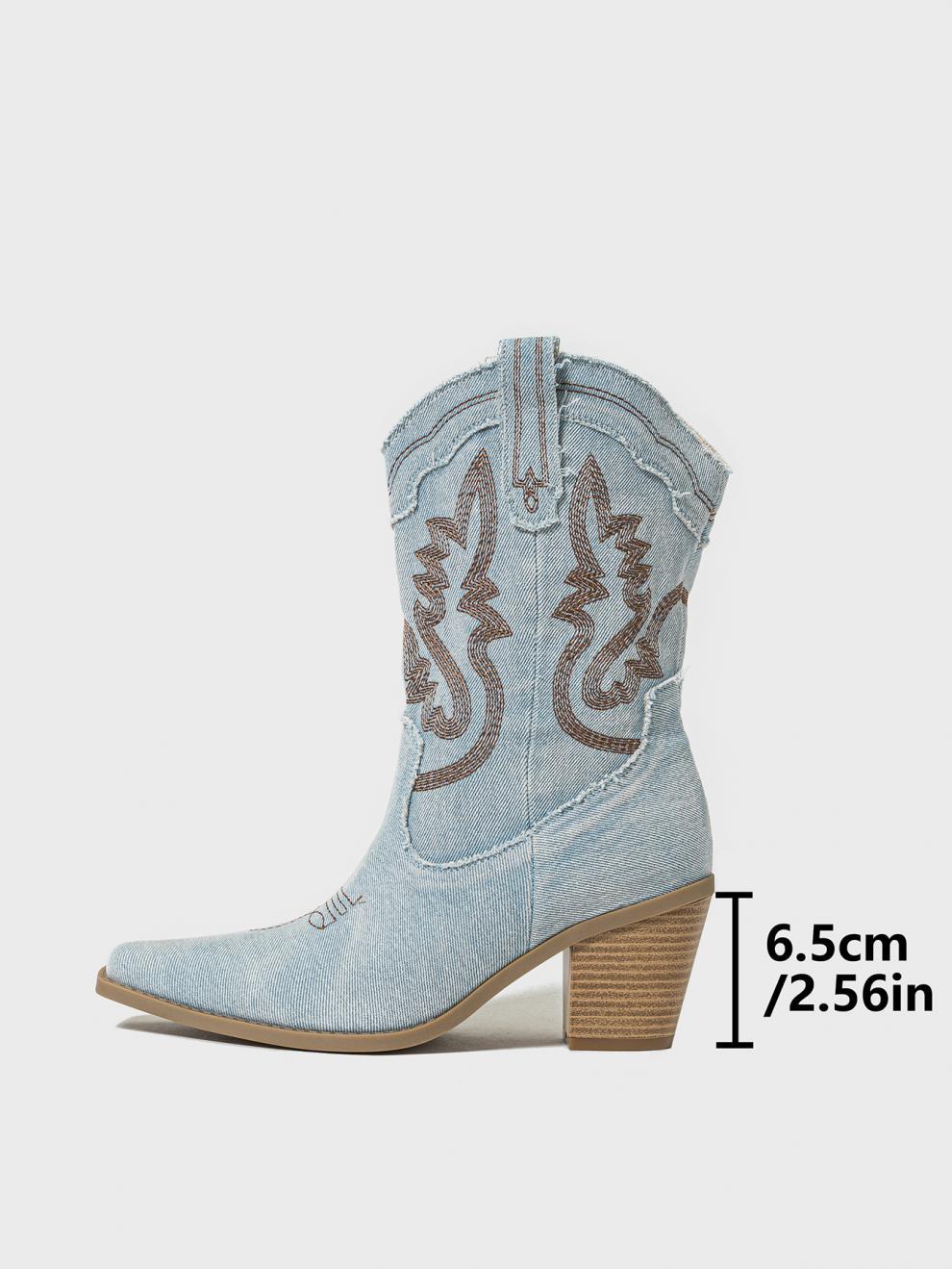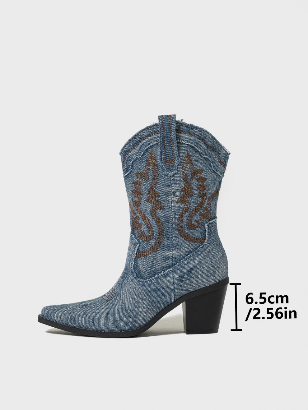 2025 패션 두꺼운 힐 웨스턴 부츠 카우보이 부츠 컬러 대비 뾰족한 플러스 사이즈 발목 부츠스토어 가기