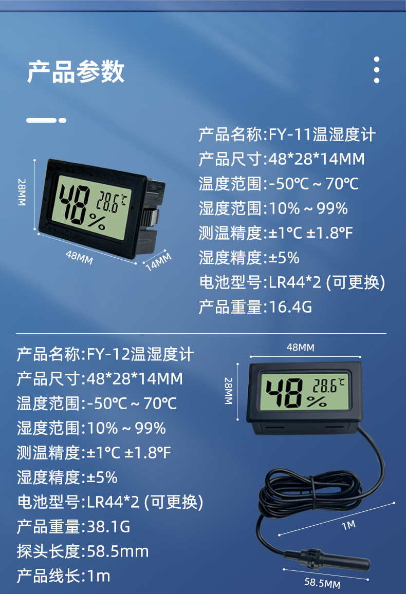 FY-11FY-12 임베디드 온도 및 습도 미터 프로브 온도 및 습도 디스플레이 미터 파충류 애완 동물 온도 및 습도 측정기스토어 가기