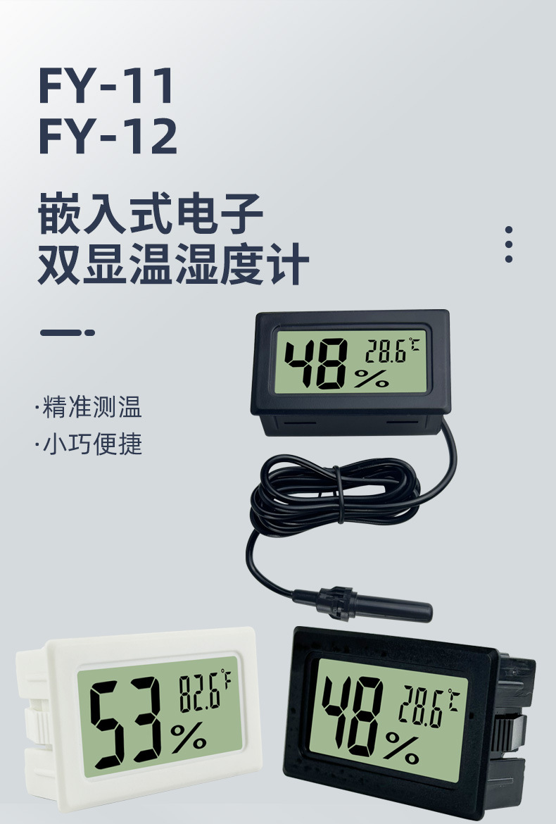 FY-11FY-12 임베디드 온도 및 습도 미터 프로브 온도 및 습도 디스플레이 미터 파충류 애완 동물 온도 및 습도 측정기