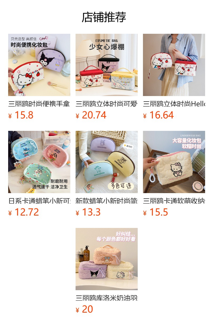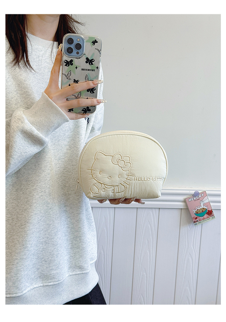 산리오 패션 간단한 핸드 쉘 화장품 가방 대용량 높은 미용 가치 헬로 키티 다운 화장품 가방스토어 가기