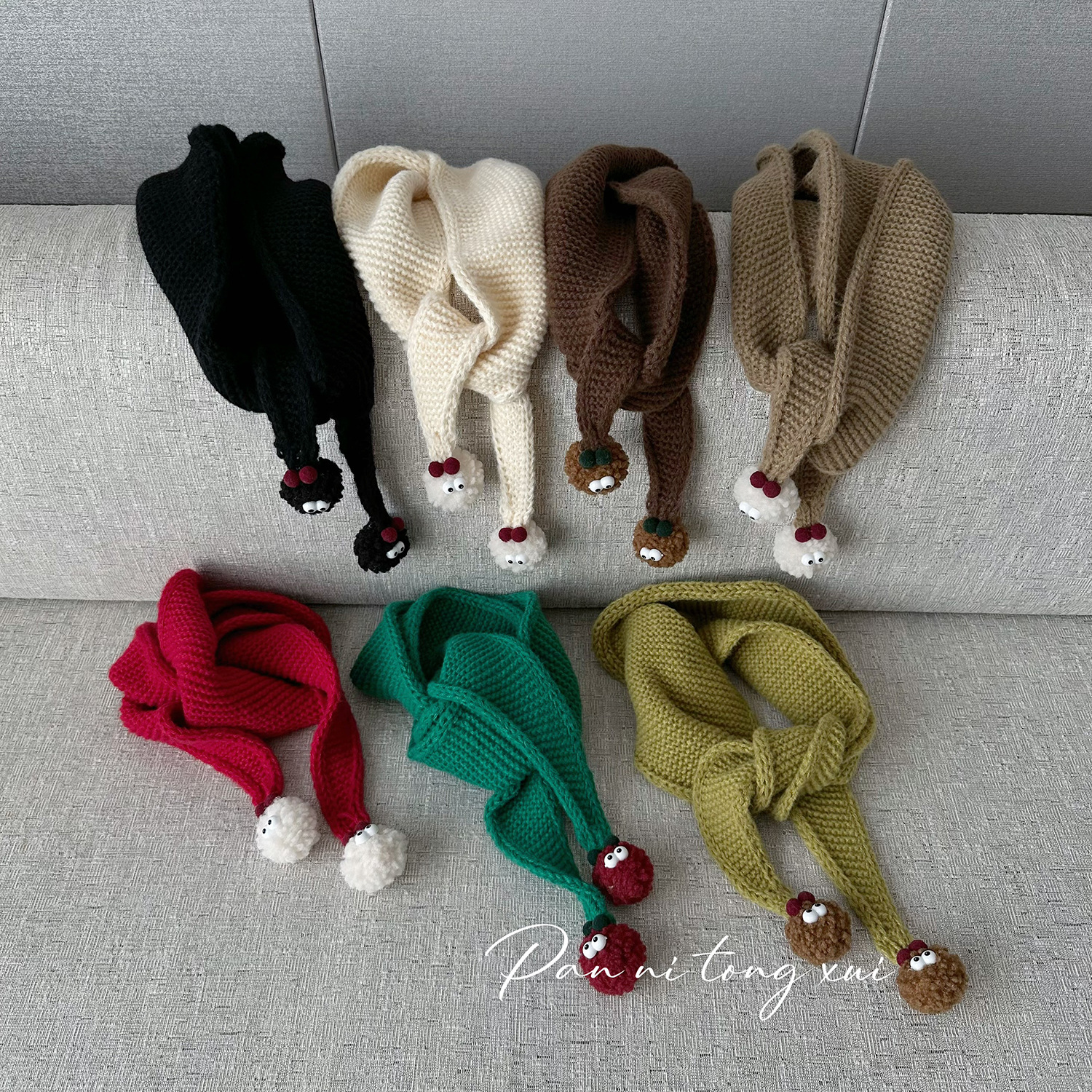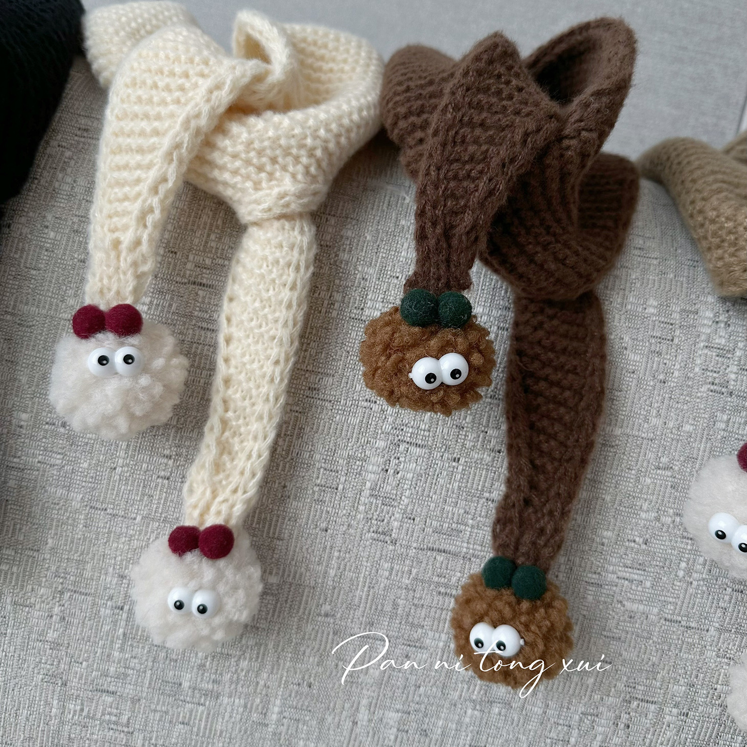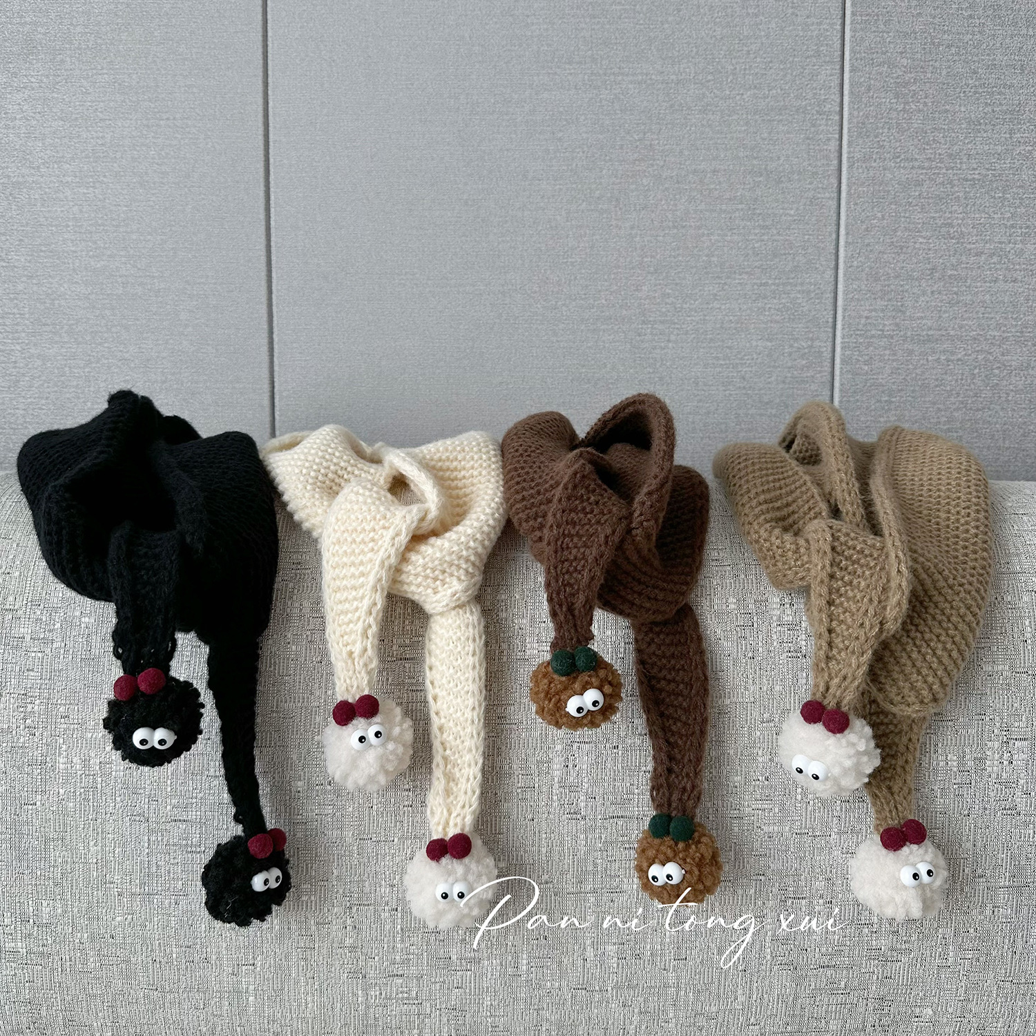 어린이 트라이앵글 울 스카프 가을과 겨울 새로운 귀여운 모피 공 겨울 소년 소녀를위한 따뜻한 니트 스카프스토어 가기