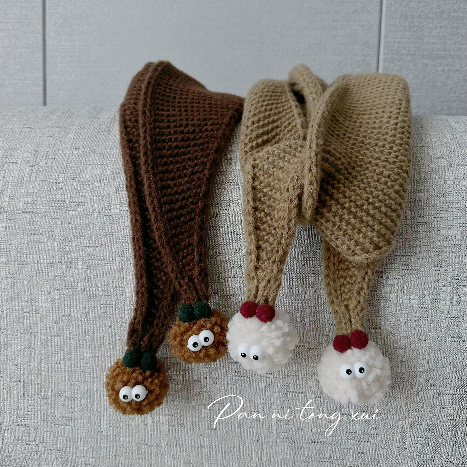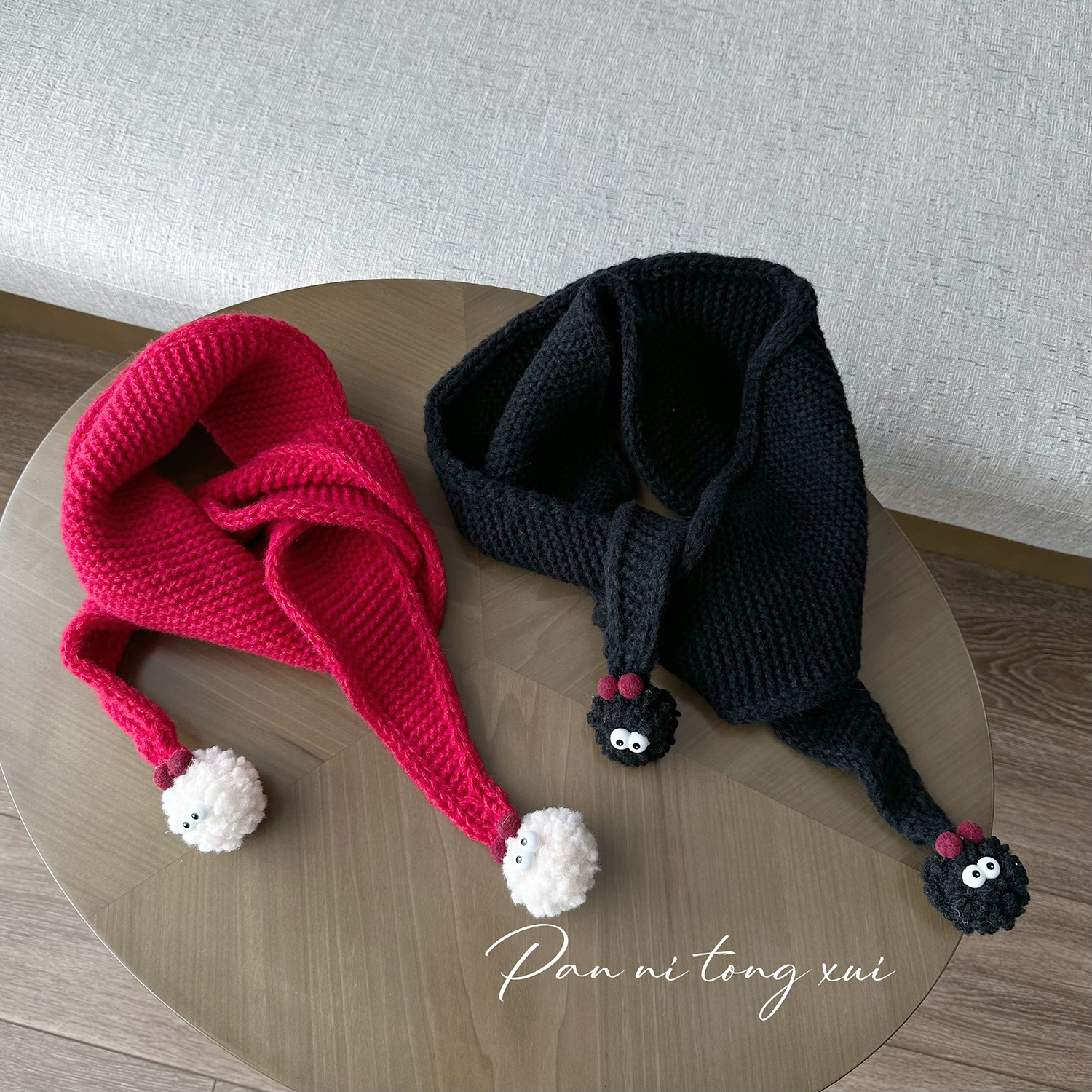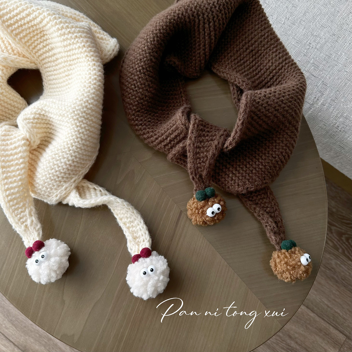어린이 트라이앵글 울 스카프 가을과 겨울 새로운 귀여운 모피 공 겨울 소년 소녀를위한 따뜻한 니트 스카프스토어 가기