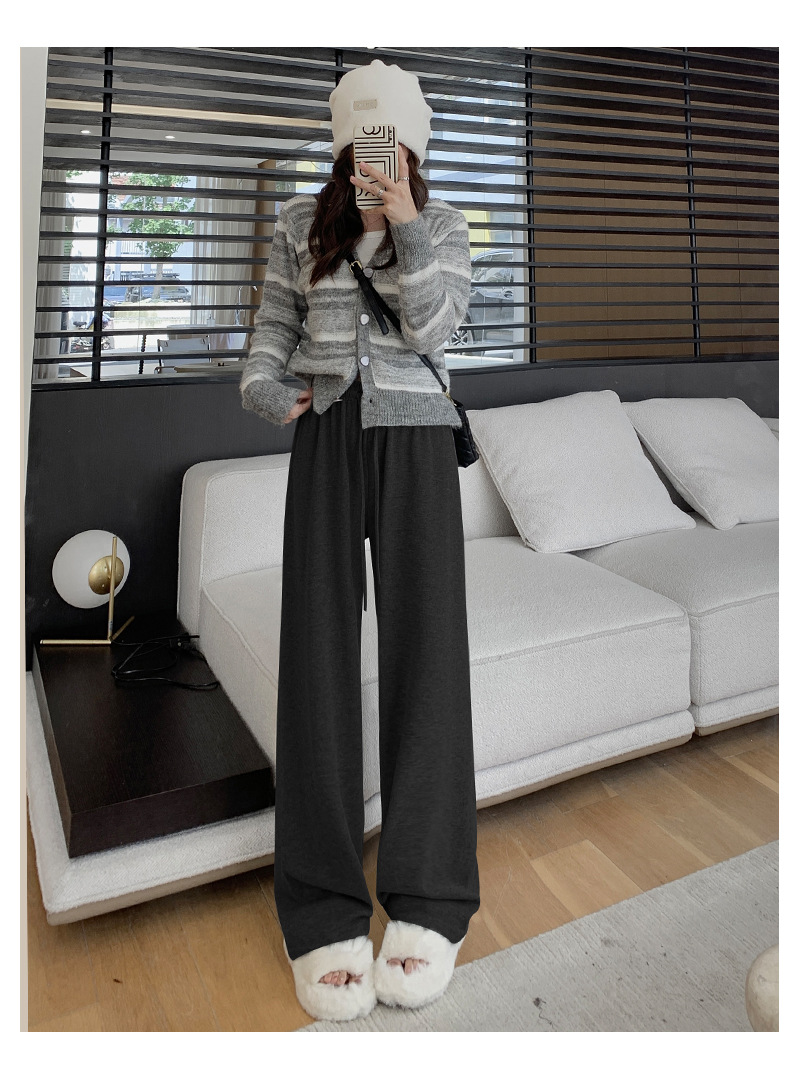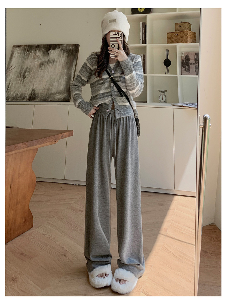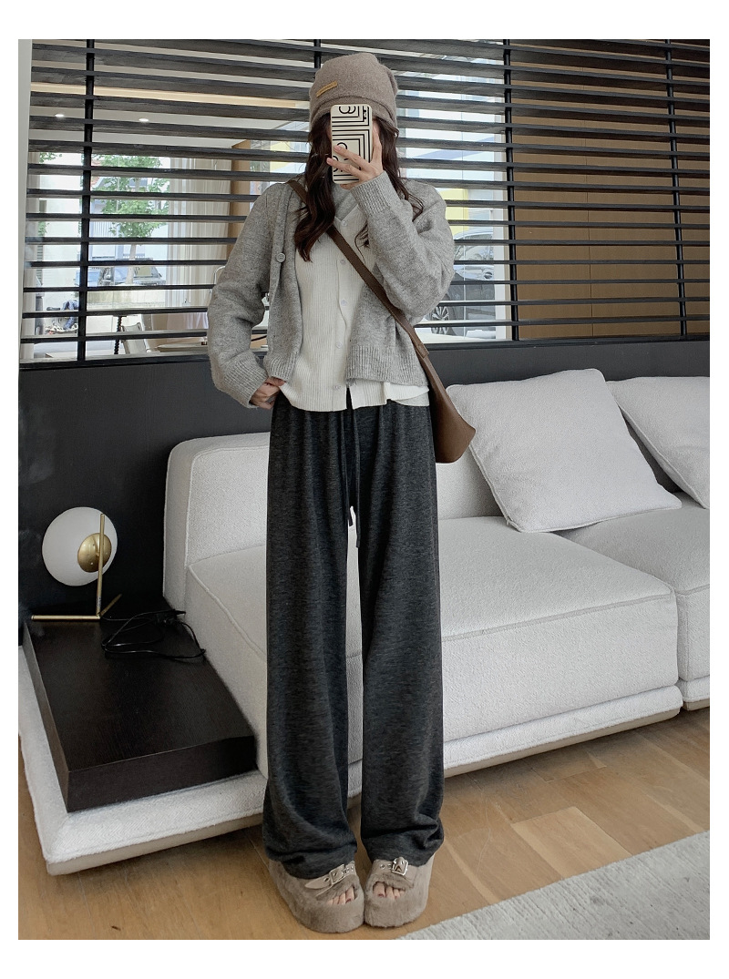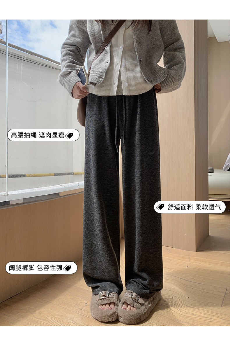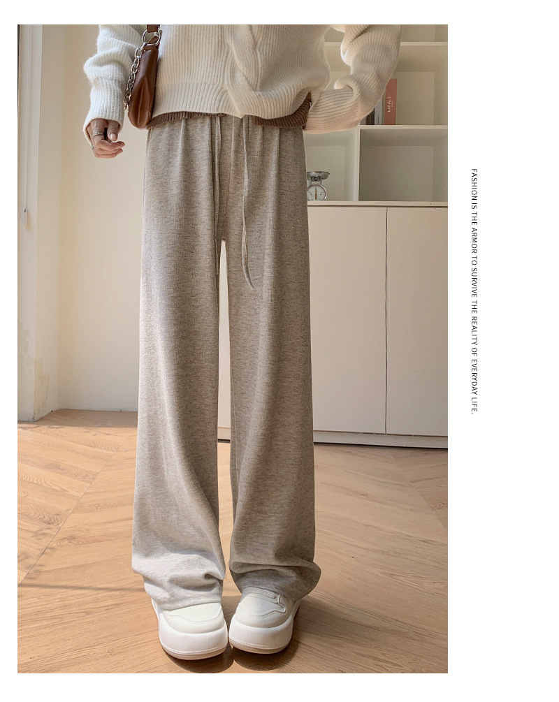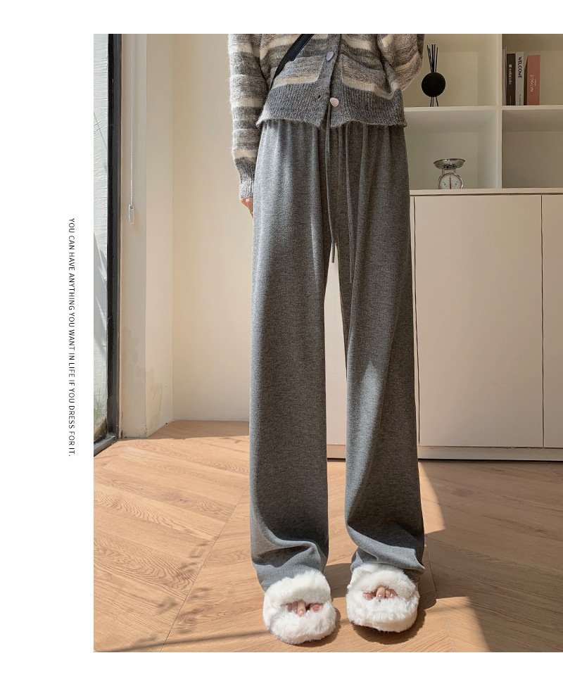 뜨거운 회색 넓은 다리 바지 여자 가을 새로운 높은 허리 대두 캐주얼 올매치 게으른 니트 찹쌀 바지스토어 가기