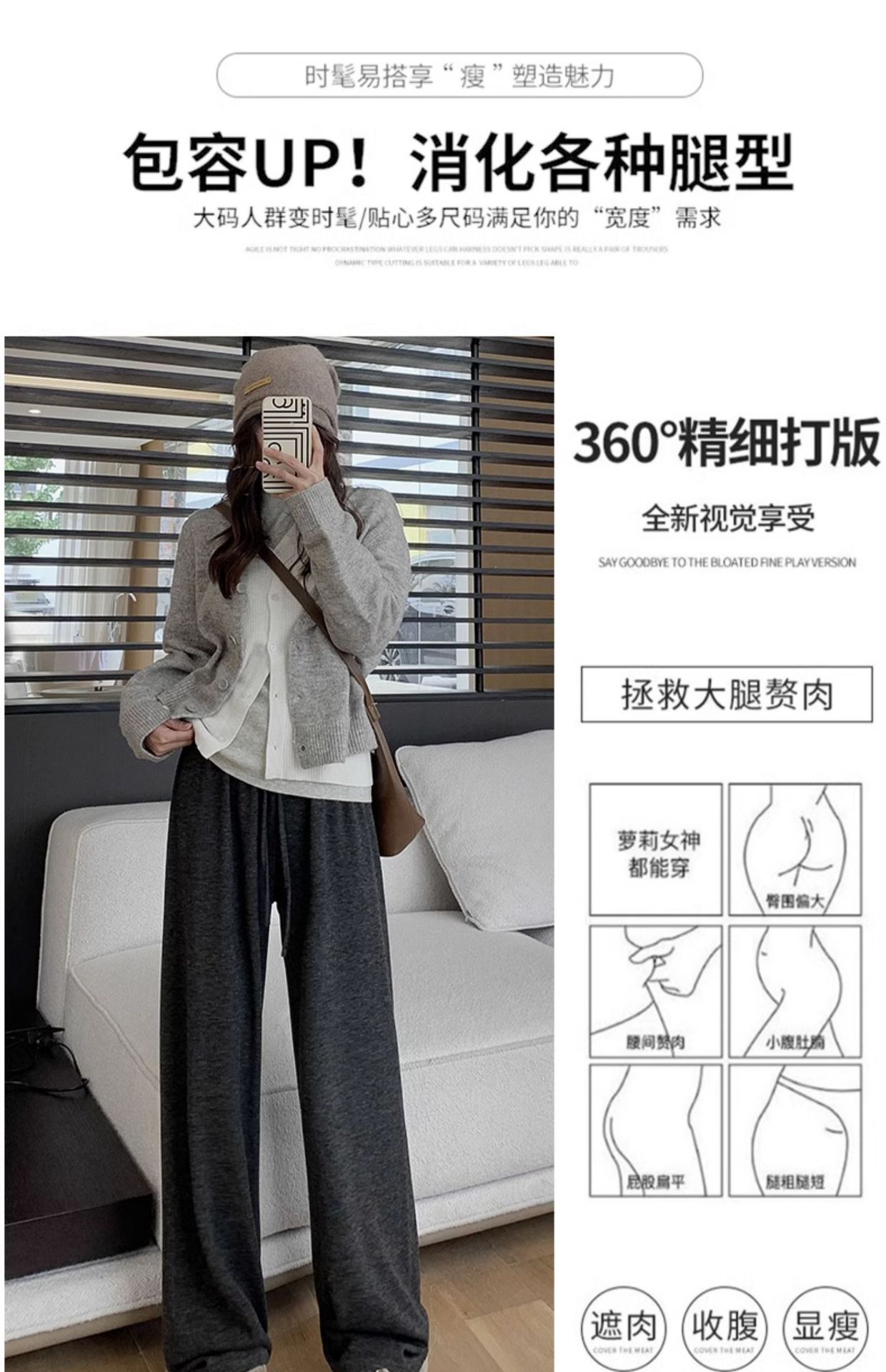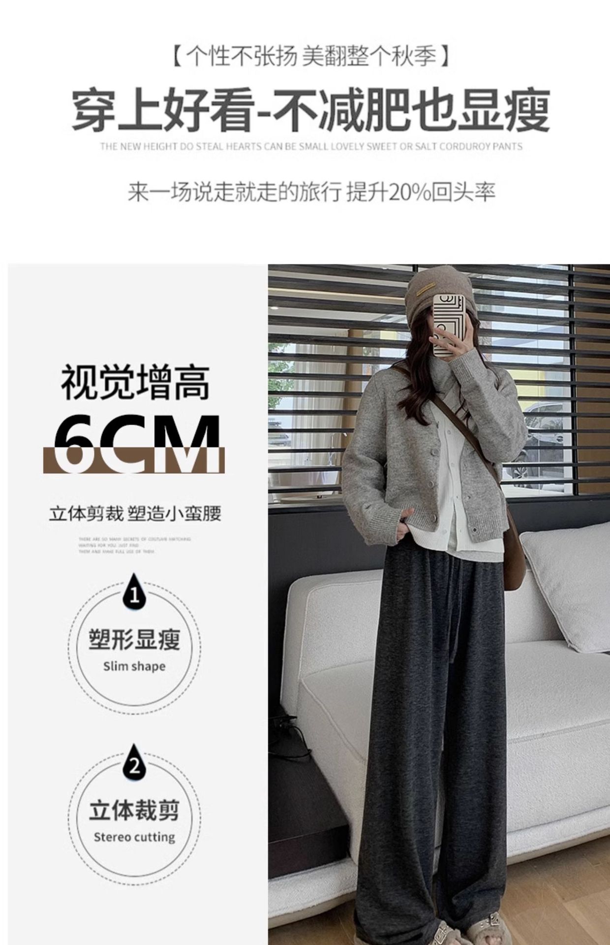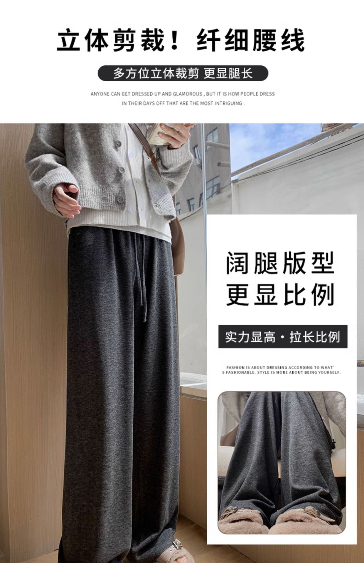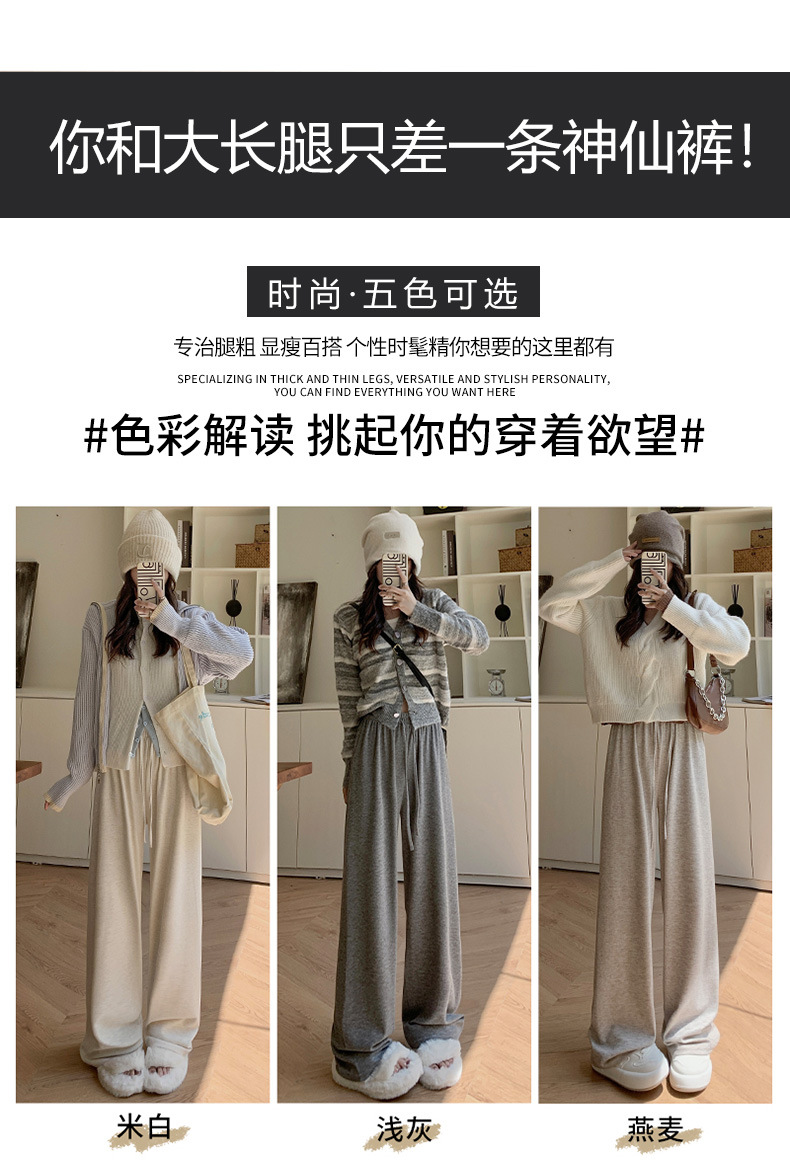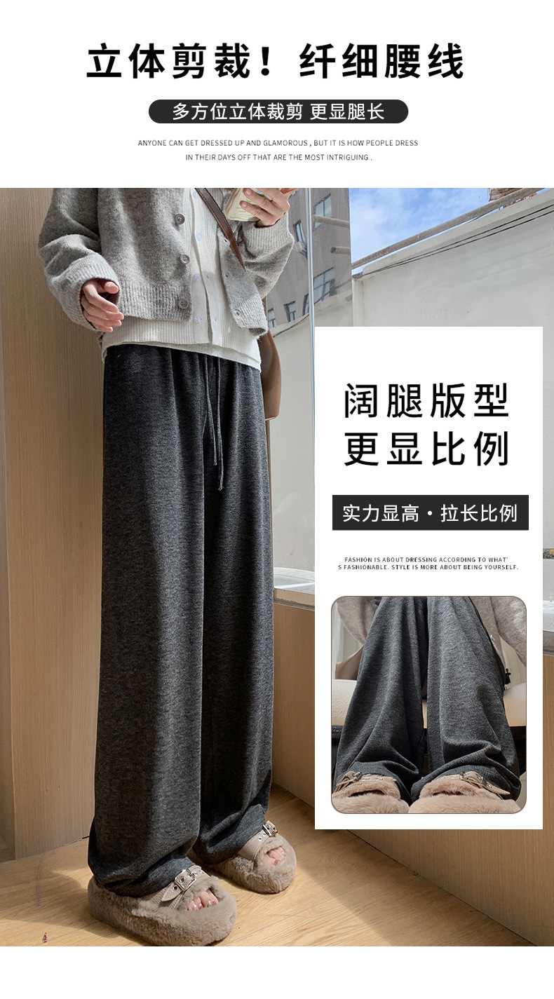뜨거운 회색 넓은 다리 바지 여자 가을 새로운 높은 허리 대두 캐주얼 올매치 게으른 니트 찹쌀 바지스토어 가기