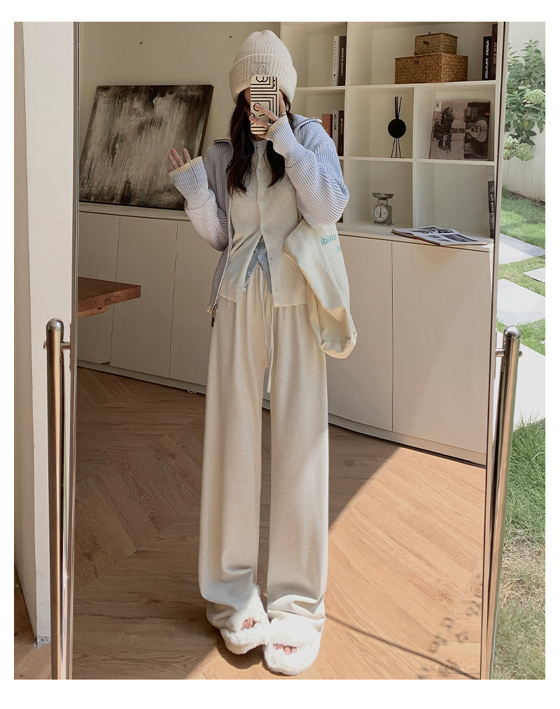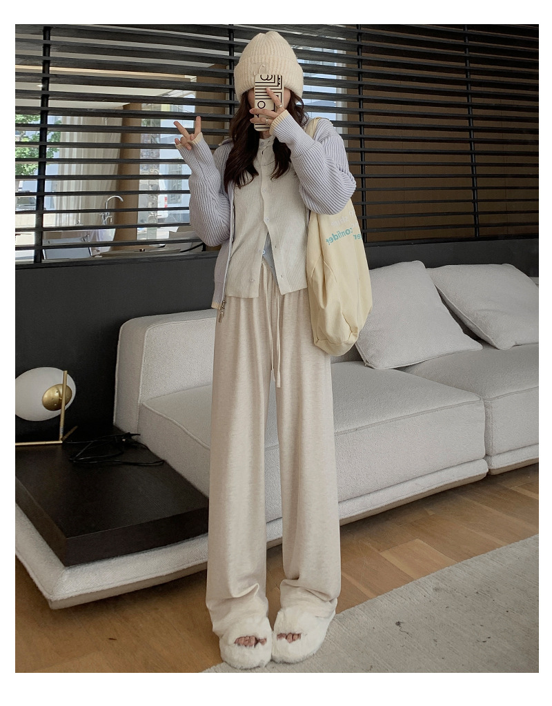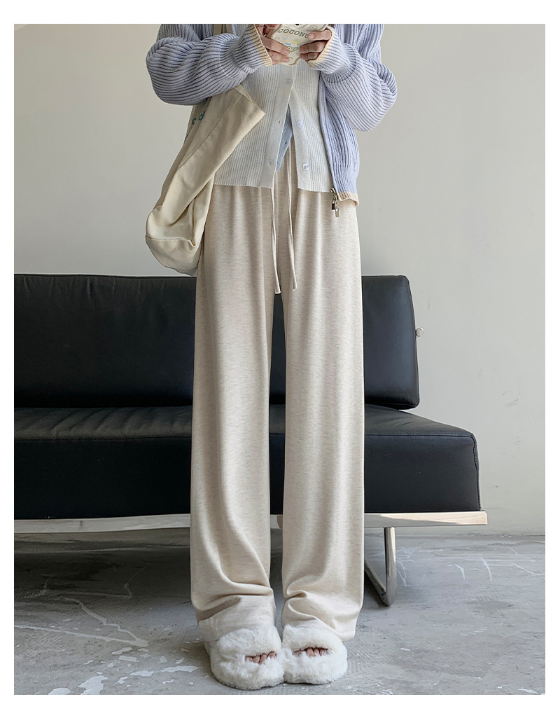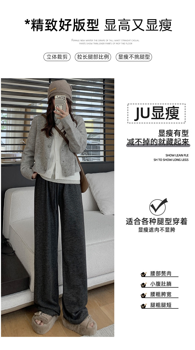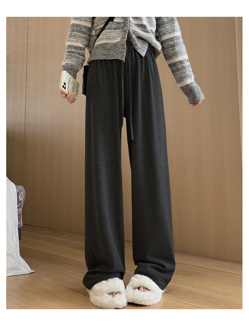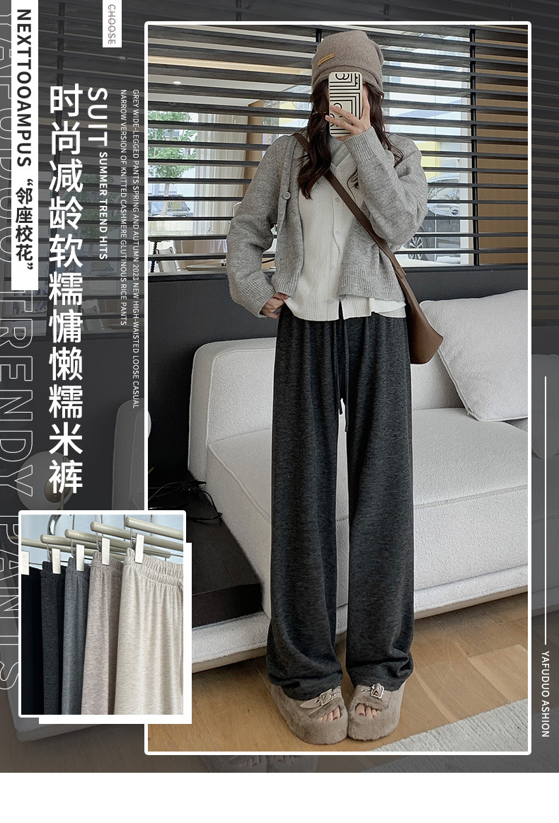 뜨거운 회색 넓은 다리 바지 여자 가을 새로운 높은 허리 대두 캐주얼 올매치 게으른 니트 찹쌀 바지스토어 가기