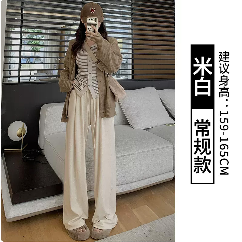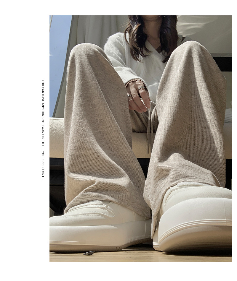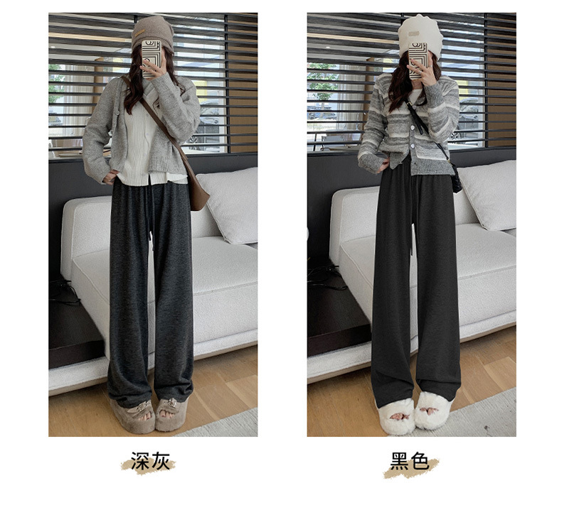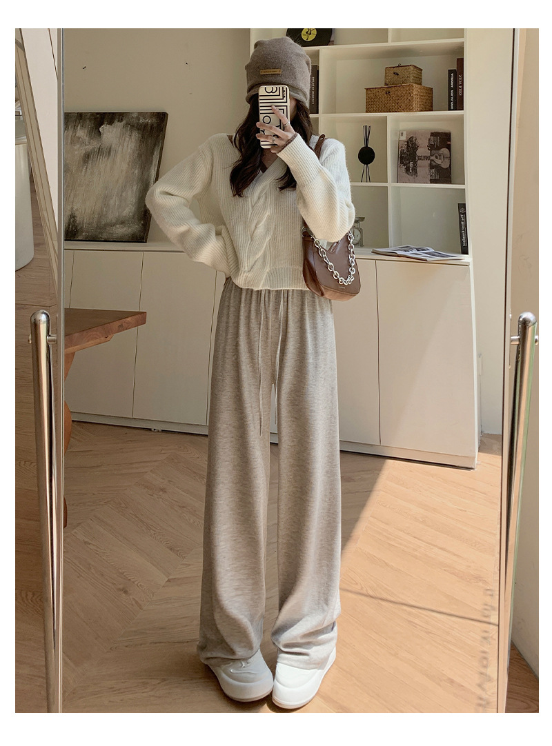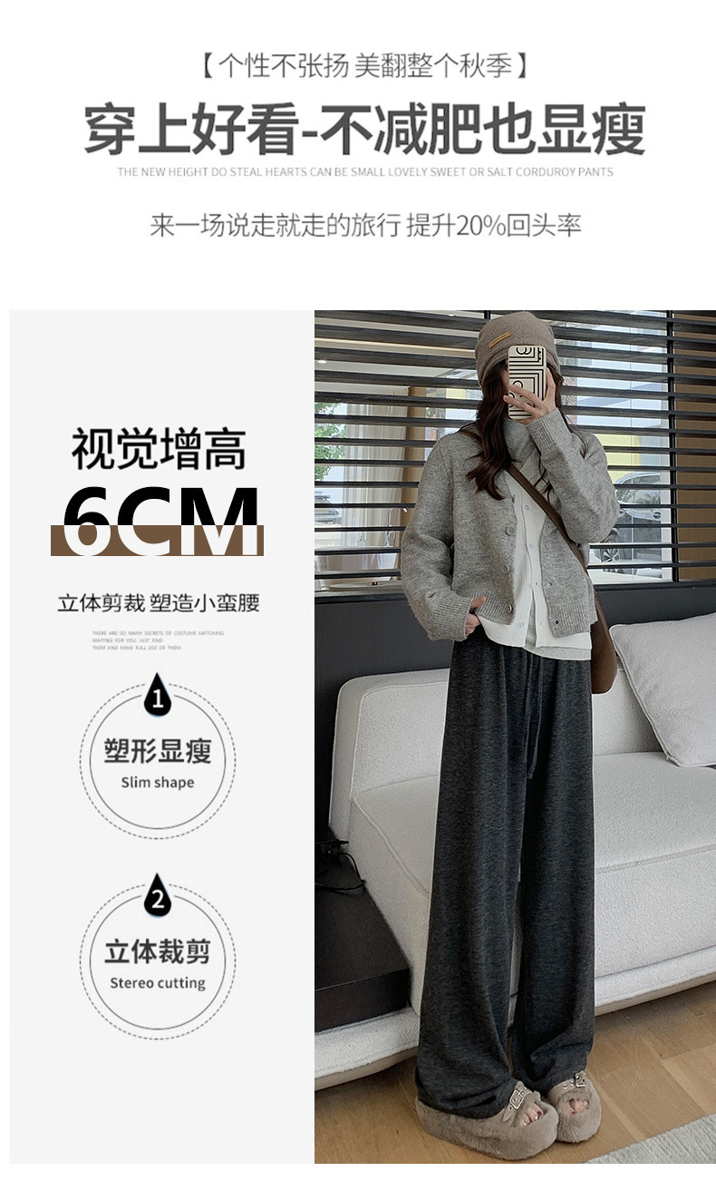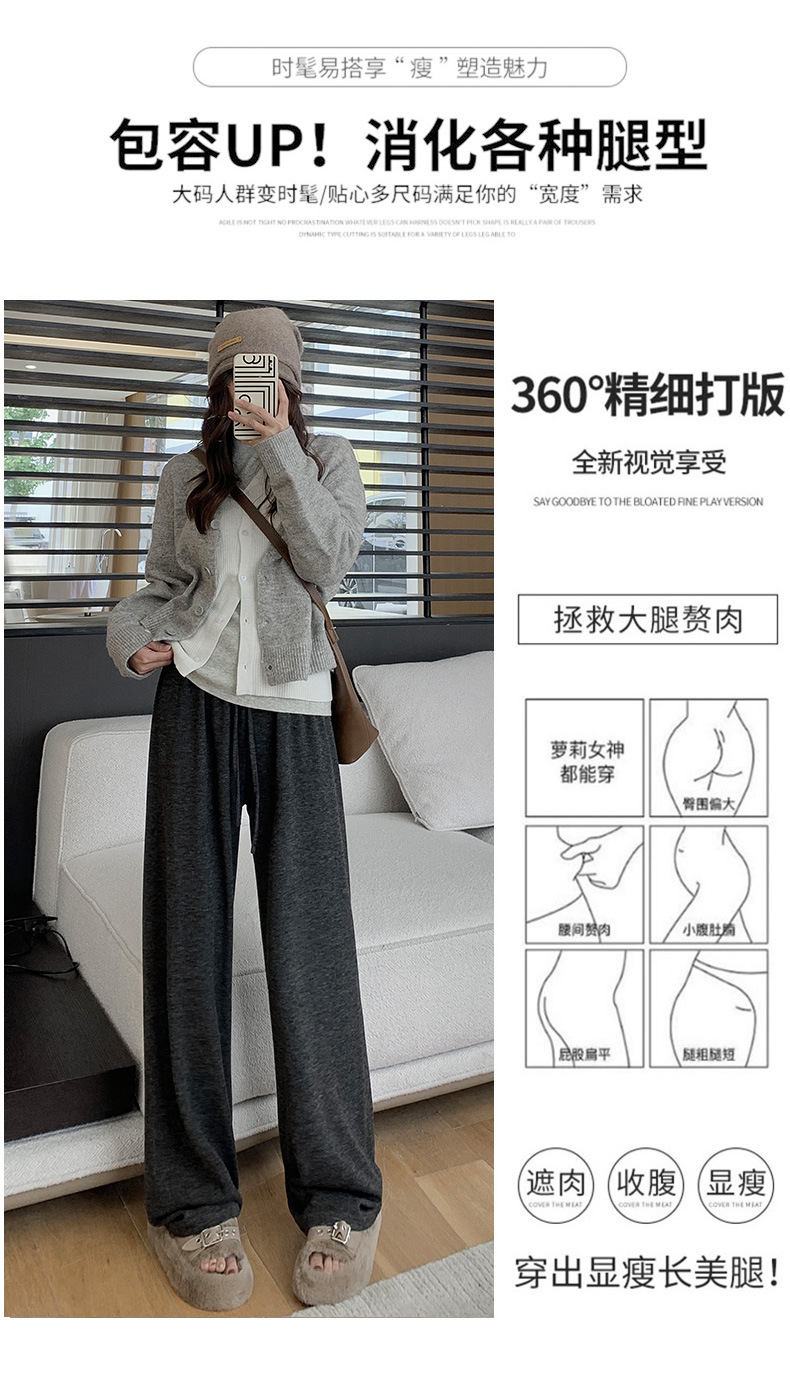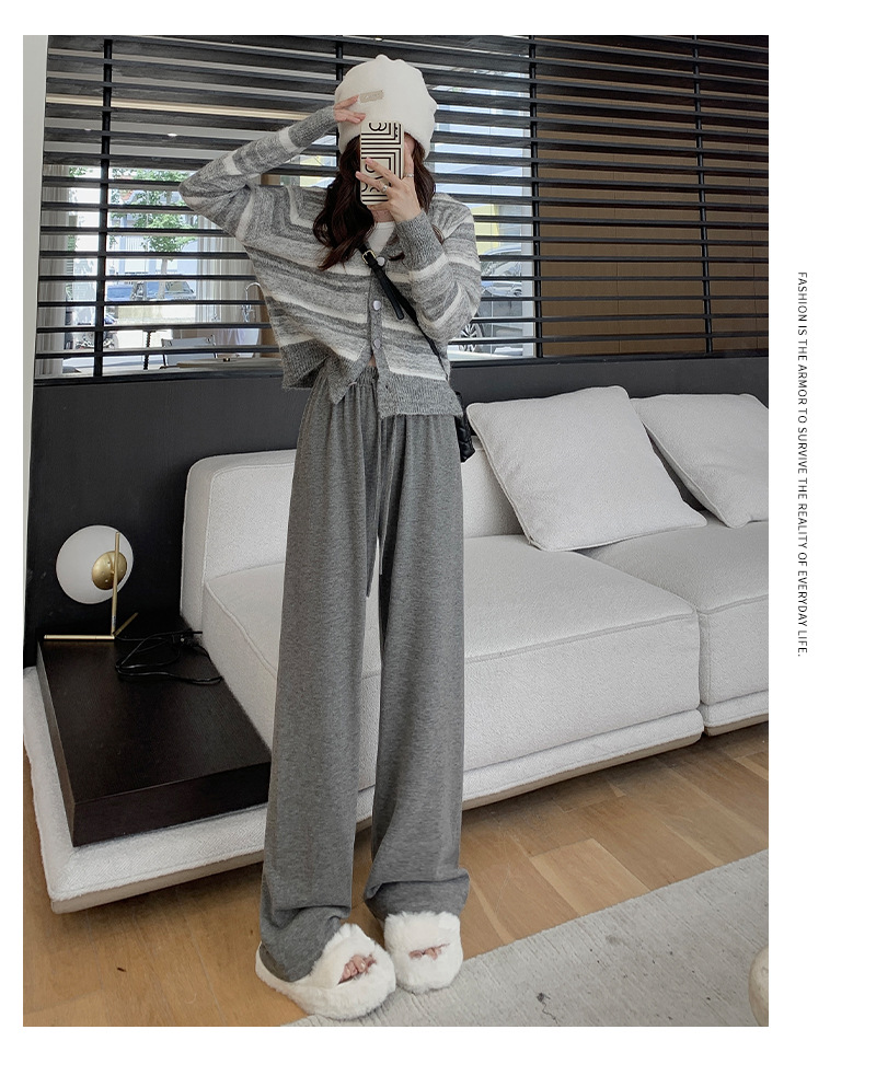 뜨거운 회색 넓은 다리 바지 여자 가을 새로운 높은 허리 대두 캐주얼 올매치 게으른 니트 찹쌀 바지스토어 가기