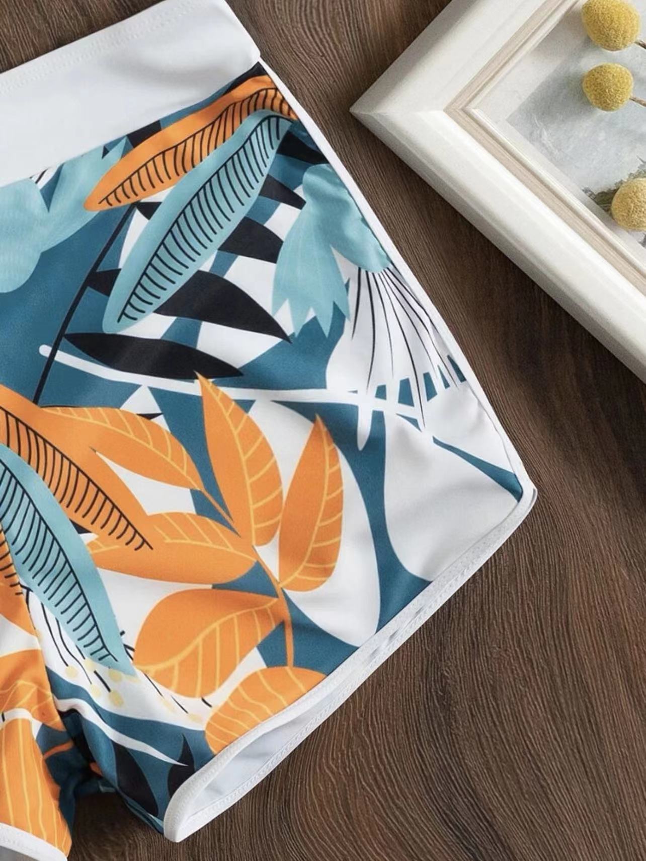 유럽과 미국의 대외 무역 수영복 여성 분할 높은 허리 플랫 앵글 레이스 업 비키니 인쇄 단색 수영복
