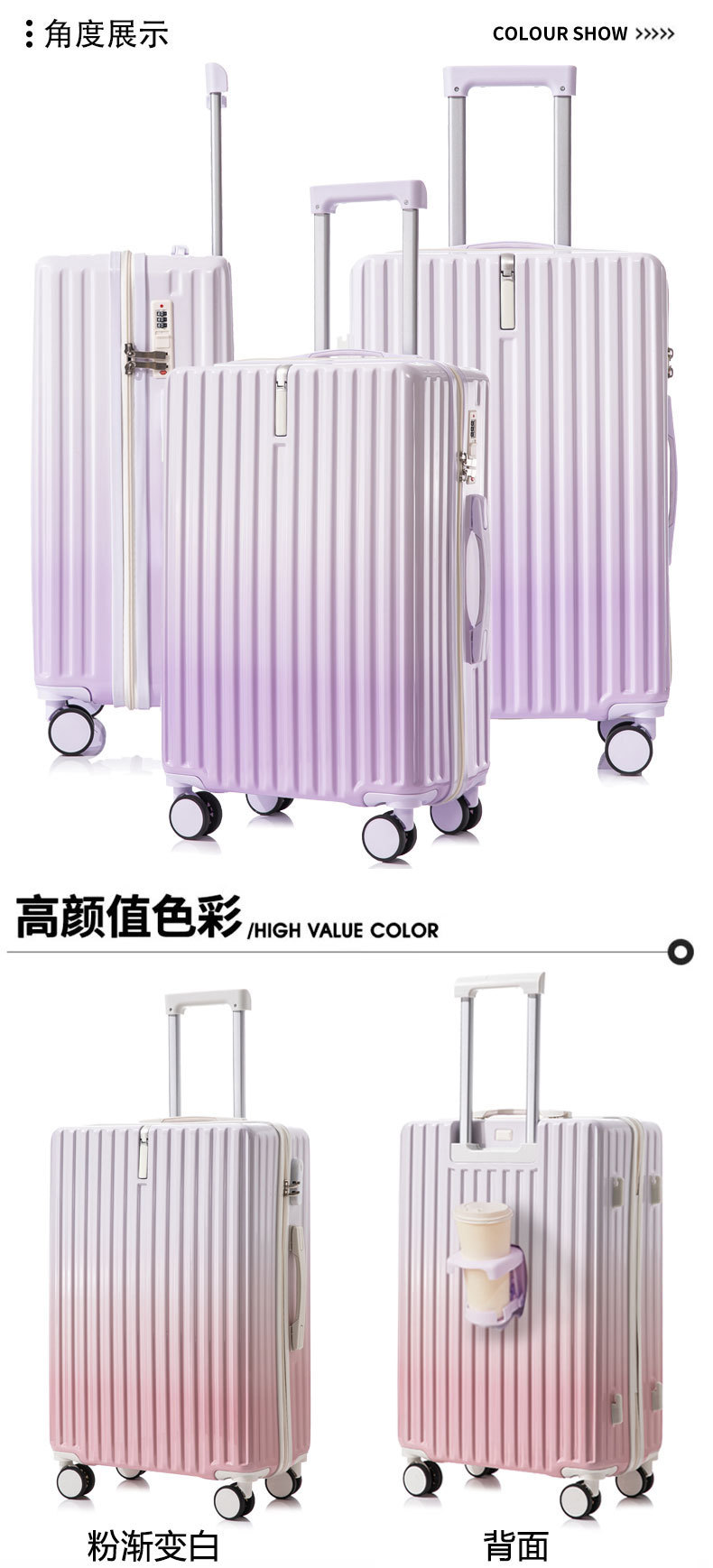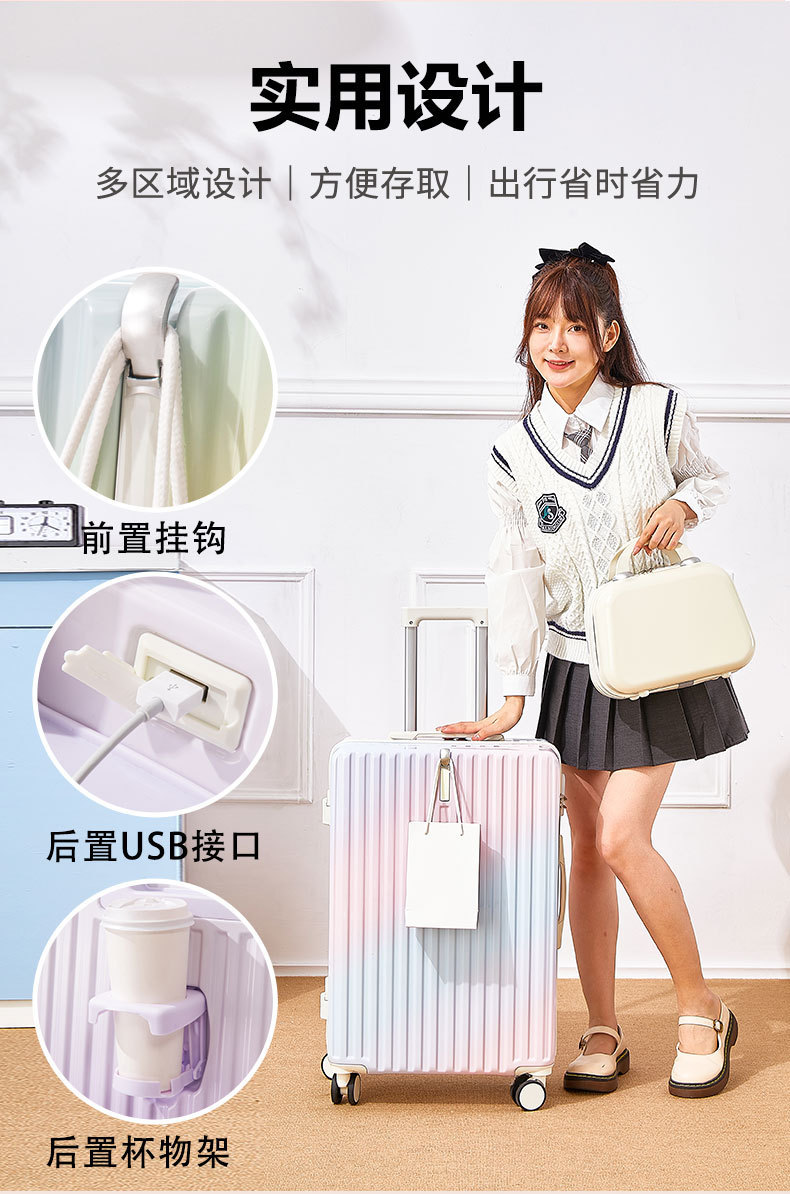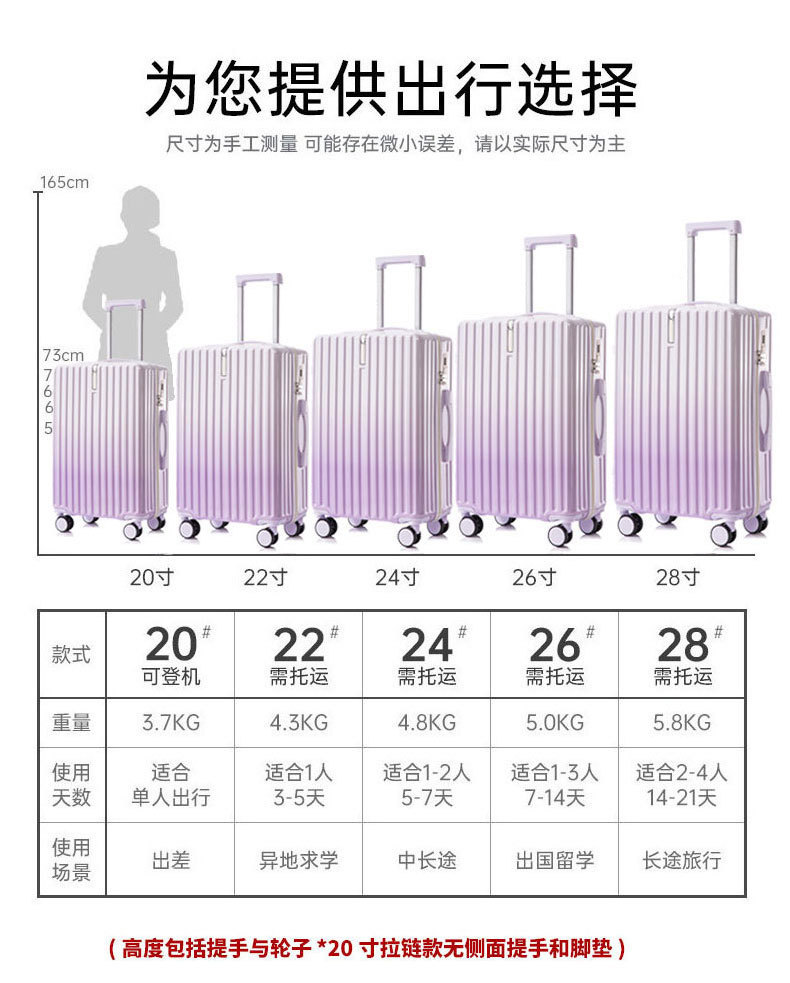 [엄선된 공장] 고급스러운 그라데이션 여성용 여행가방 20inch 튼튼하고 내구성이 뛰어난 두꺼운 지퍼형스토어 가기
