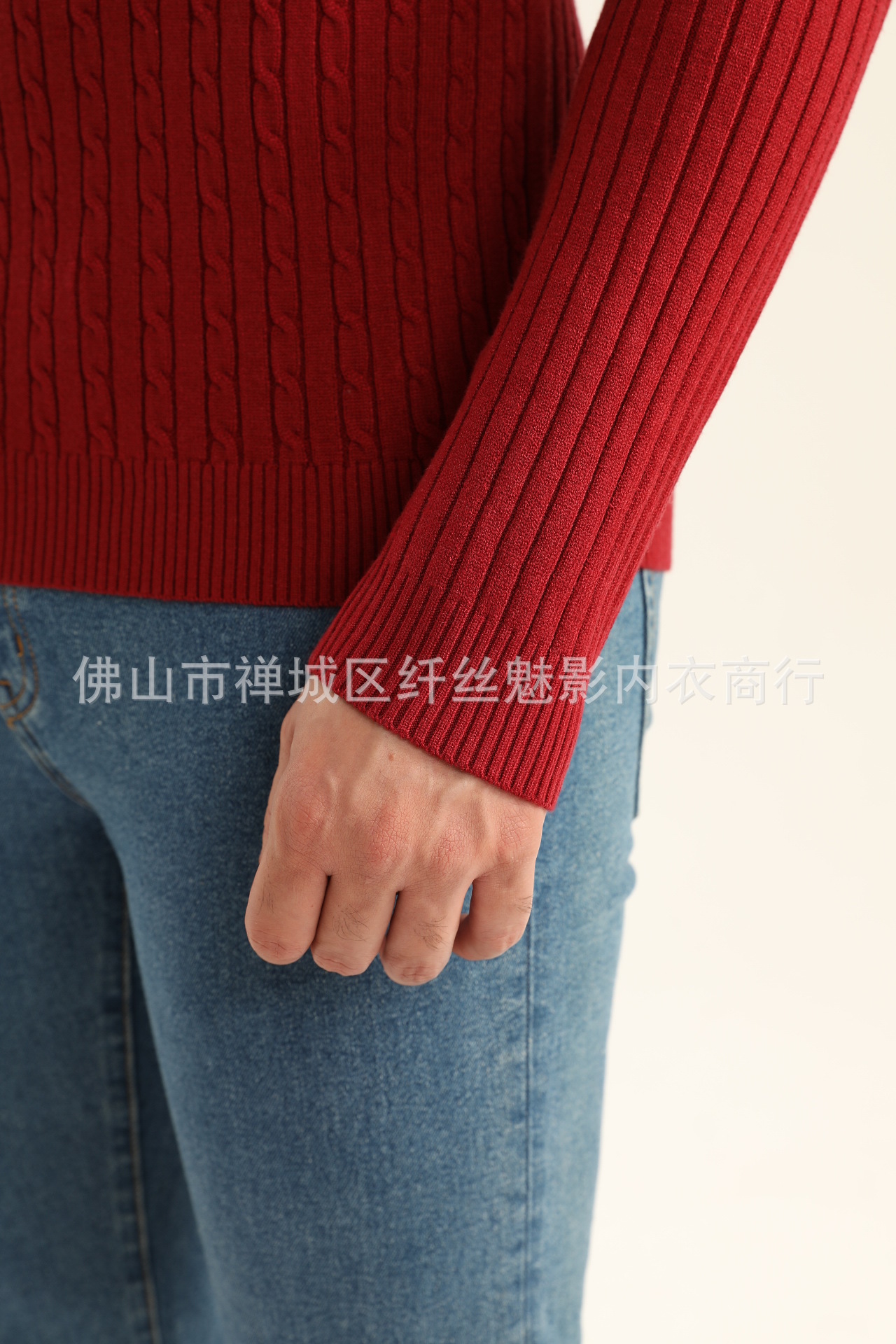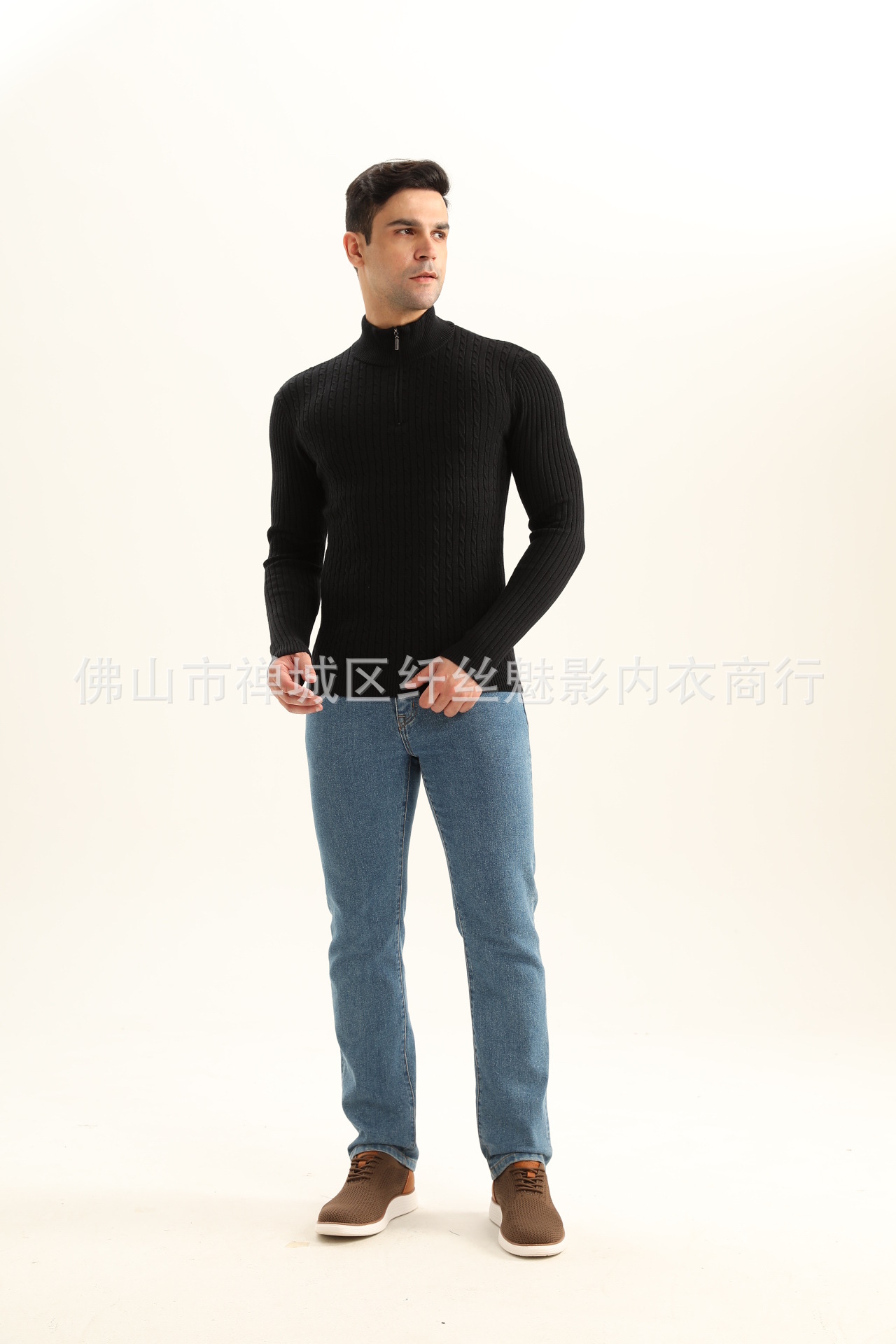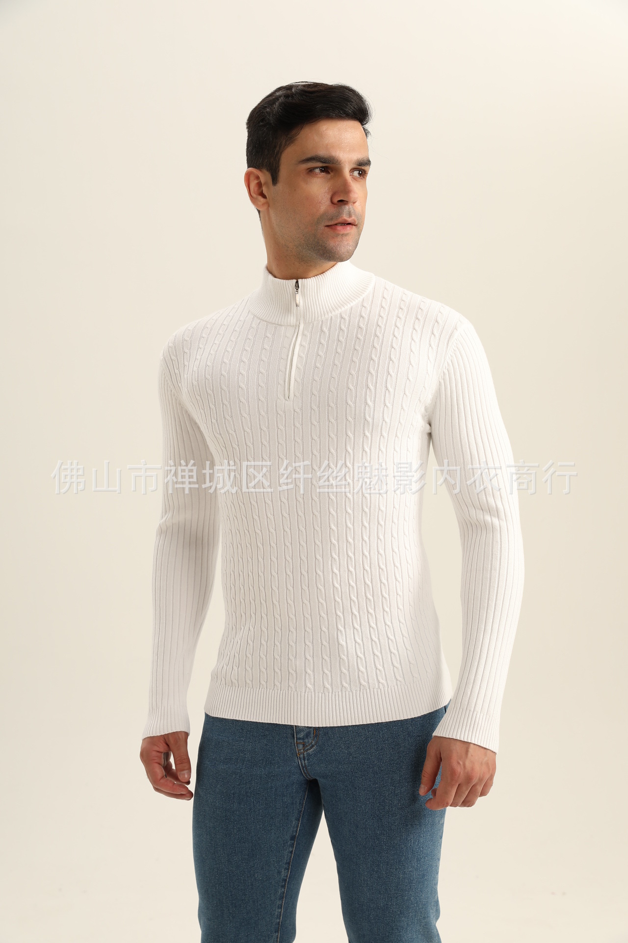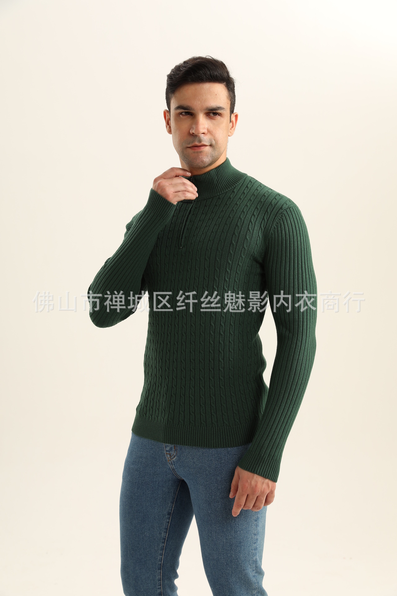 24 새로운 국경 유럽 및 미국 남성 니트웨어 재킷 핏 칼라 하프 지퍼 긴 소매 두꺼운 풀오버