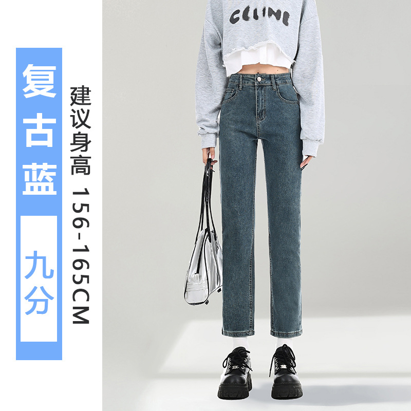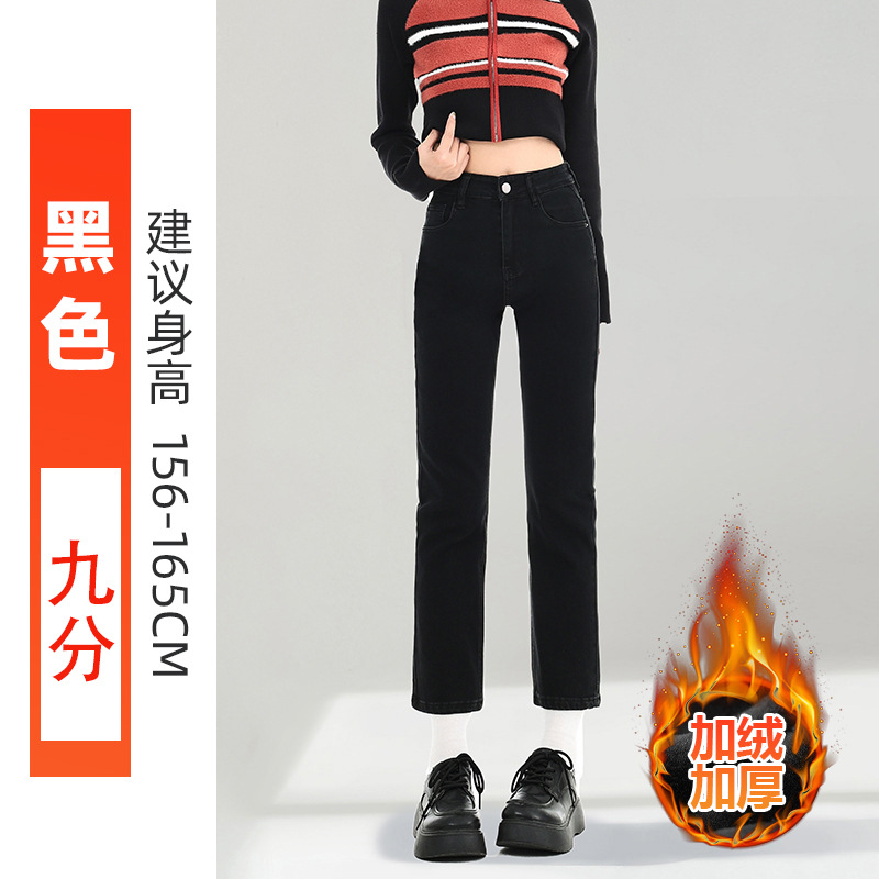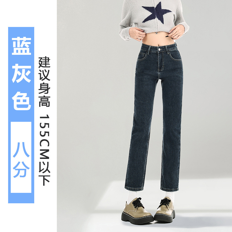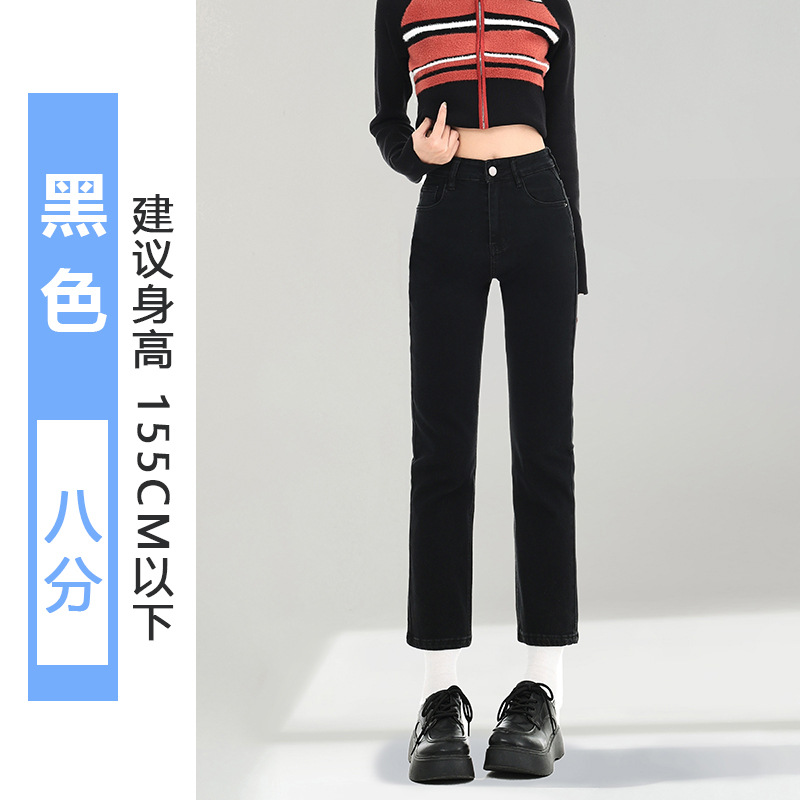 블랙 담배 바지 스트레이트 청바지 여성 가을 2025 새로운 스타일 작은 하이 웨이스트 슬림 슬림 9 포인트 바지스토어 가기