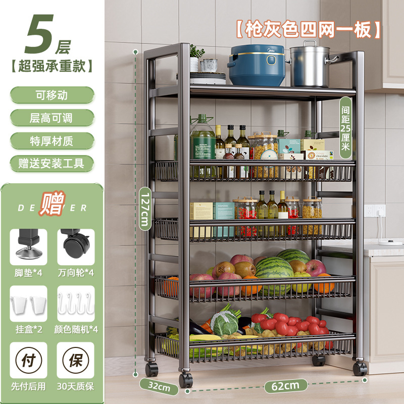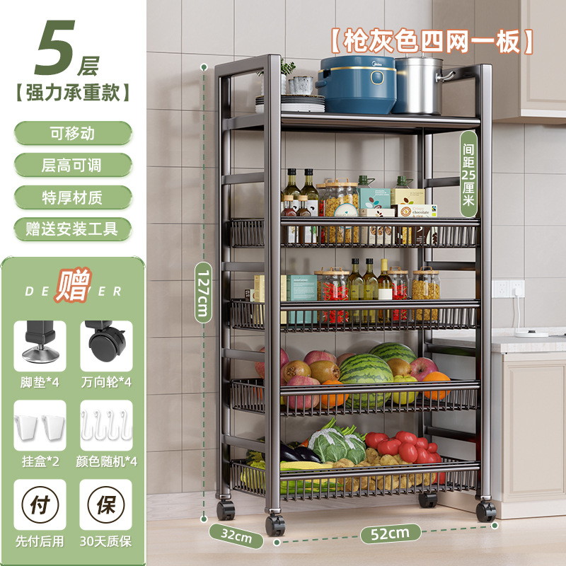 모바일 주방 야채 바구니 저장 선반 가정용 간단한 선반 바닥 형 다층 야채 저장 다기능 선반스토어 가기