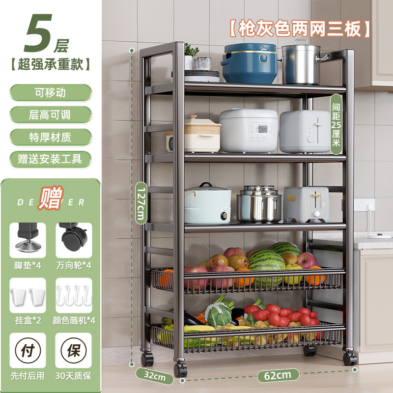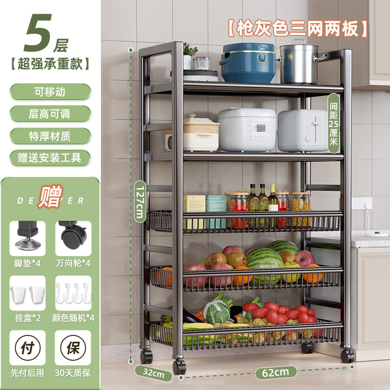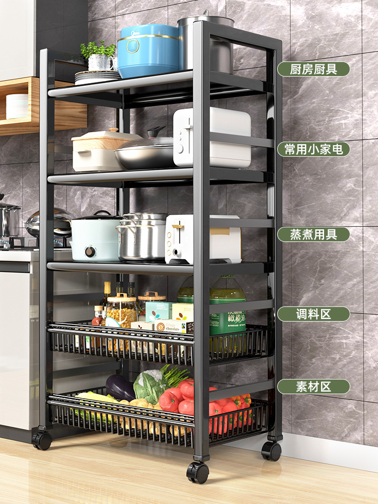 모바일 주방 야채 바구니 저장 선반 가정용 간단한 선반 바닥 형 다층 야채 저장 다기능 선반