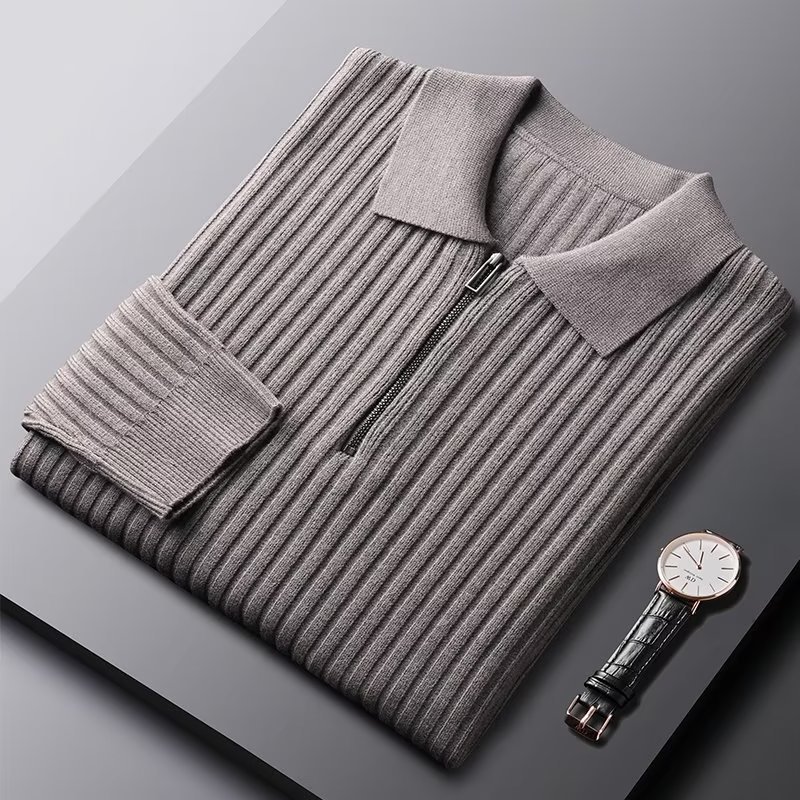 가을과 겨울 캐주얼 스웨터 남자의 새로운 올매치 비즈니스 레트로 라펠 스웨터 솔리드 컬러 지퍼 따뜻한 긴팔 스웨터
