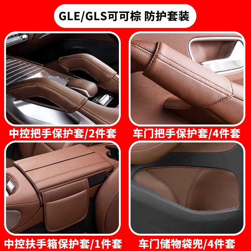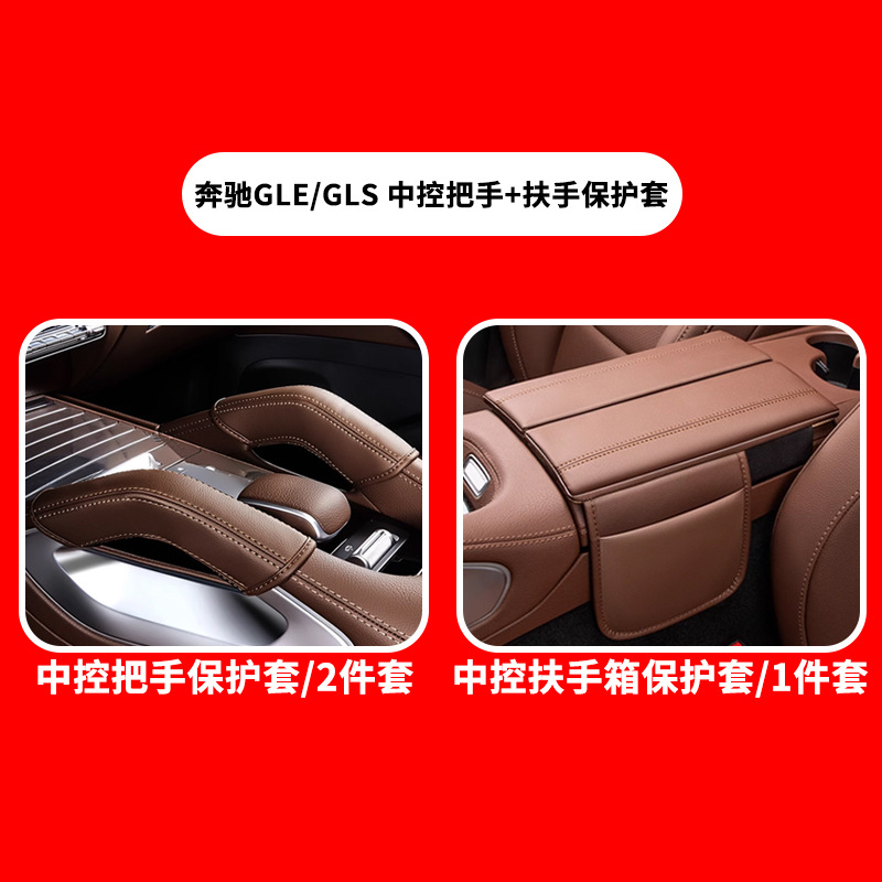 • 메르세데스-벤츠 GLE/GLS--중앙 제어 핸들 장갑 + 팔걸이 박스 커버 [코코 브라운] 3종 세트