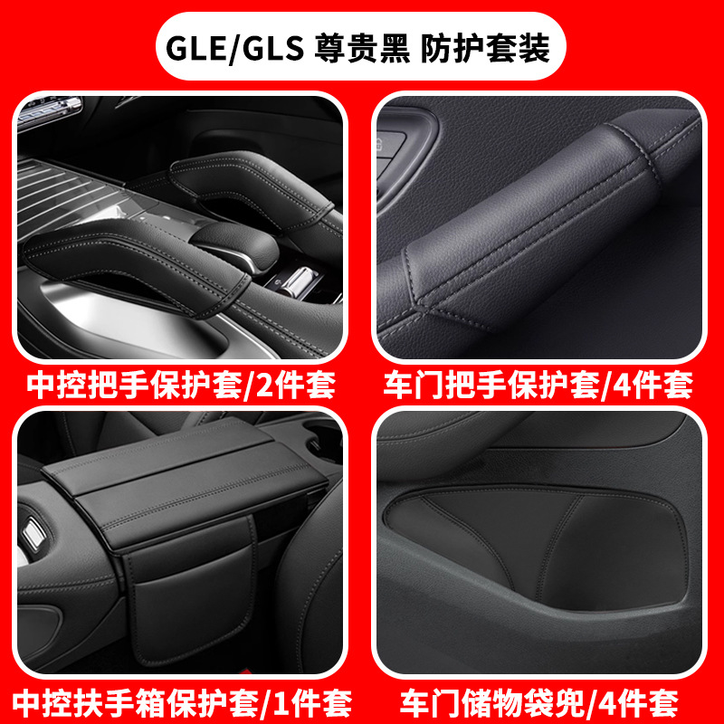 • 메르세데스-벤츠 GLE/GLS--중앙 제어 핸들 장갑 + 팔걸이 박스 커버 [노블 블랙] 3종 세트